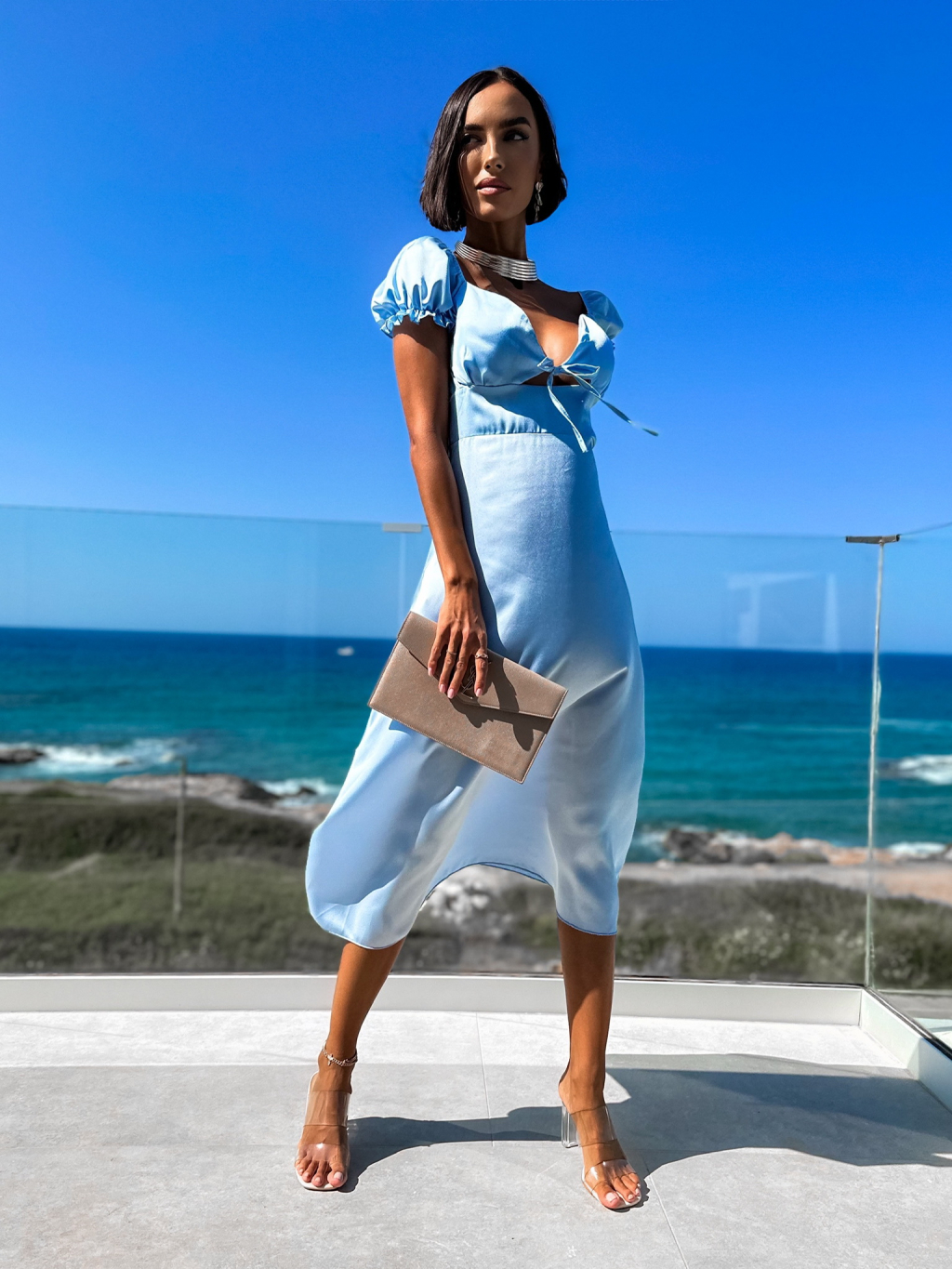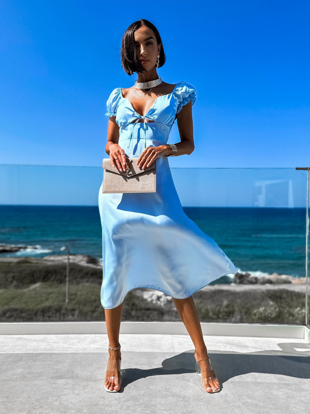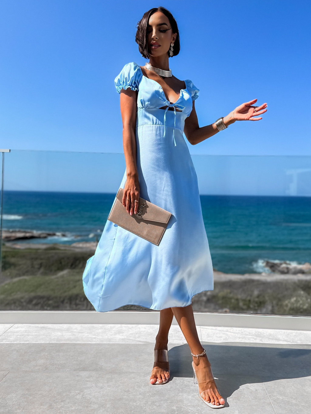 Svetlomodré elegantné šaty DESTANY s volánikmi