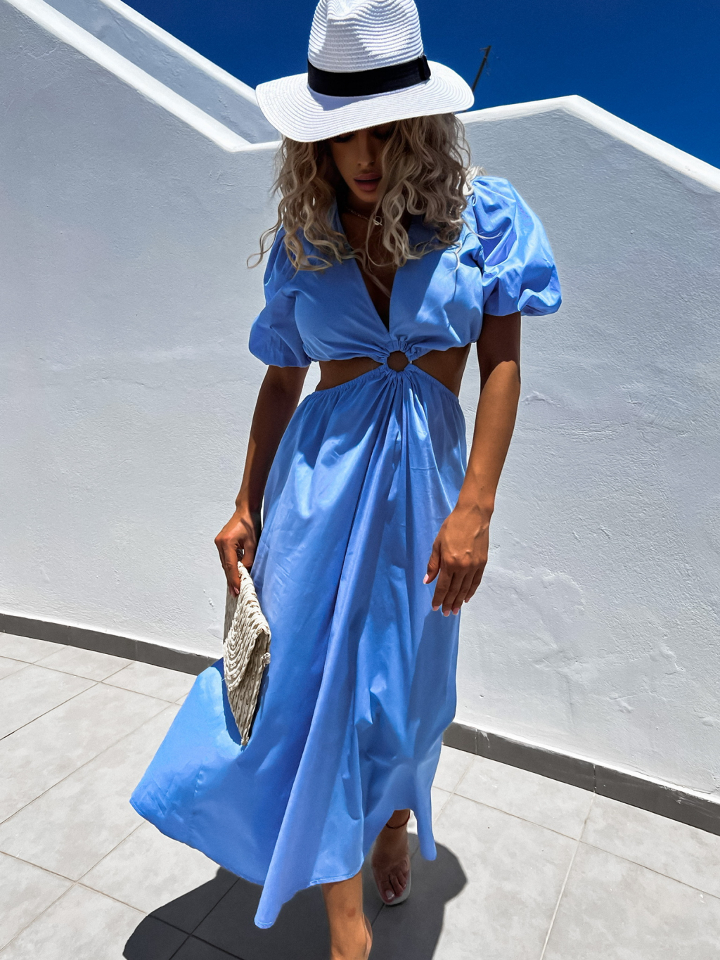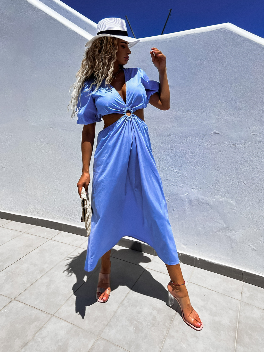 Svetlomodré elegantné šaty RUPHUS s prestrihmi