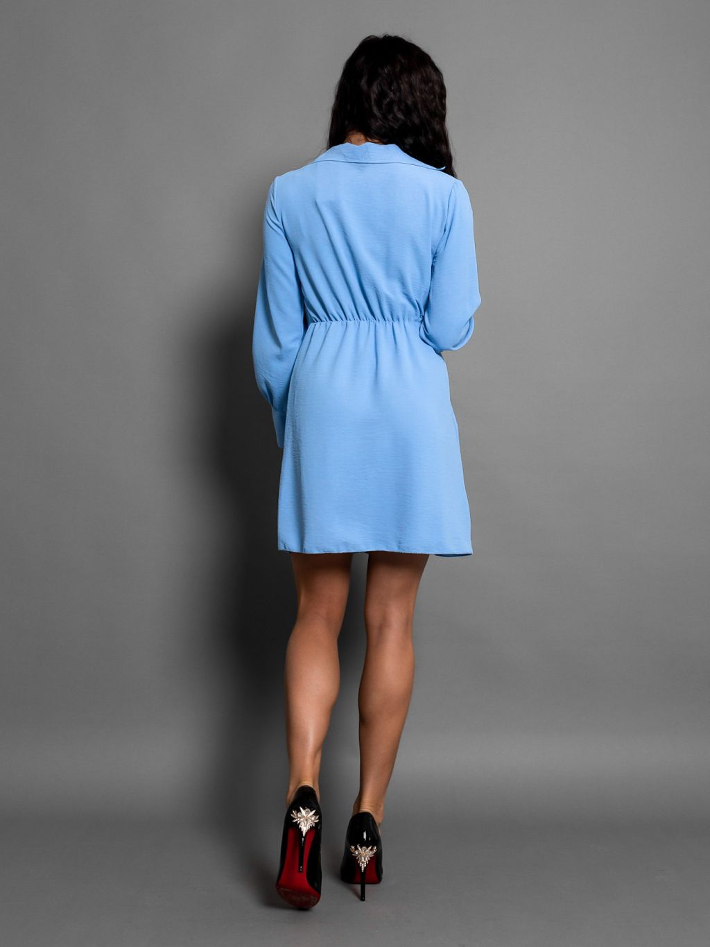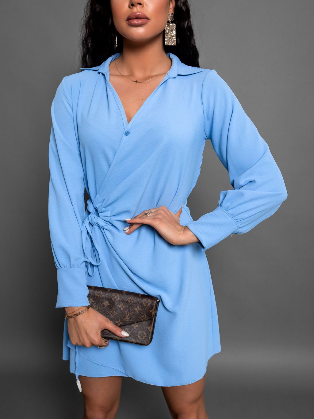 Svetlomodré košeľové zavinovacie šaty BRENYSE s dlhým rukávom