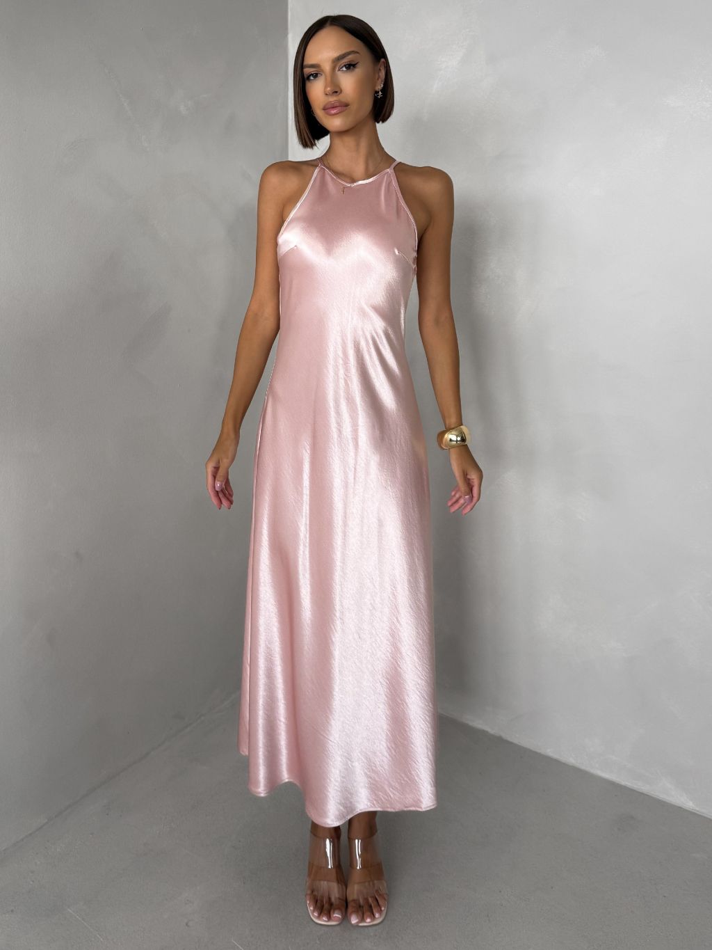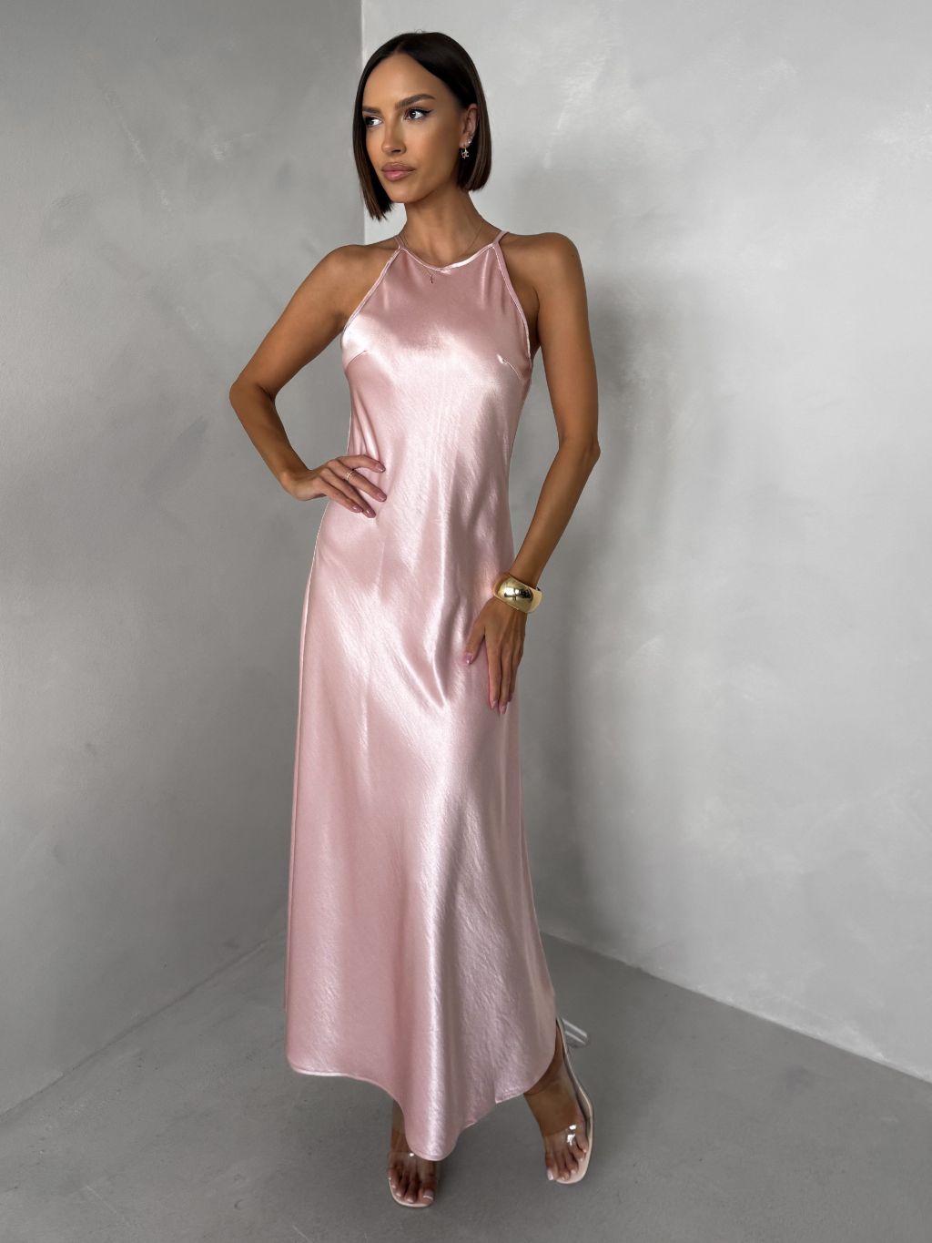 Svetloružové elegantné spoločenské šaty HYDRIS