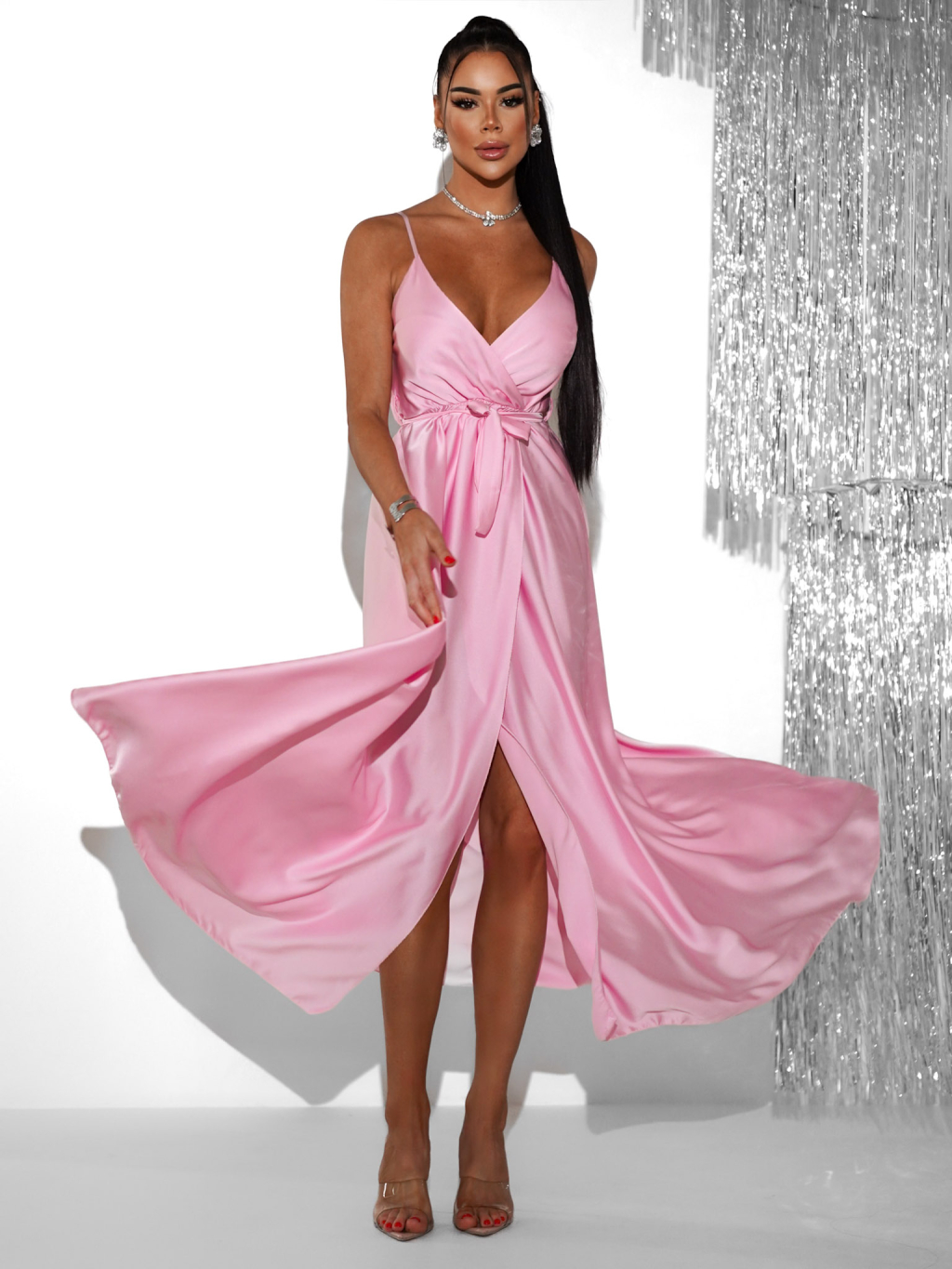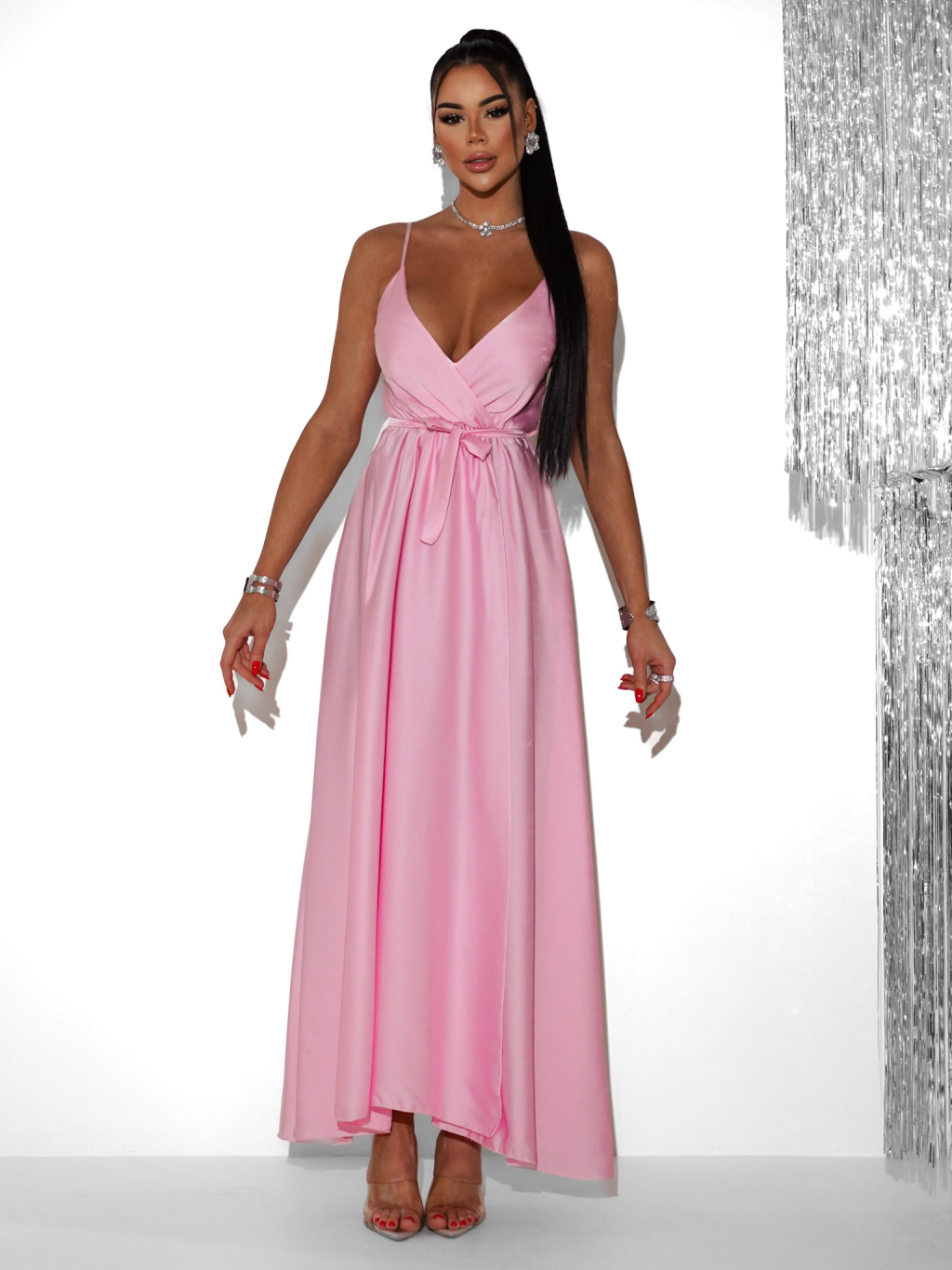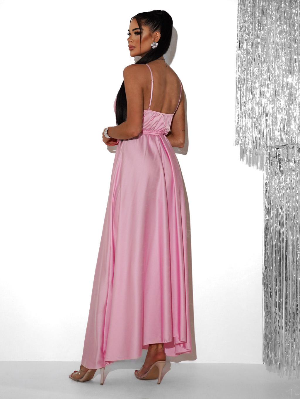 Svetloružové saténové dlhé spoločenské šaty PRIMROSE