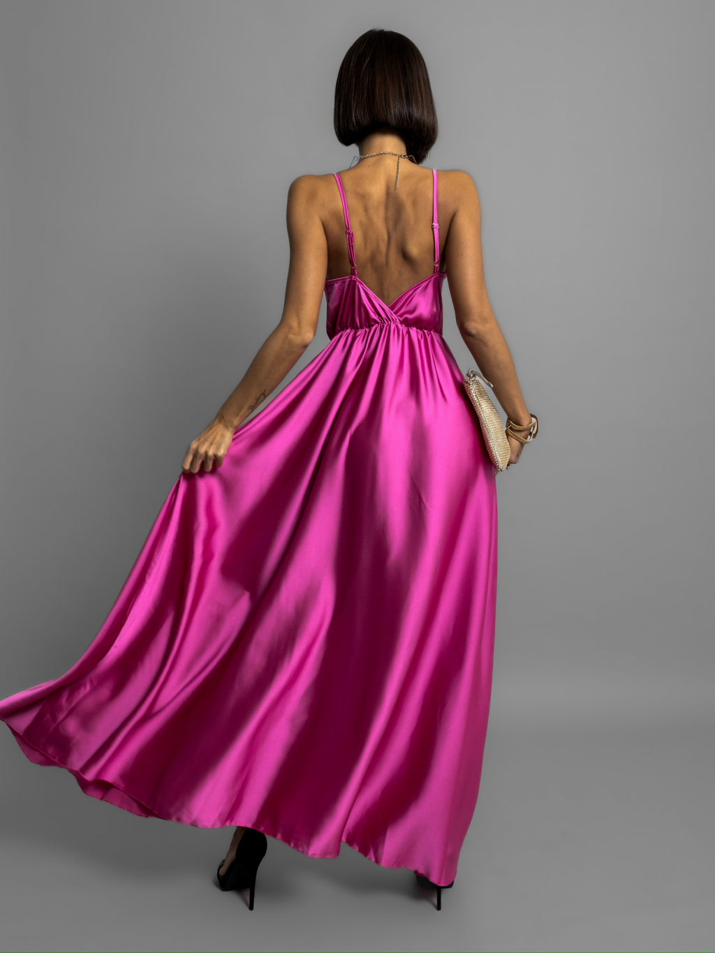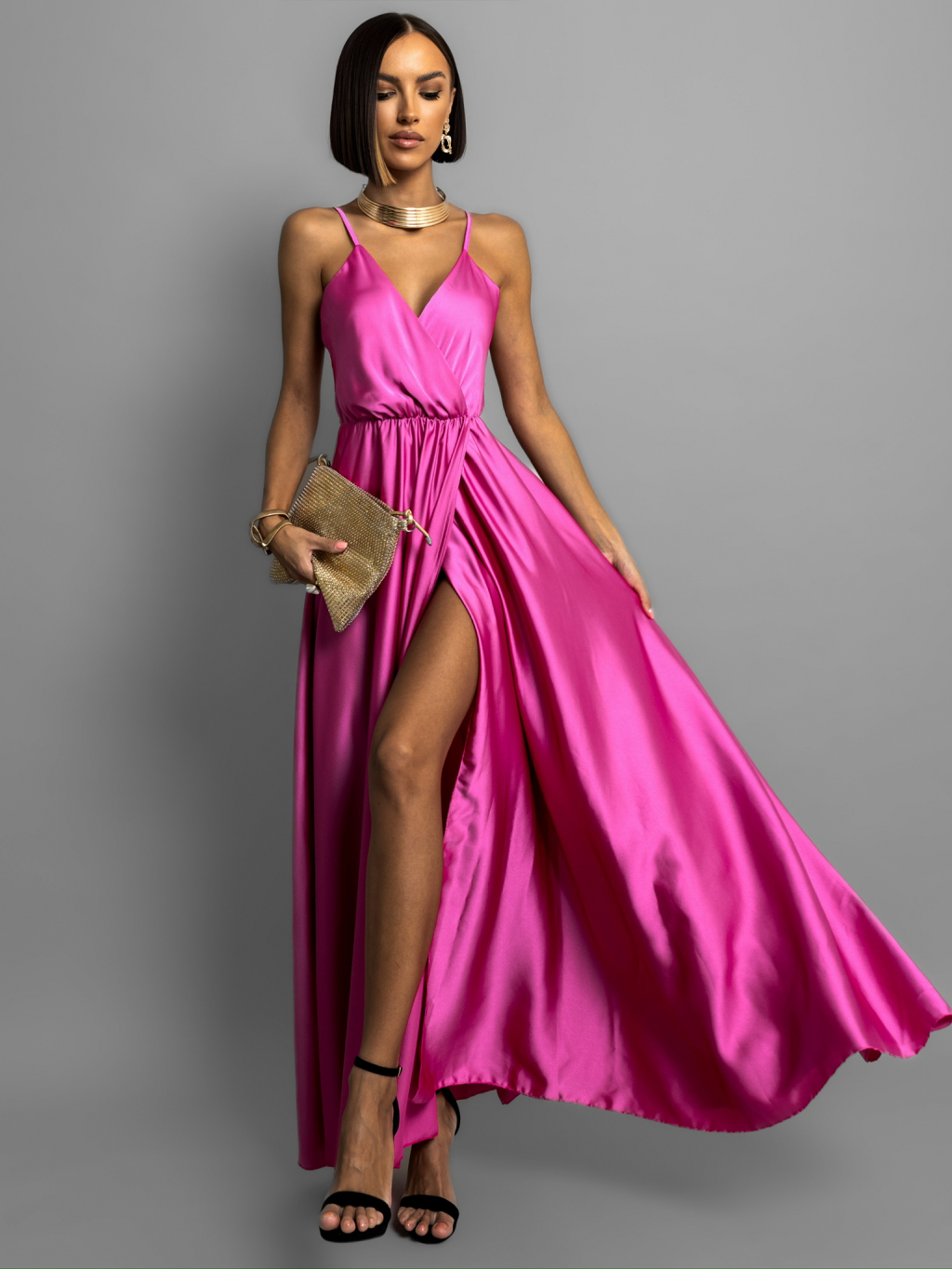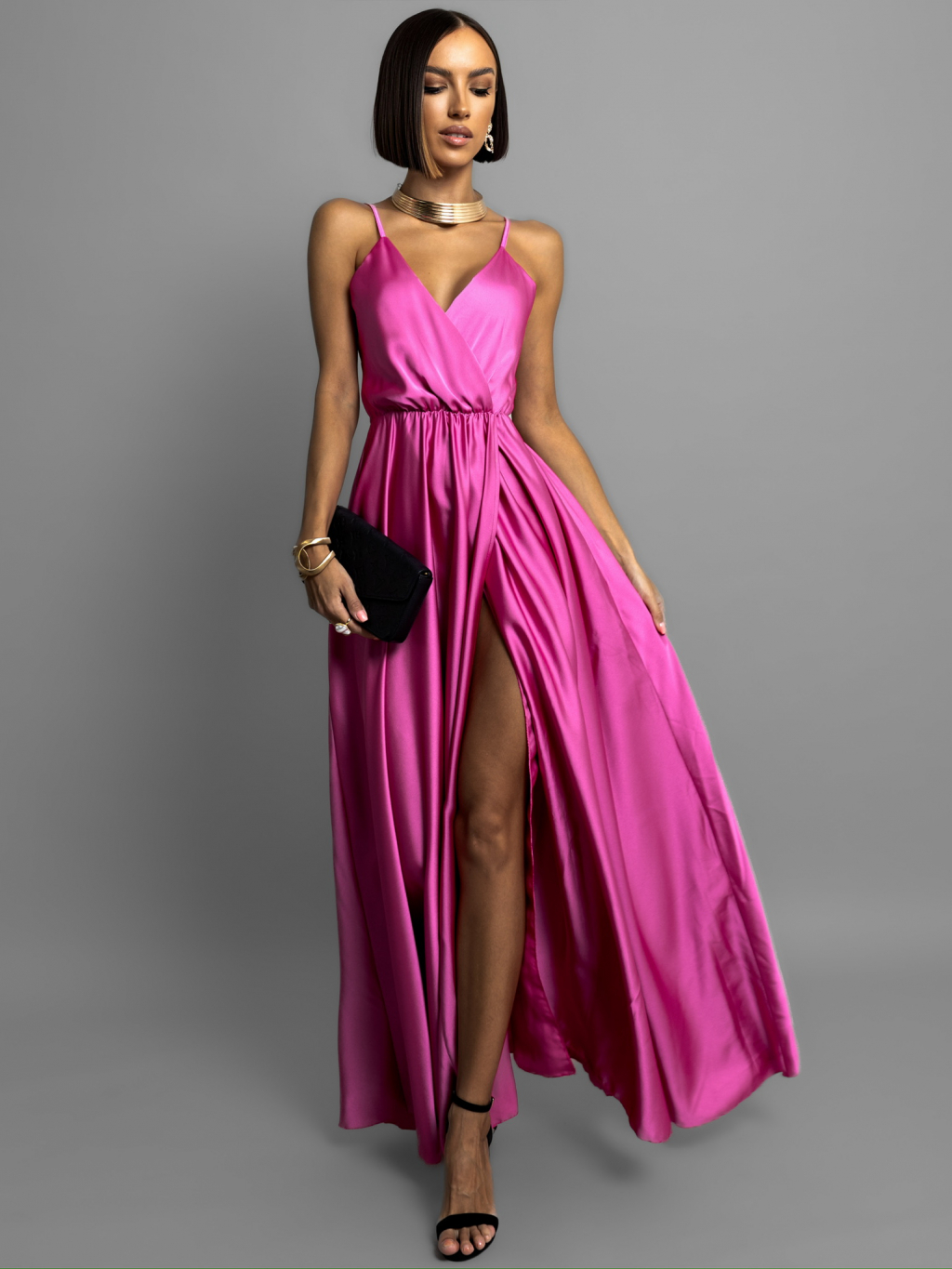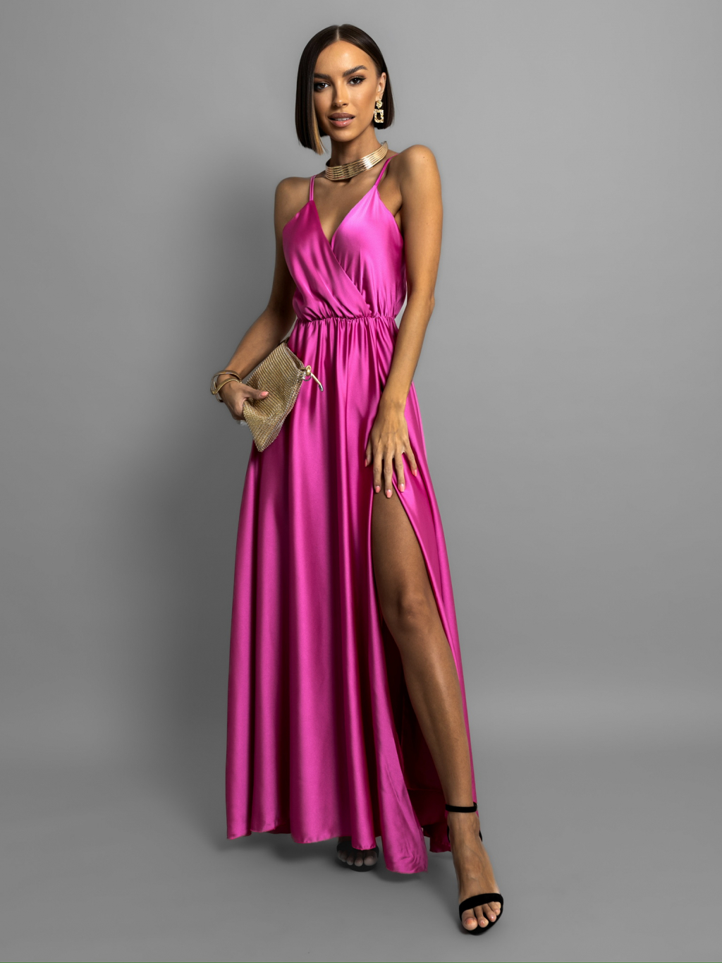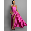 Tmavo fialové dlhé lesklé šaty PERFECTLY