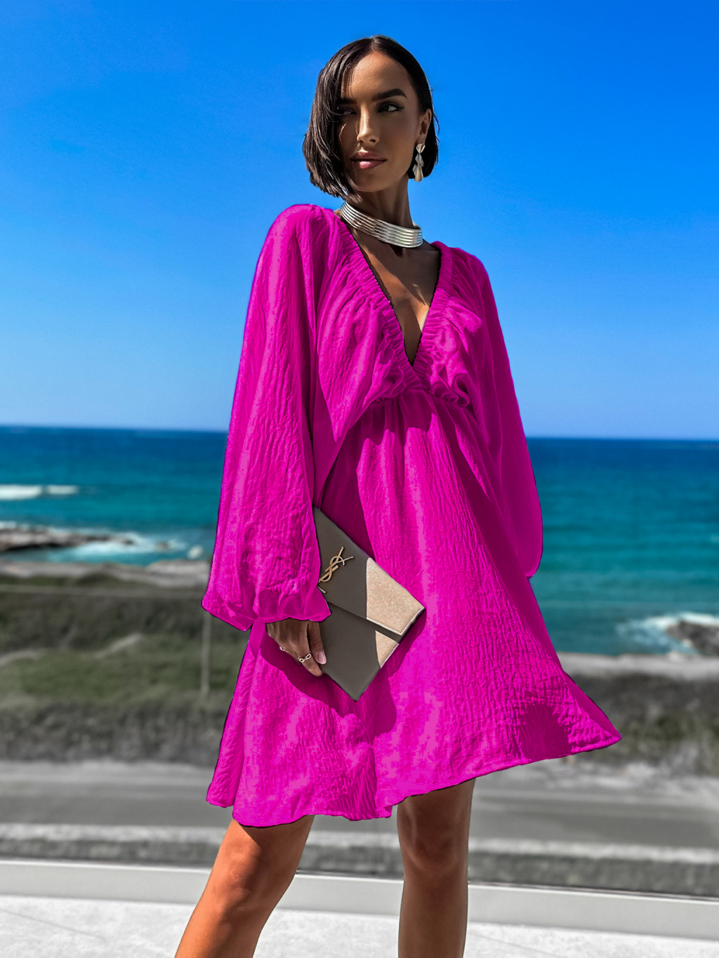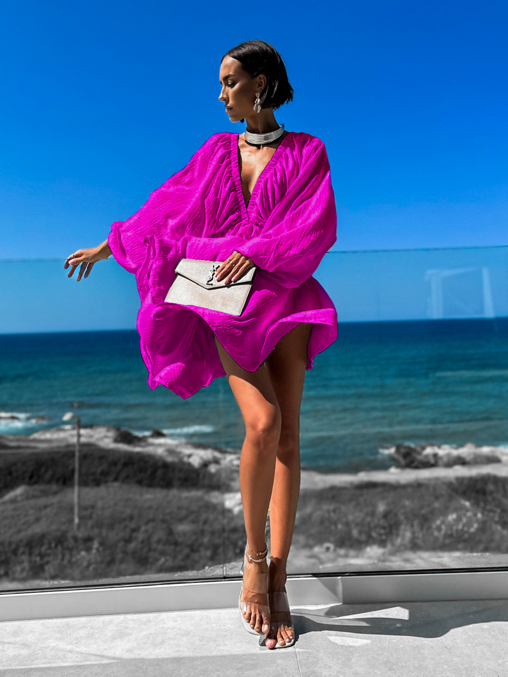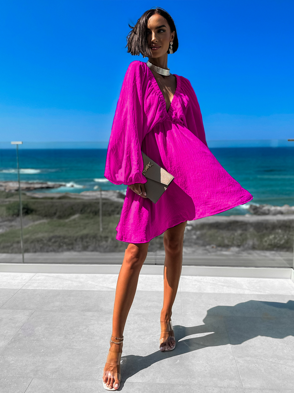 Tmavo fialové krátke šaty RANGE s výstrihom do V