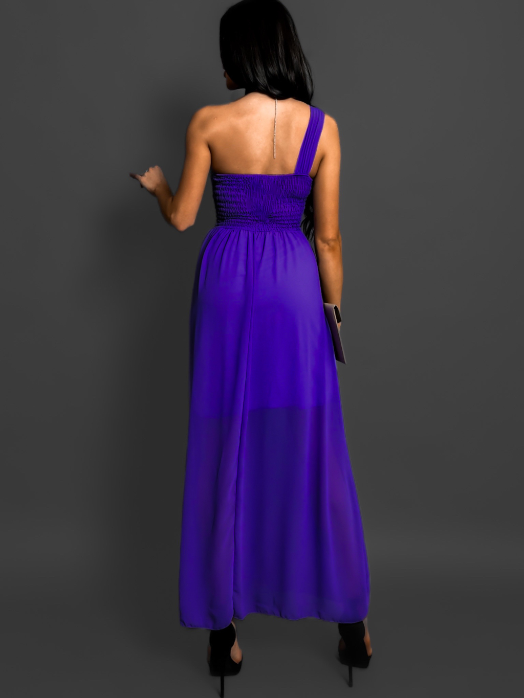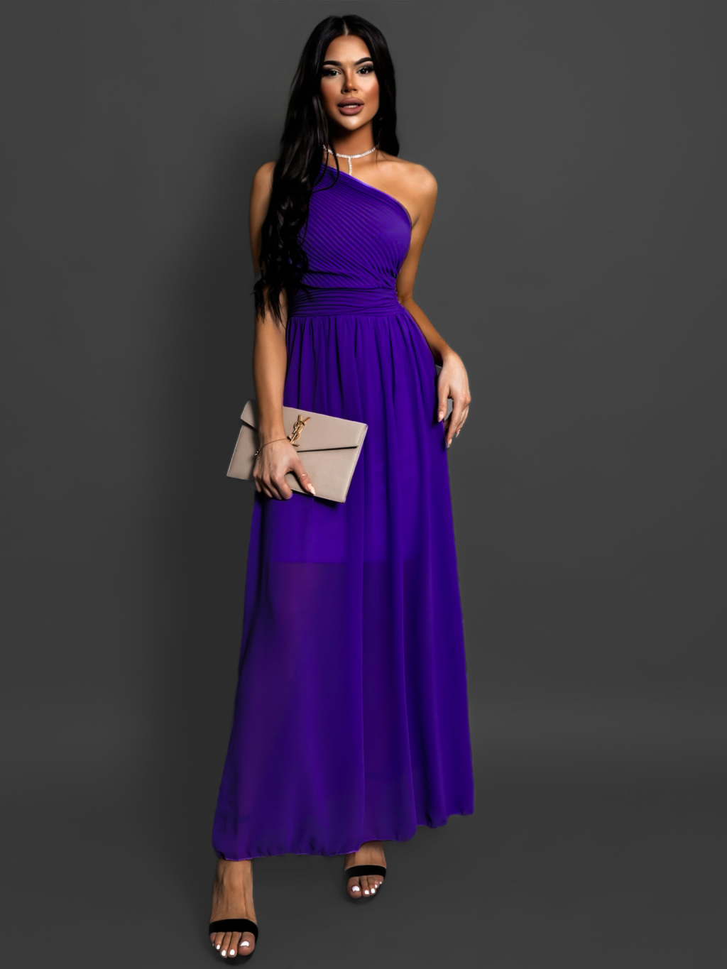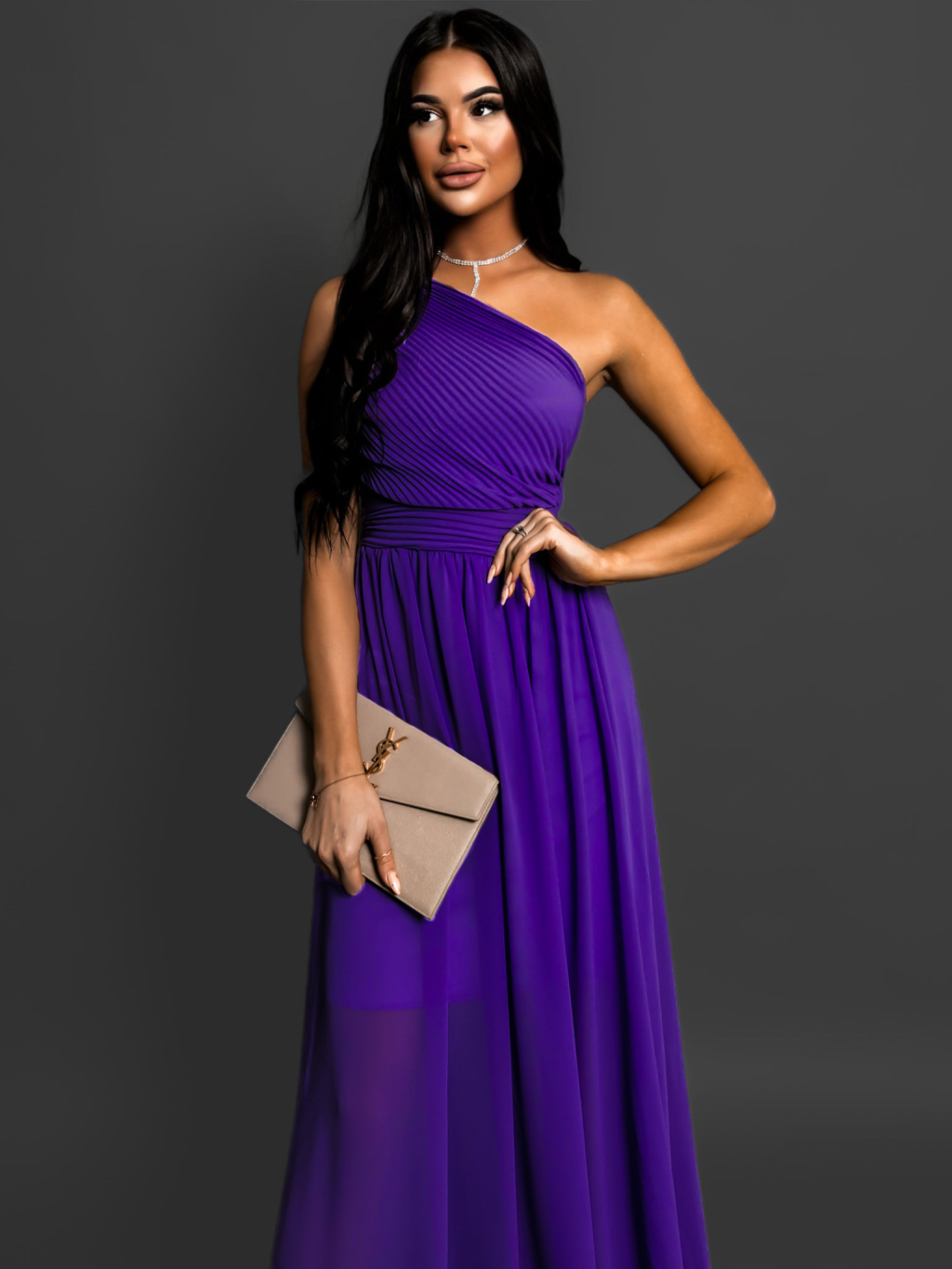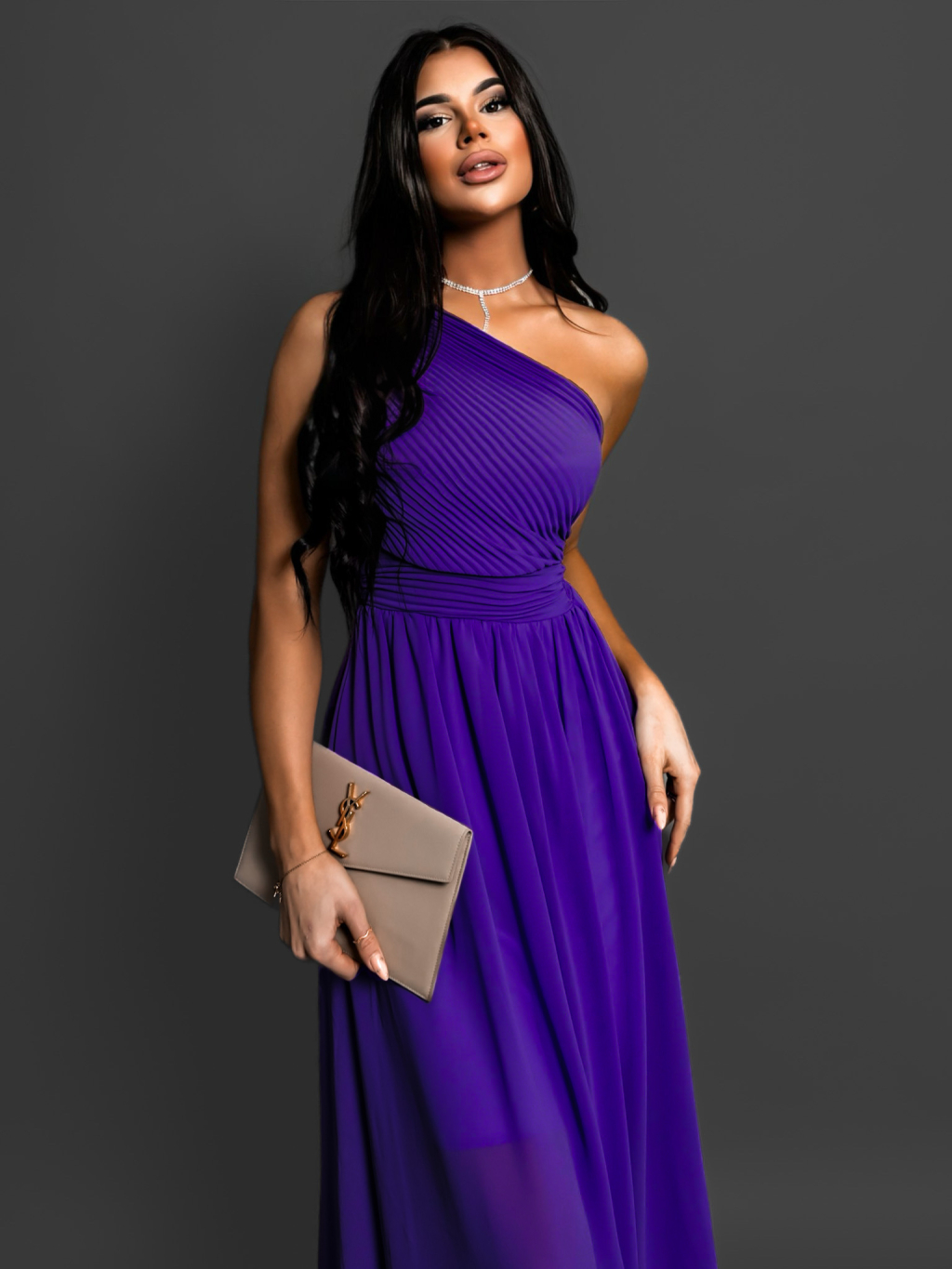 Tmavo fialové spoločenské dlhé šaty FLOAT