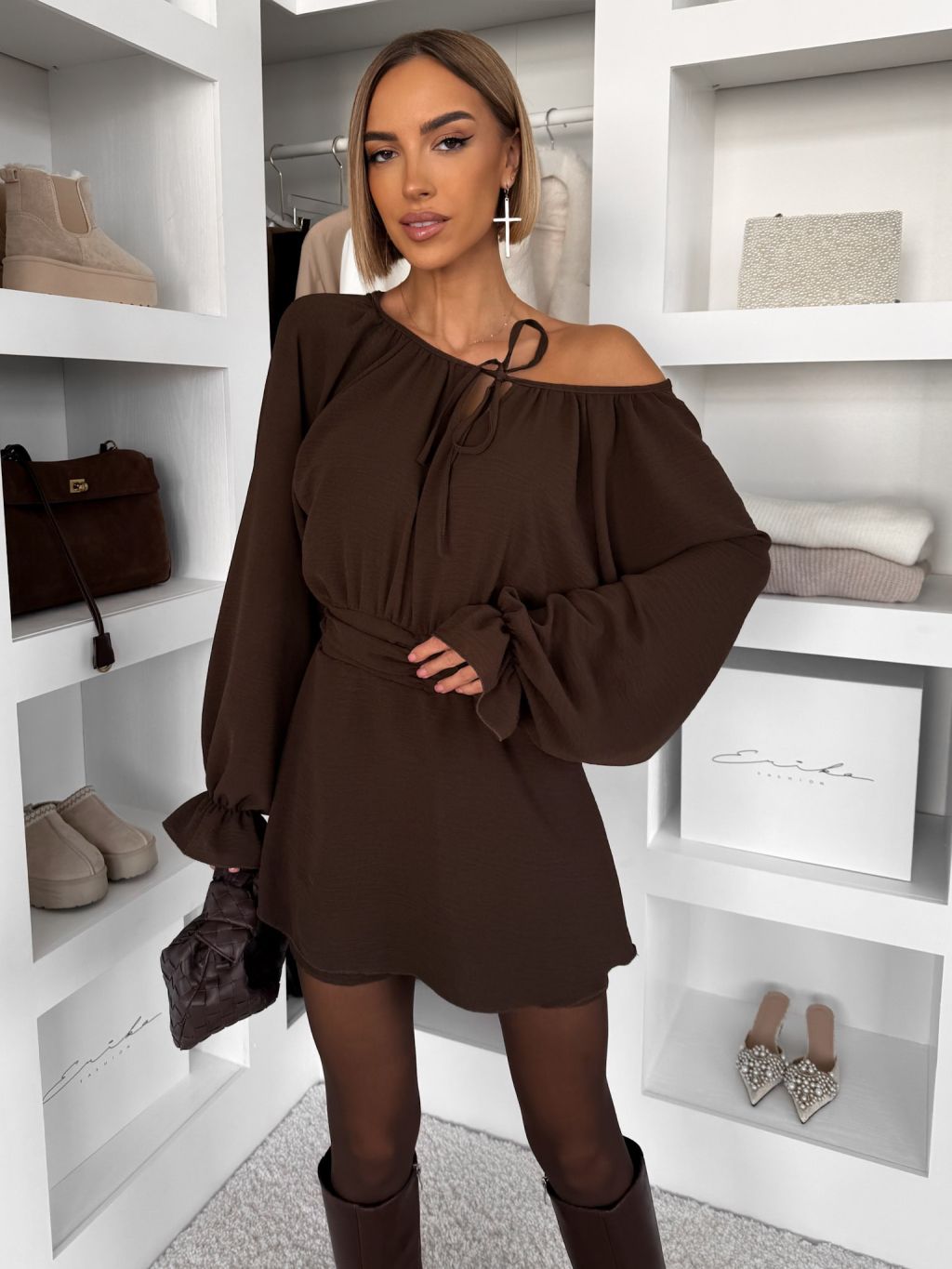 Tmavo hnedé krátke šaty AVROI s kraťaskami