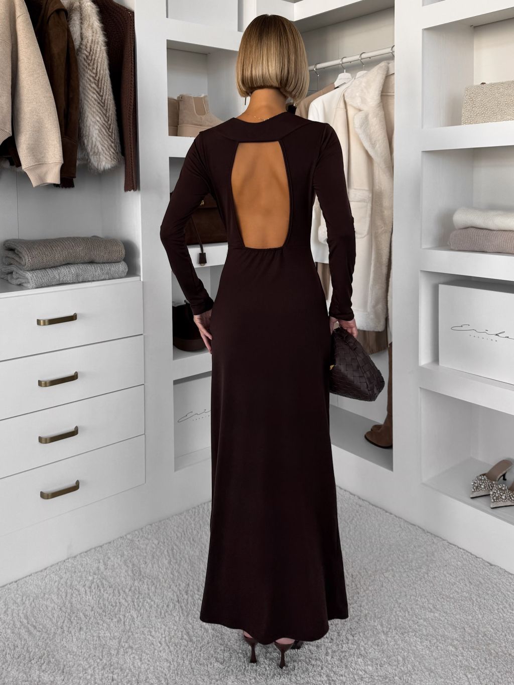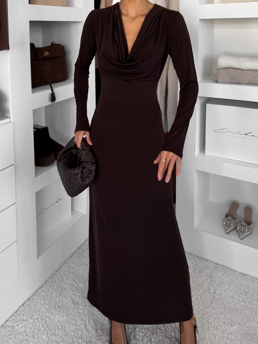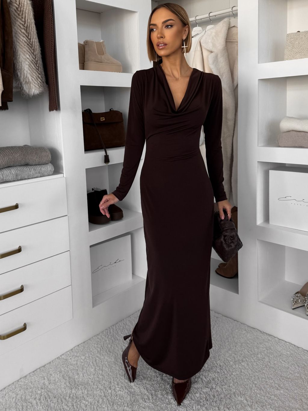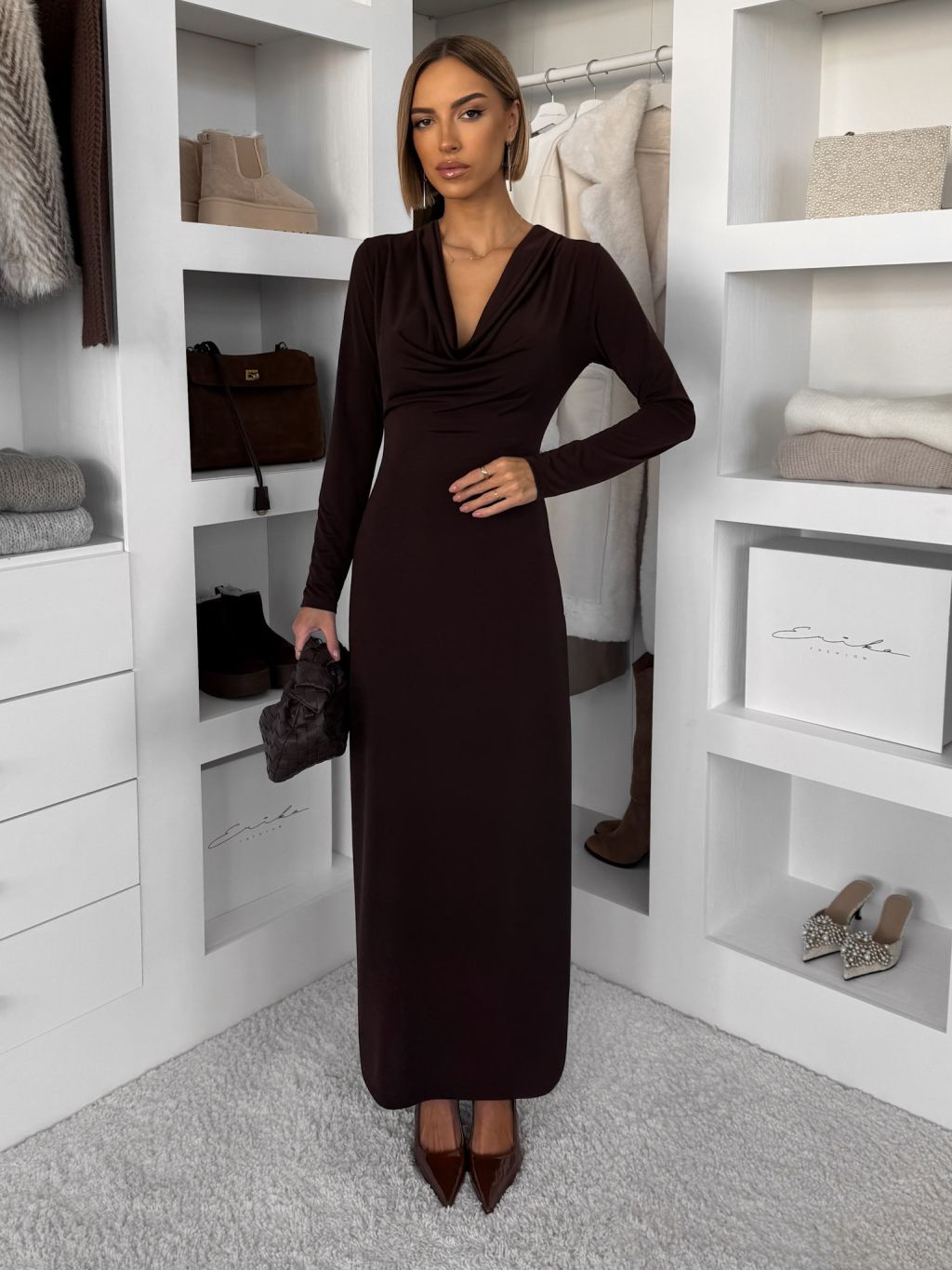 Tmavo hnedé spoločenské dlhé šaty OLIVINE