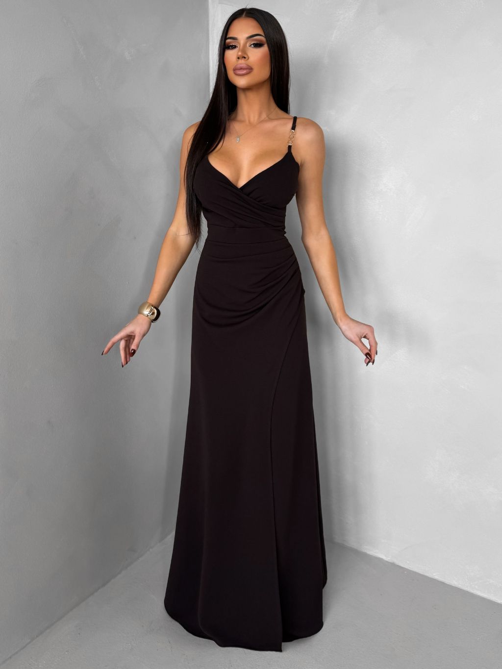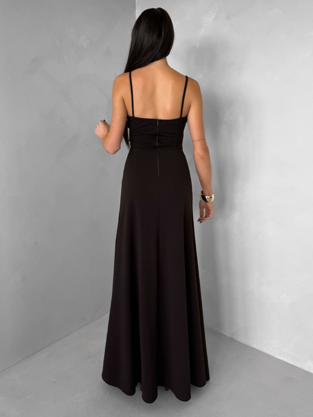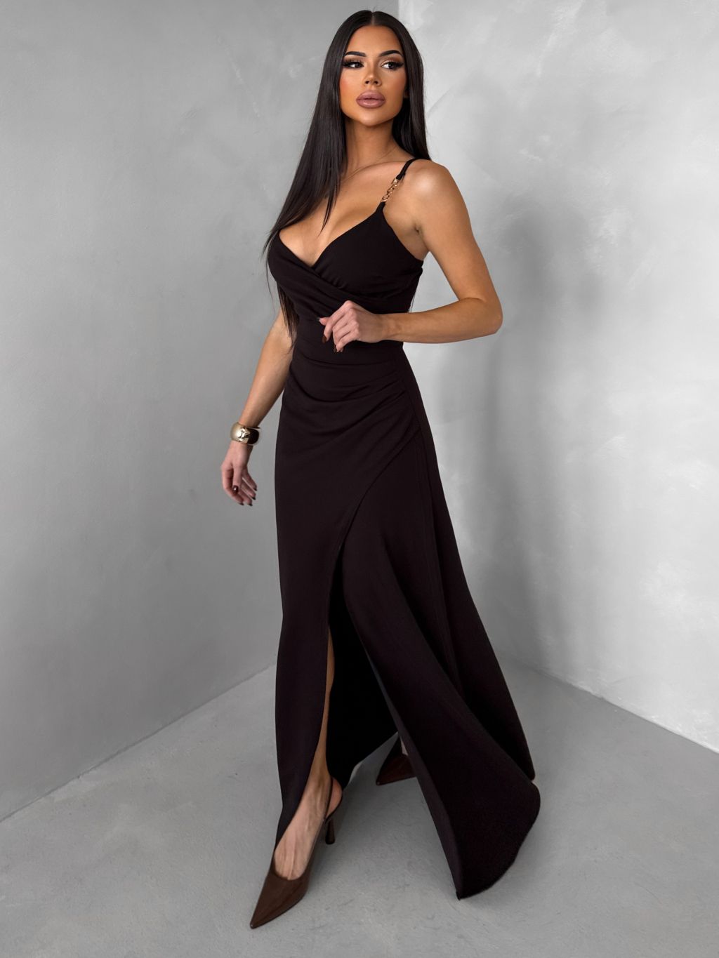 Tmavo hnedé spoločenské dlhé šaty SANQULA