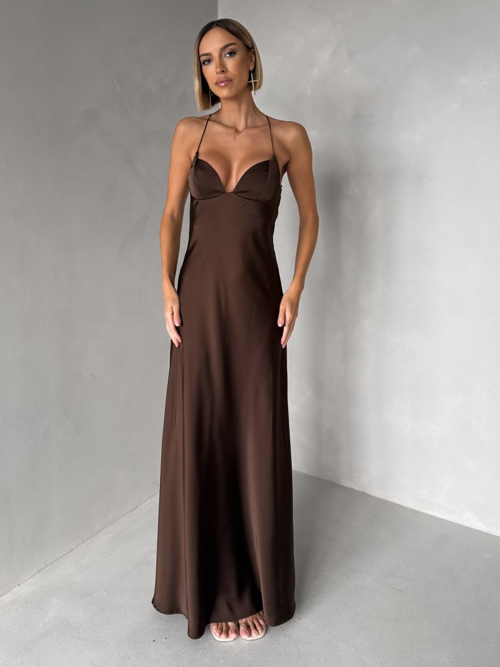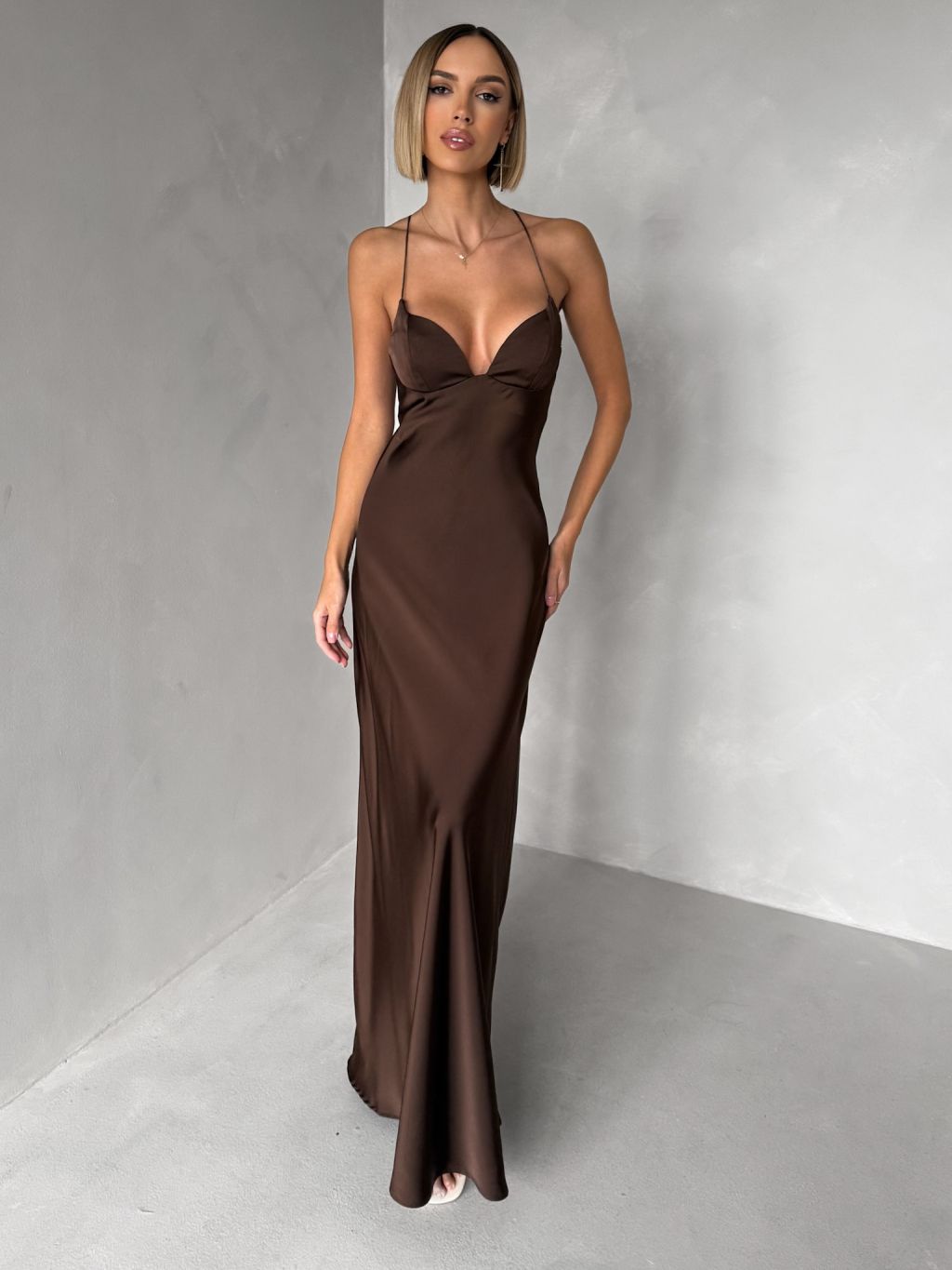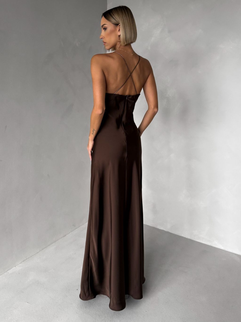 Tmavo hnedé spoločenské saténové dlhé šaty ZUNDARA
