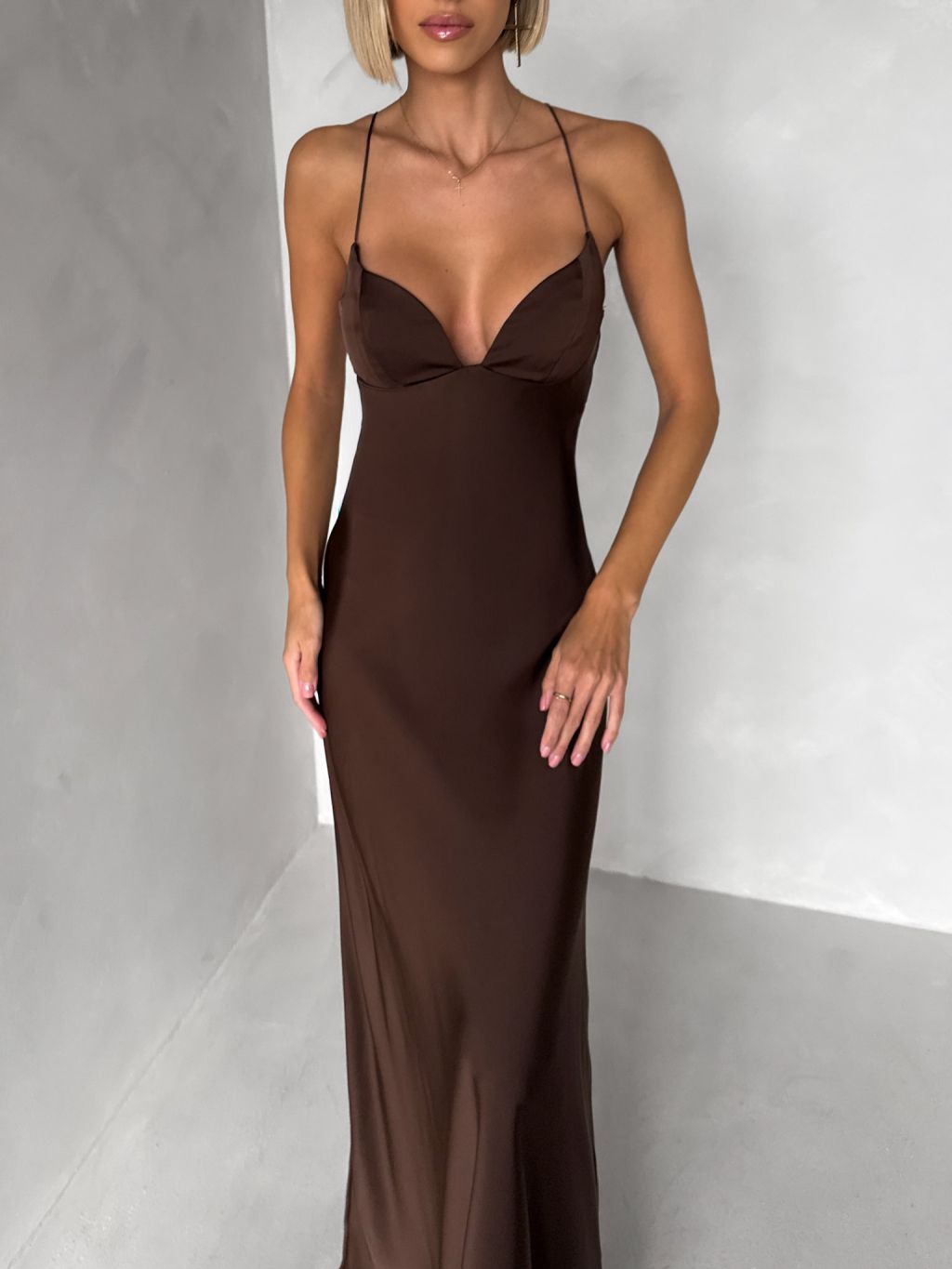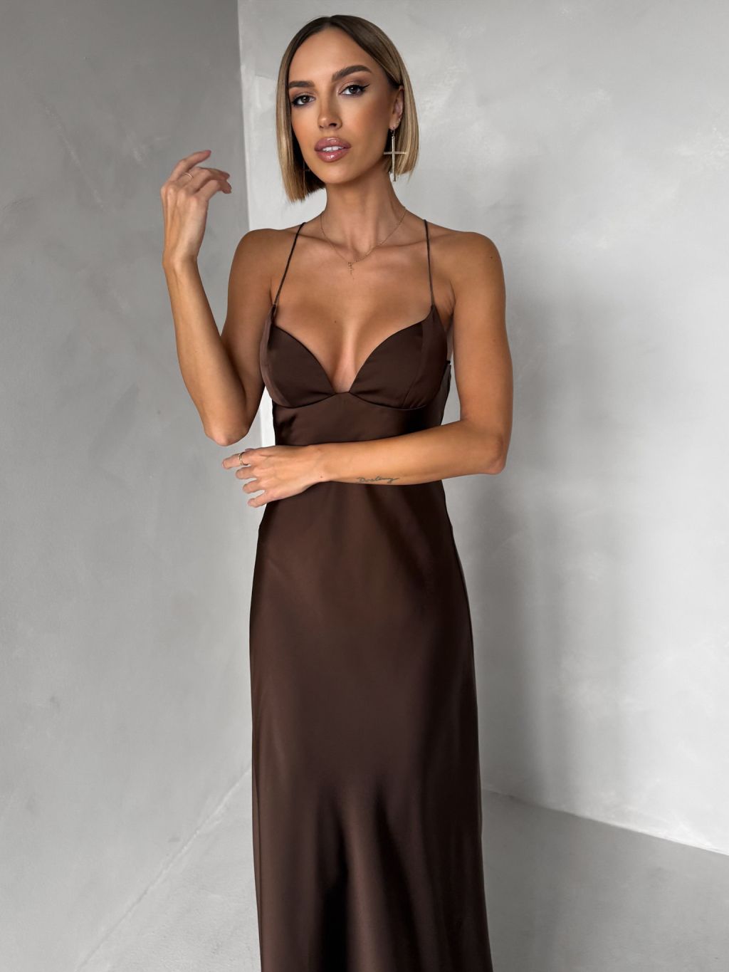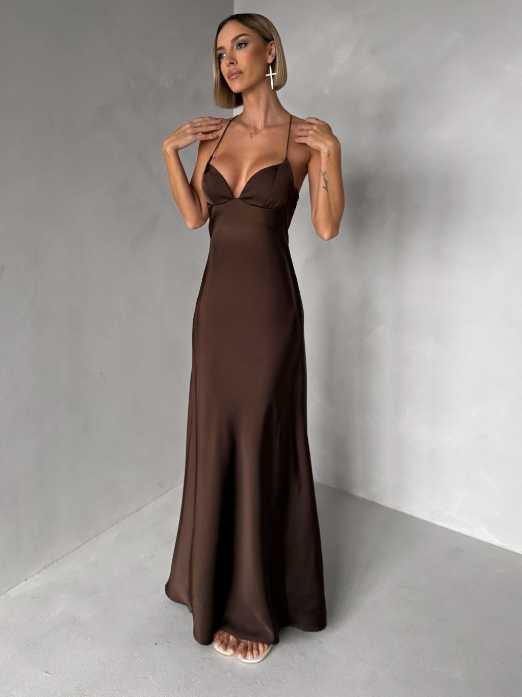Tmavo hnedé spoločenské saténové dlhé šaty ZUNDARA