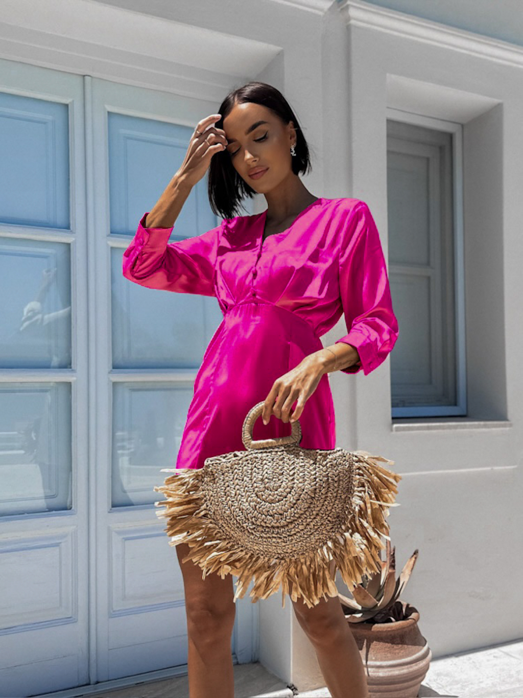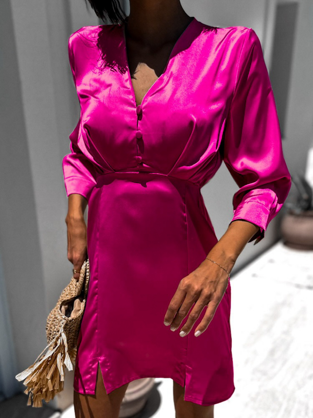 Tmavo ružové lesklé elegantné šaty DUOTE s gombíkmi