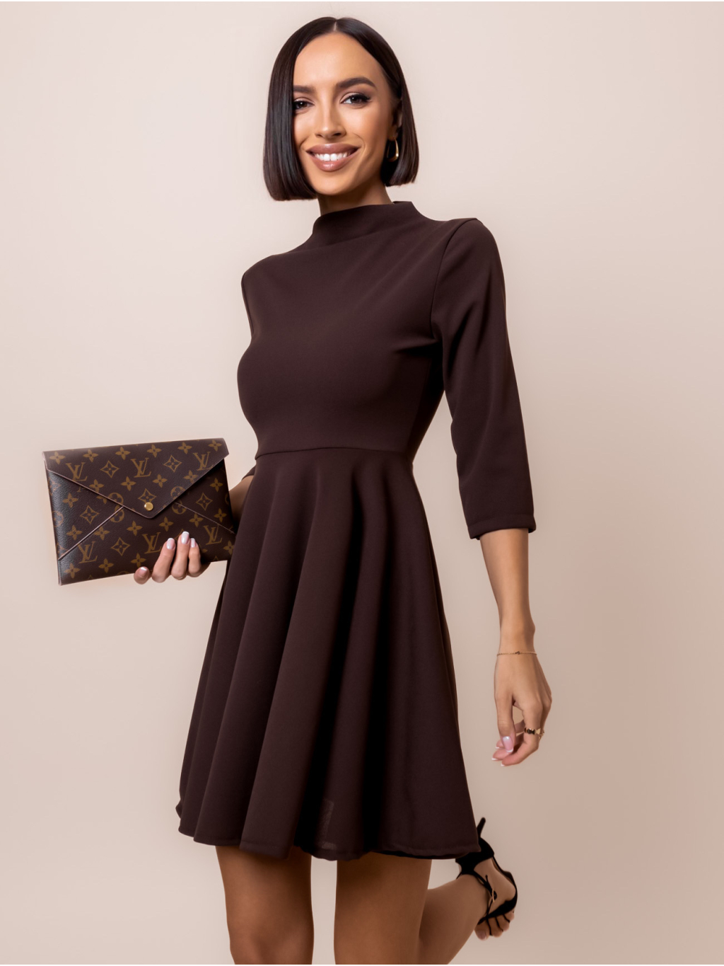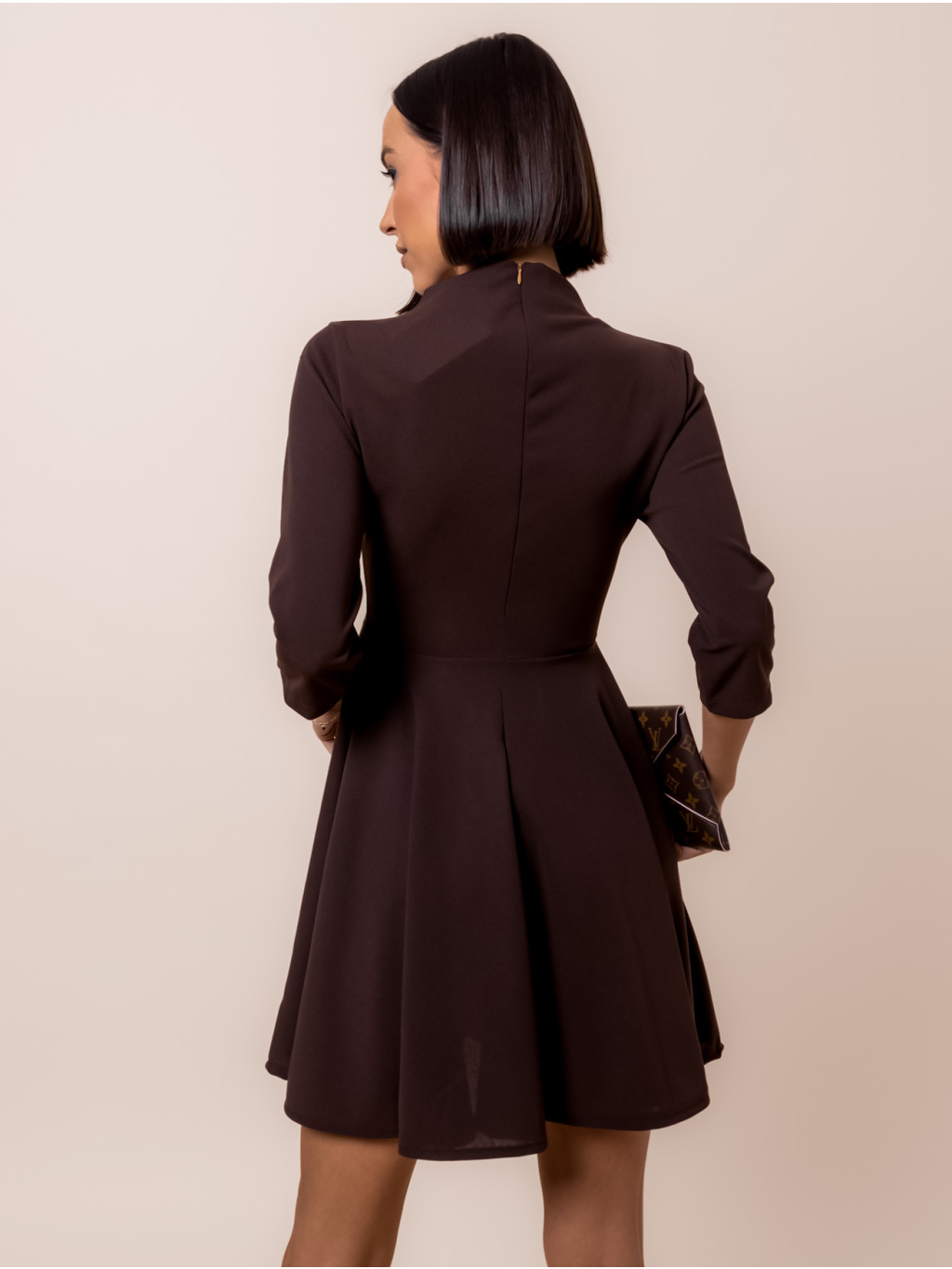 Tmavohnedé elegantné šaty GROUND s dlhým rukávom