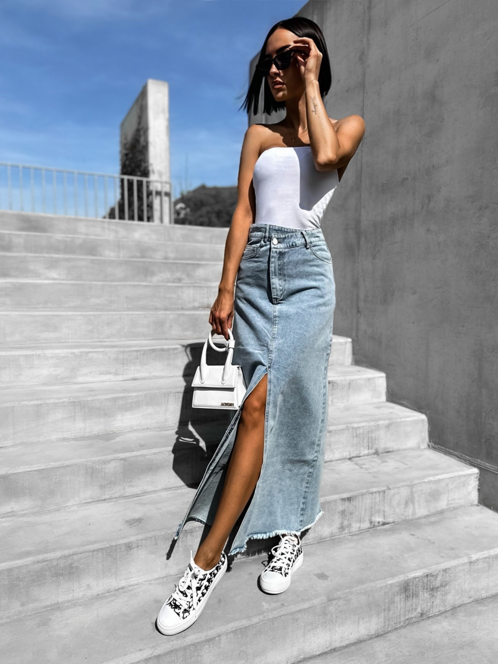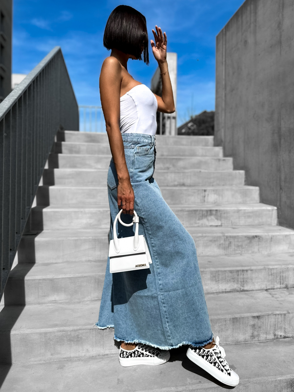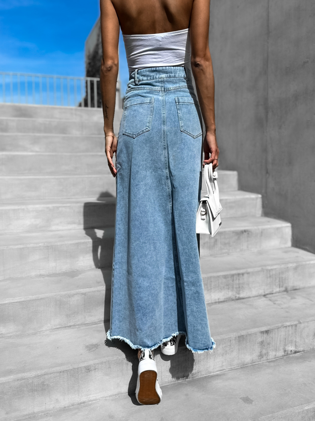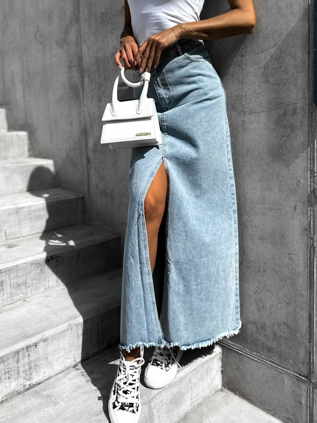 Tmavomodrá dlhá denim sukňa LOILENYS s rázporkom