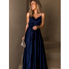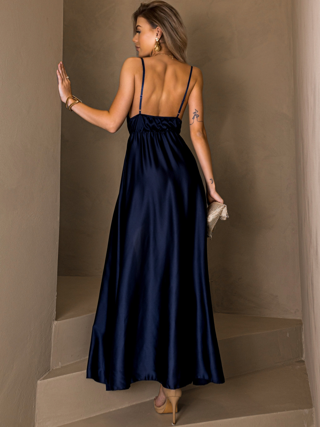 Tmavomodré dlhé elegantné šaty YASMINE s rázporkom