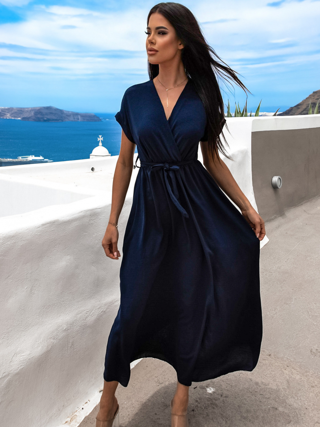 Tmavomodré dlhšie elegantné šaty FEYLING so zaväzovaním