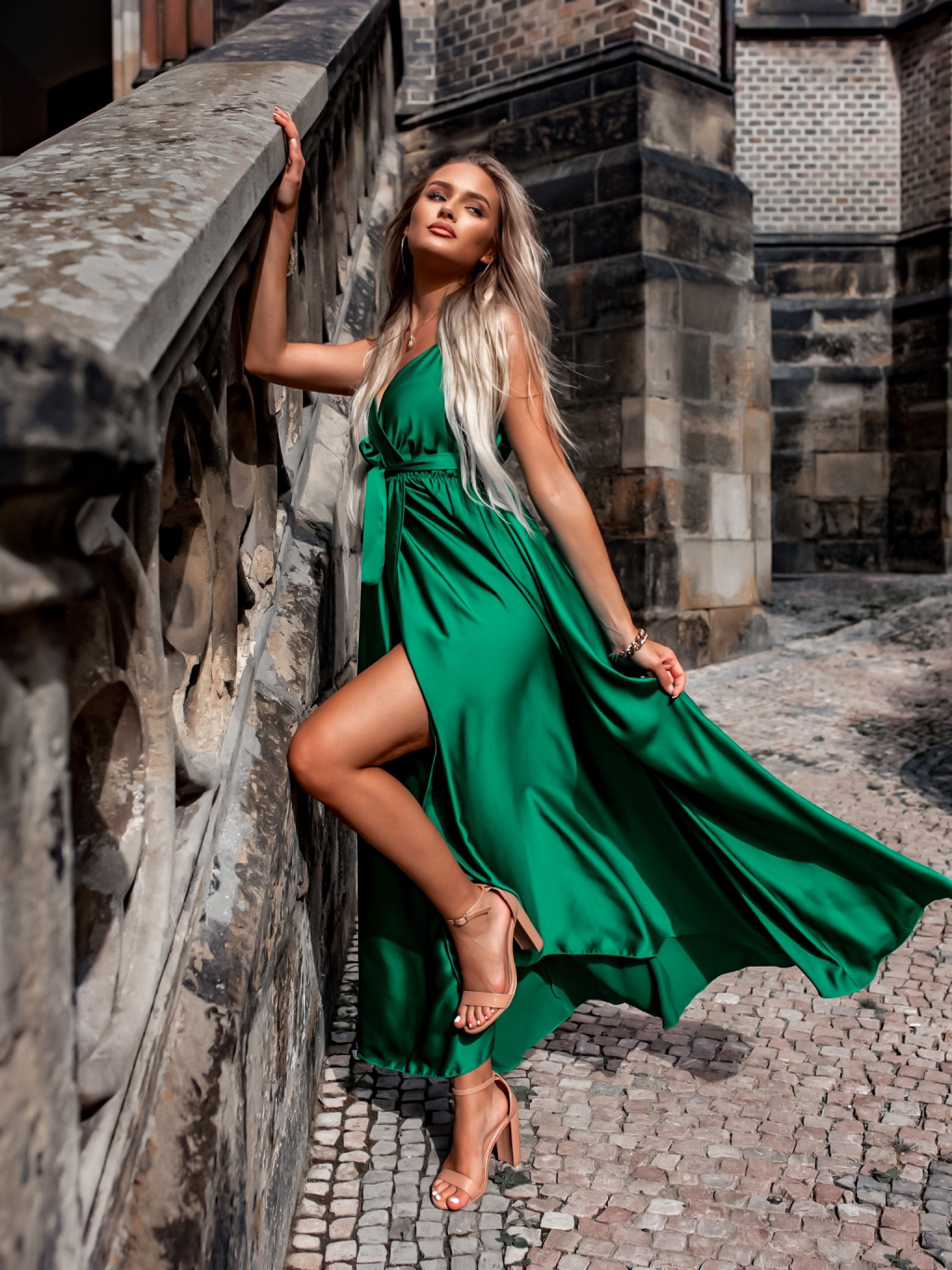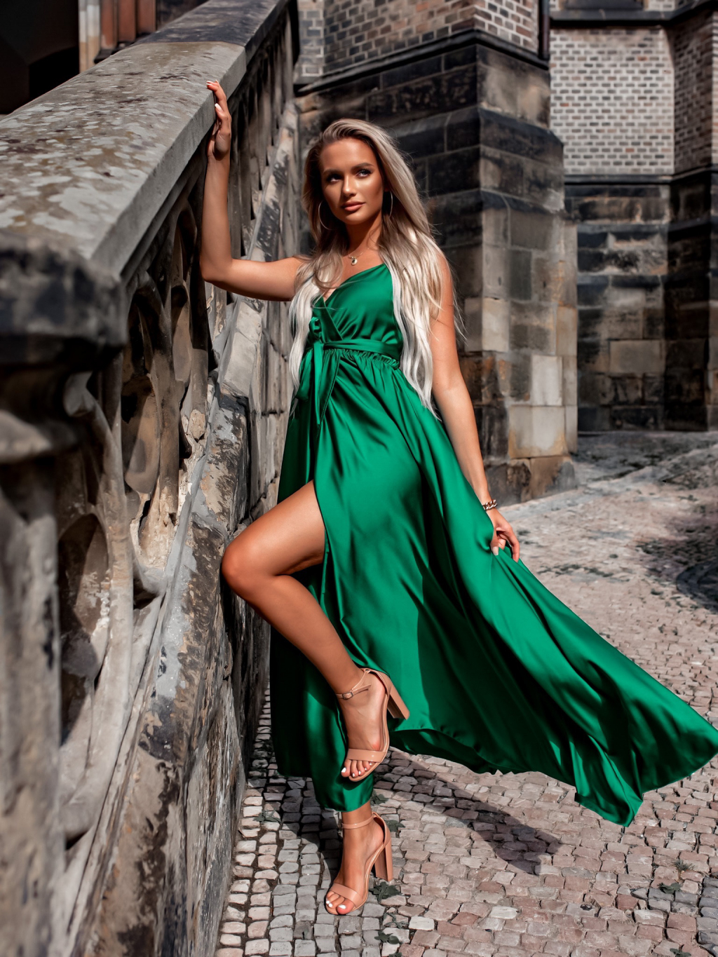 Tmavozelené elegantní dlouhé šaty FAIRYTALE