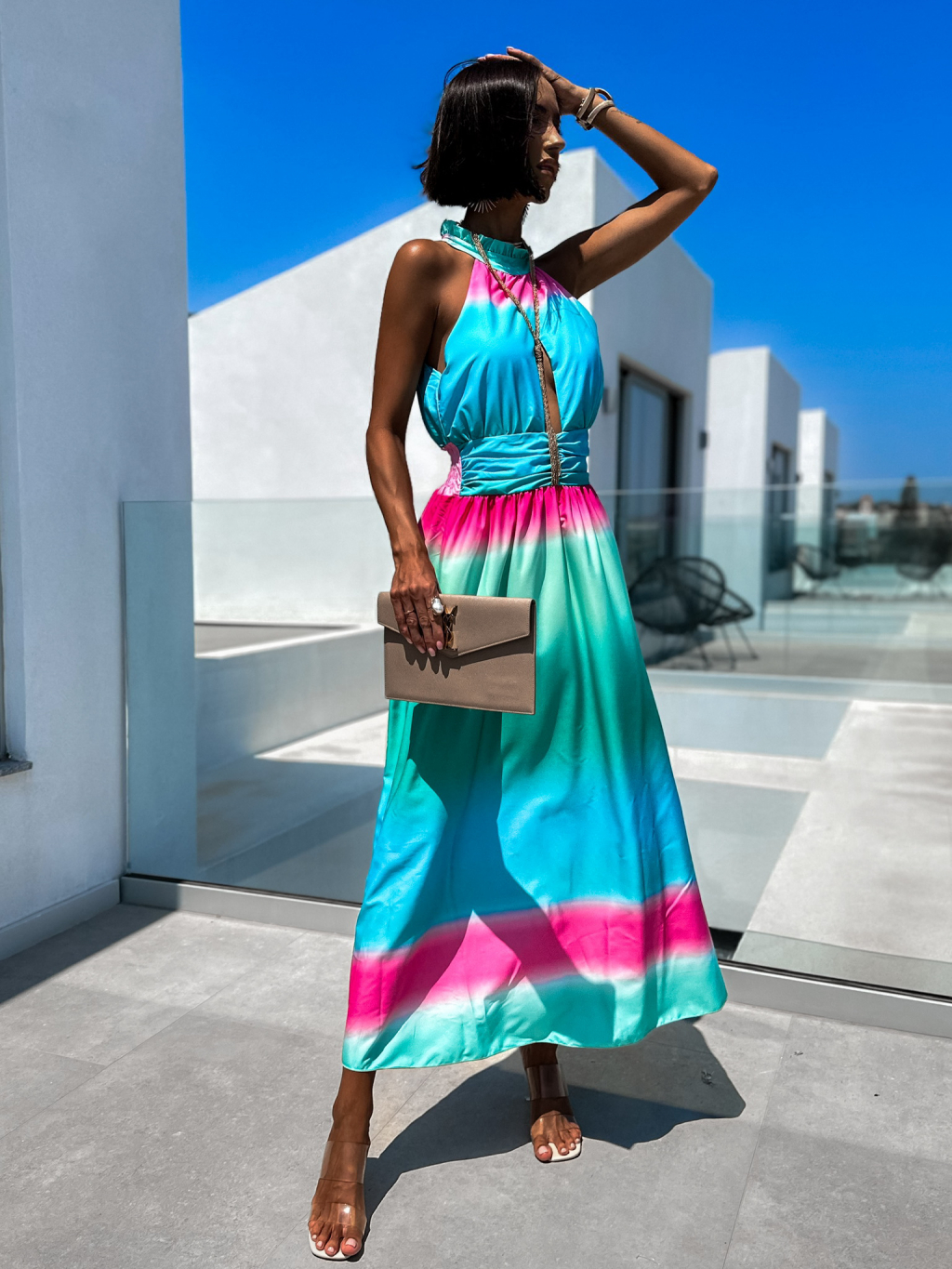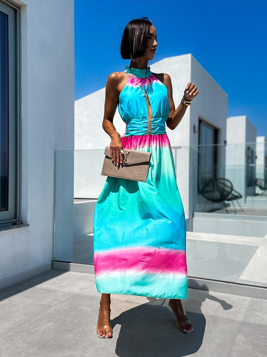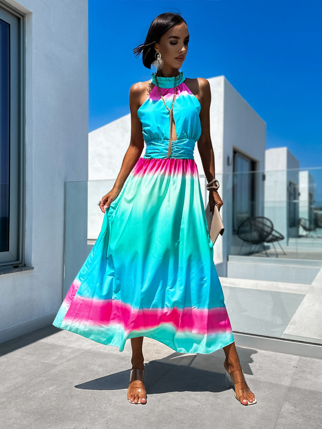 Tyrkysové dlhé elegantné šaty ANYAS