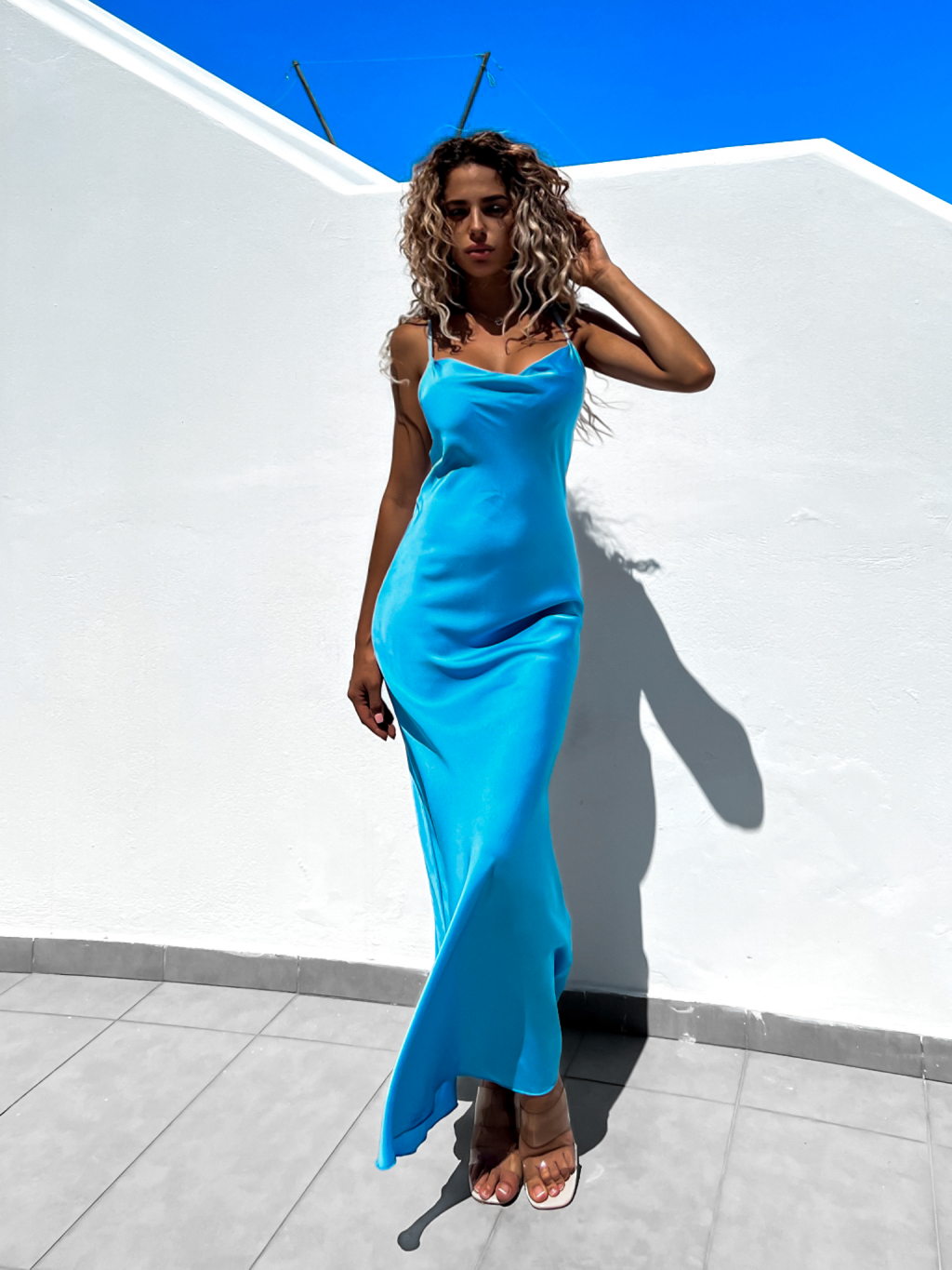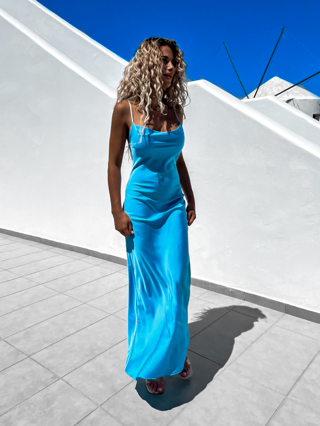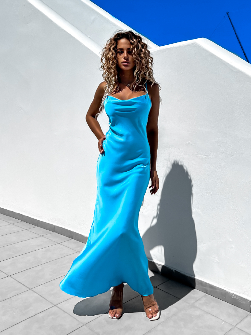 Tyrkysové dlhé lesklé šaty KARRIN