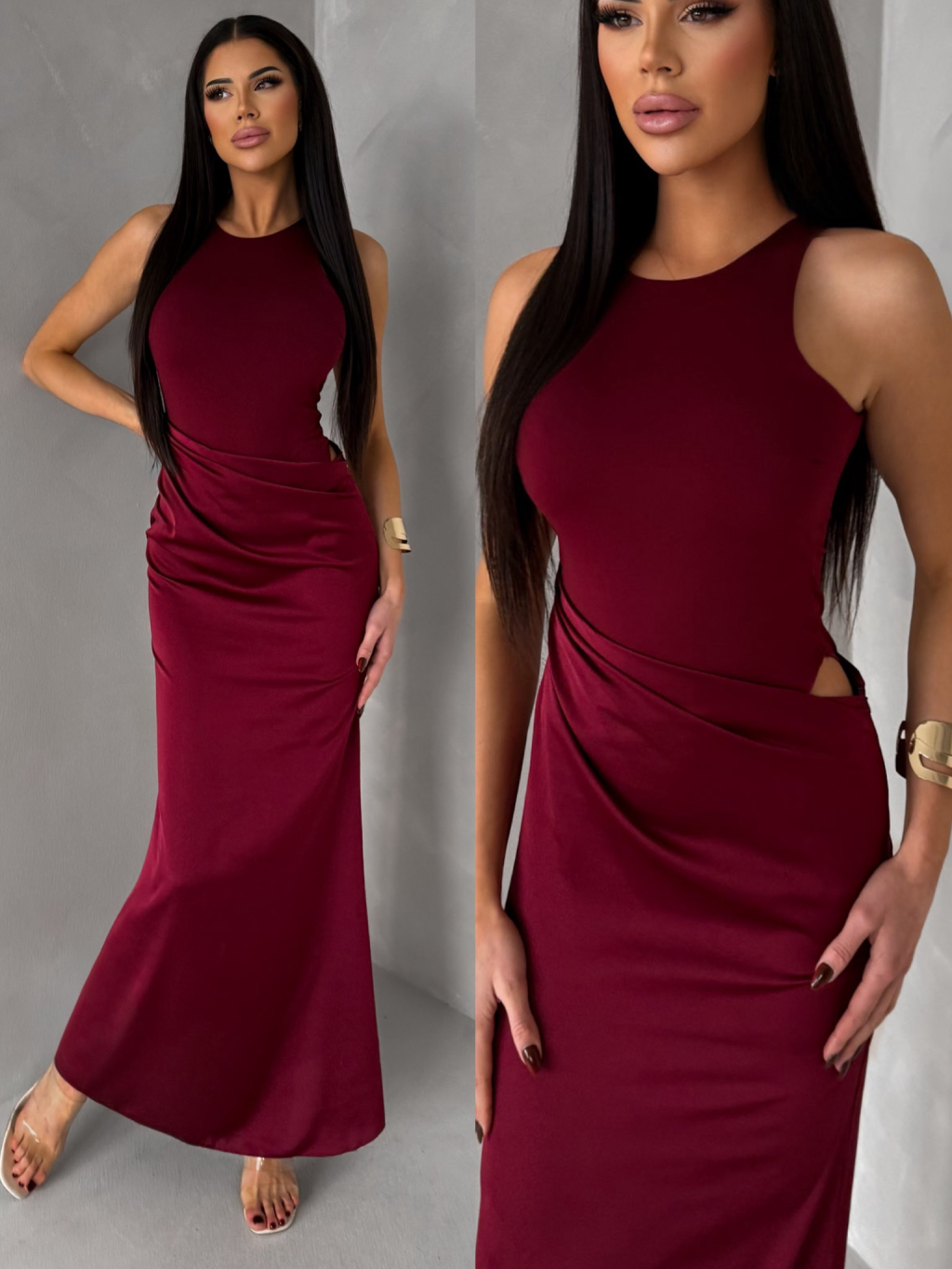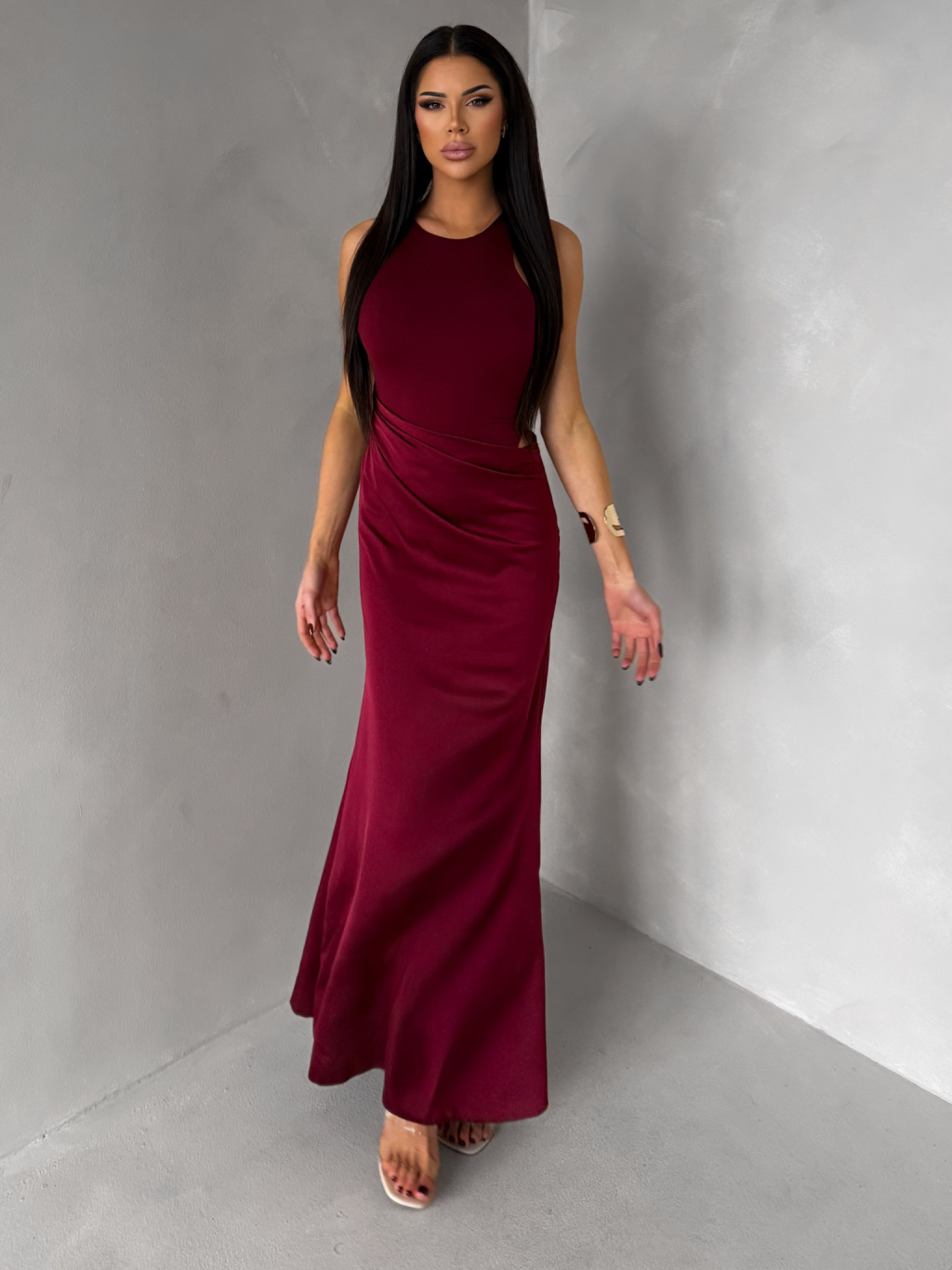 Vínové spoločenské dlhé šaty VEĽMORO s bodmi