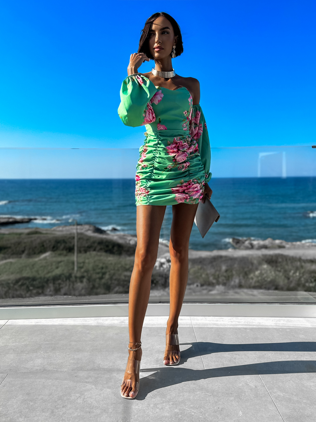 Zelené elegantné šaty RILEY s kvetinovým vzorom