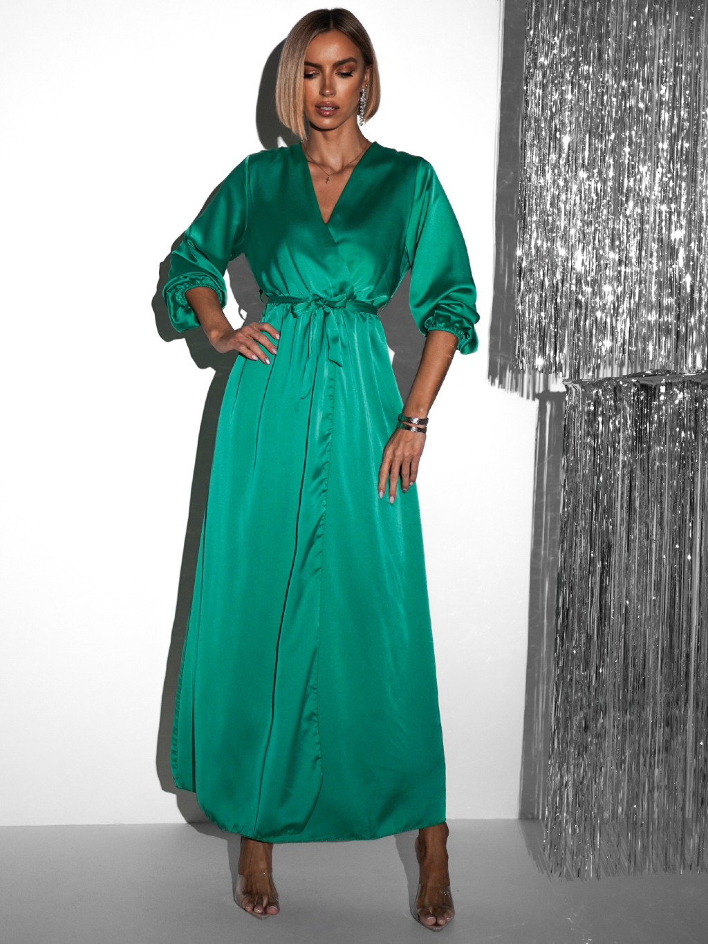 Zelené elegantné šaty WOMAN s dlhým rukávom