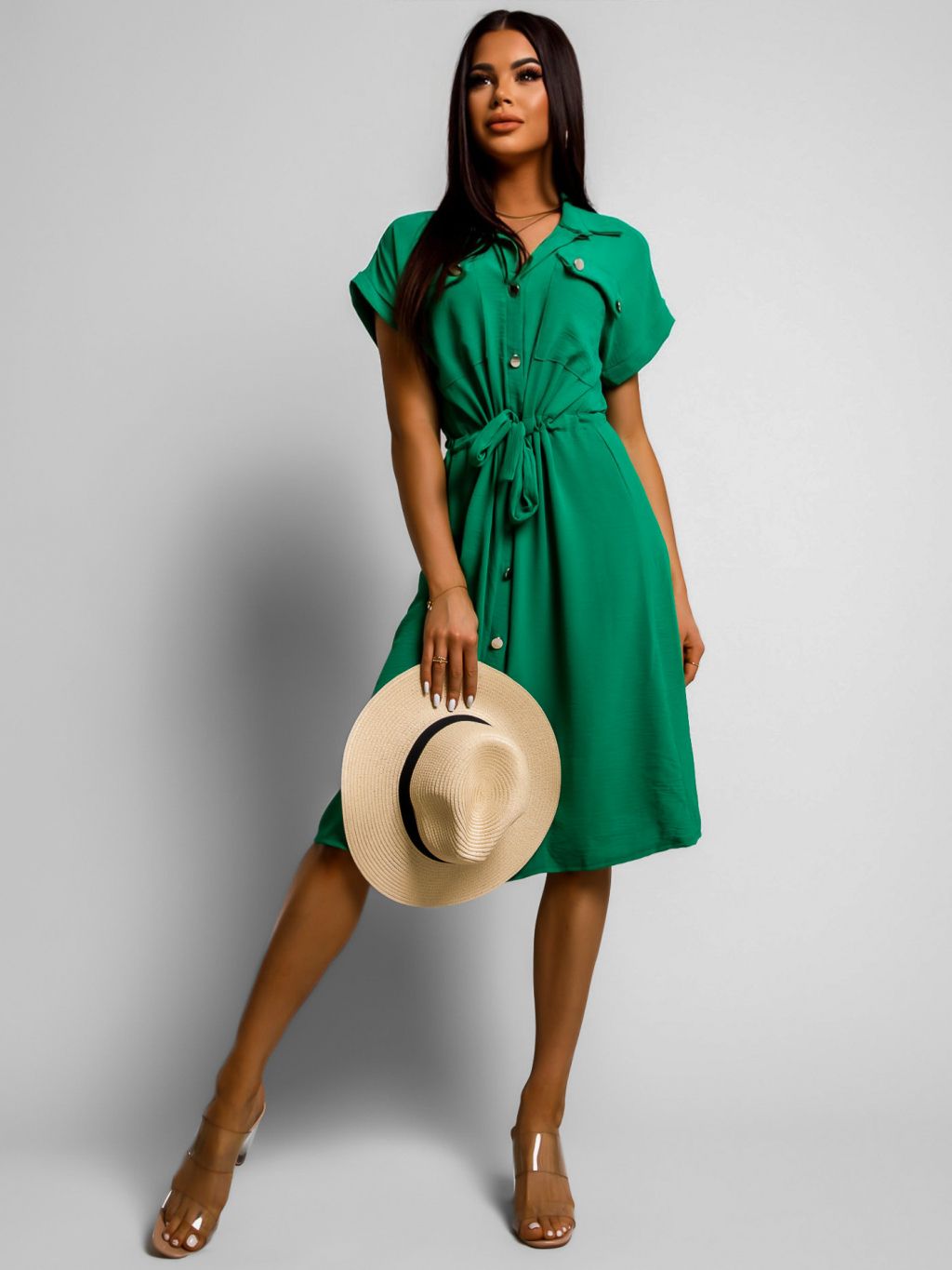 Zelené košeľové šaty BARDOT so zaväzovaním