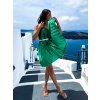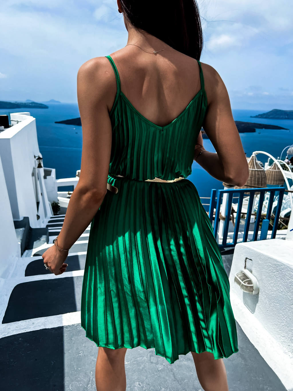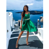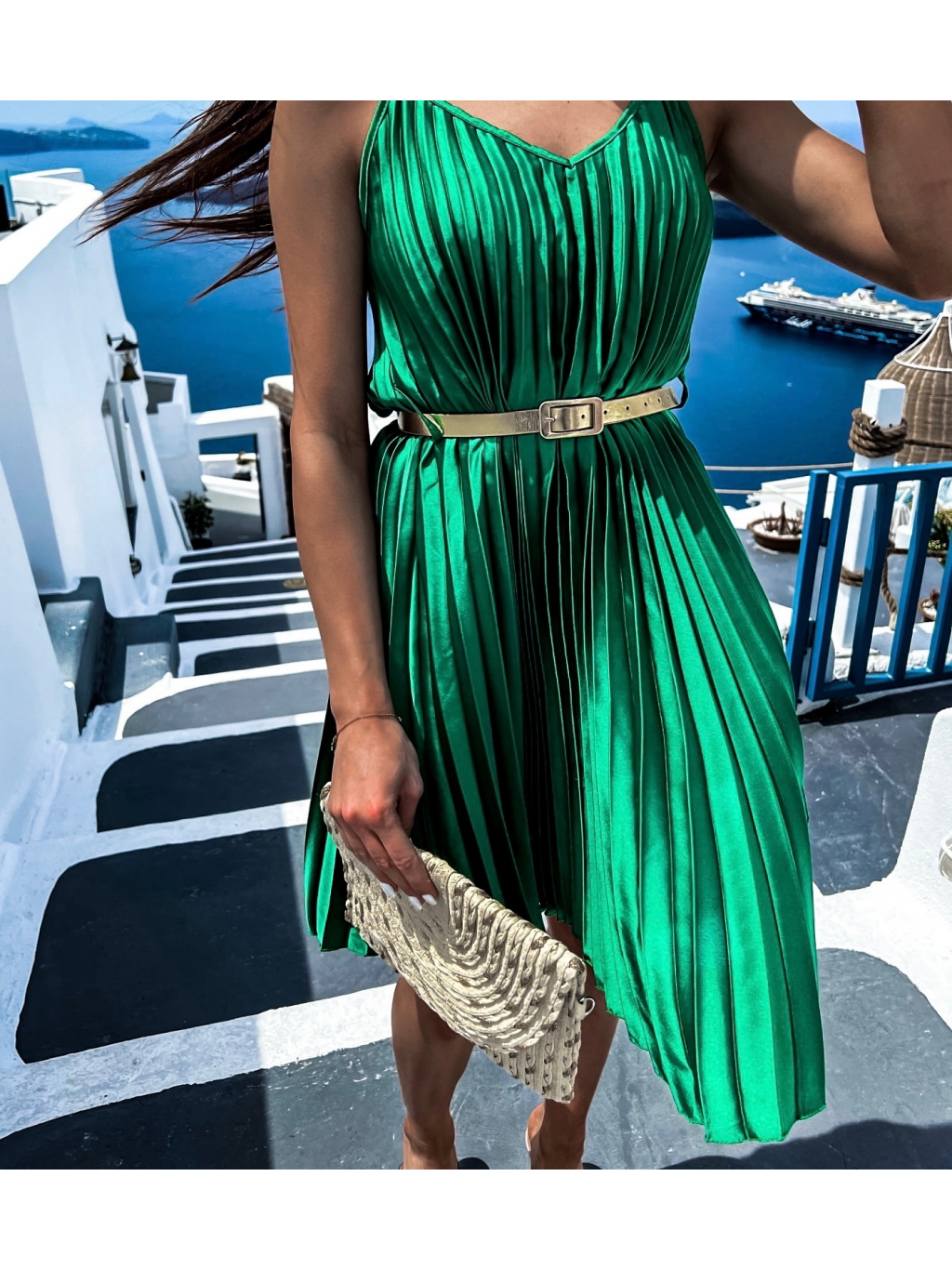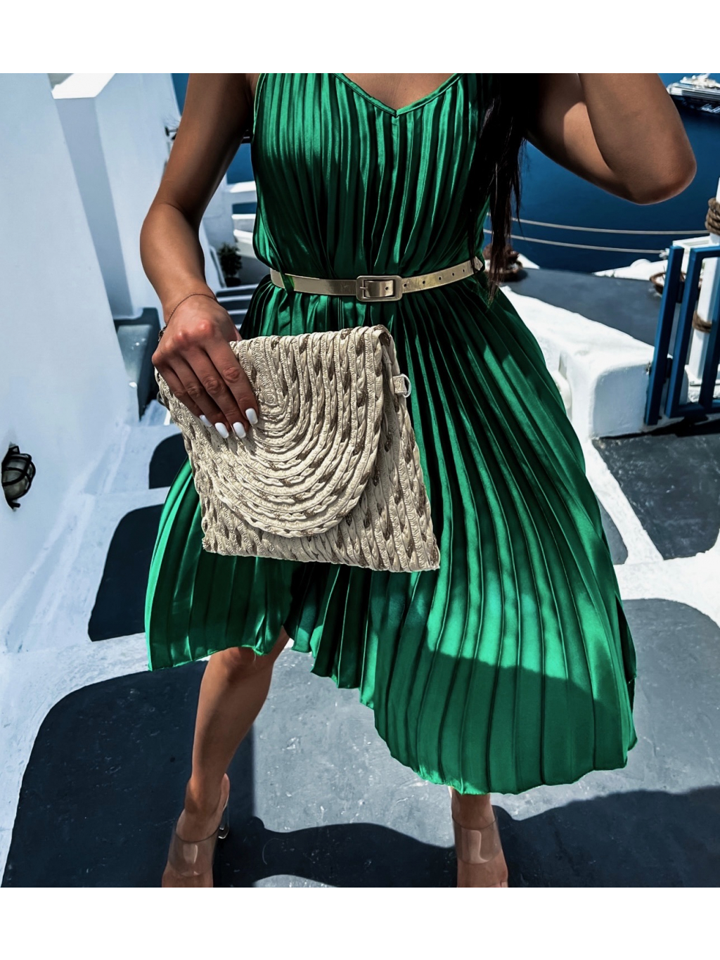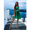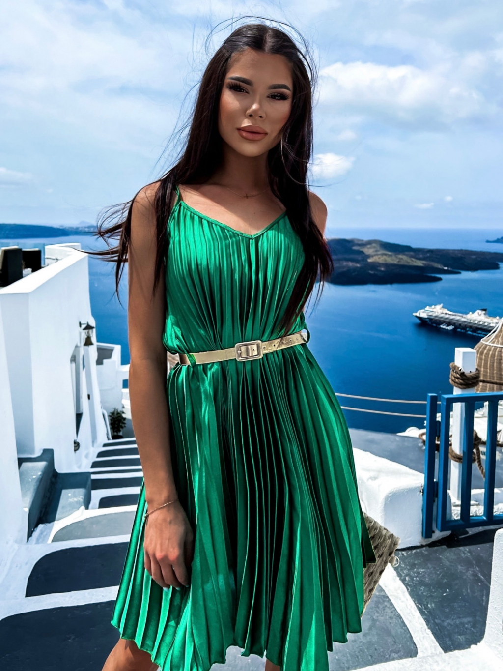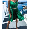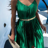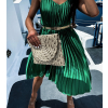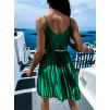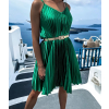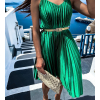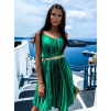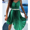 Zelené lesklé plisované šaty CLAURA so zlatým opaskom