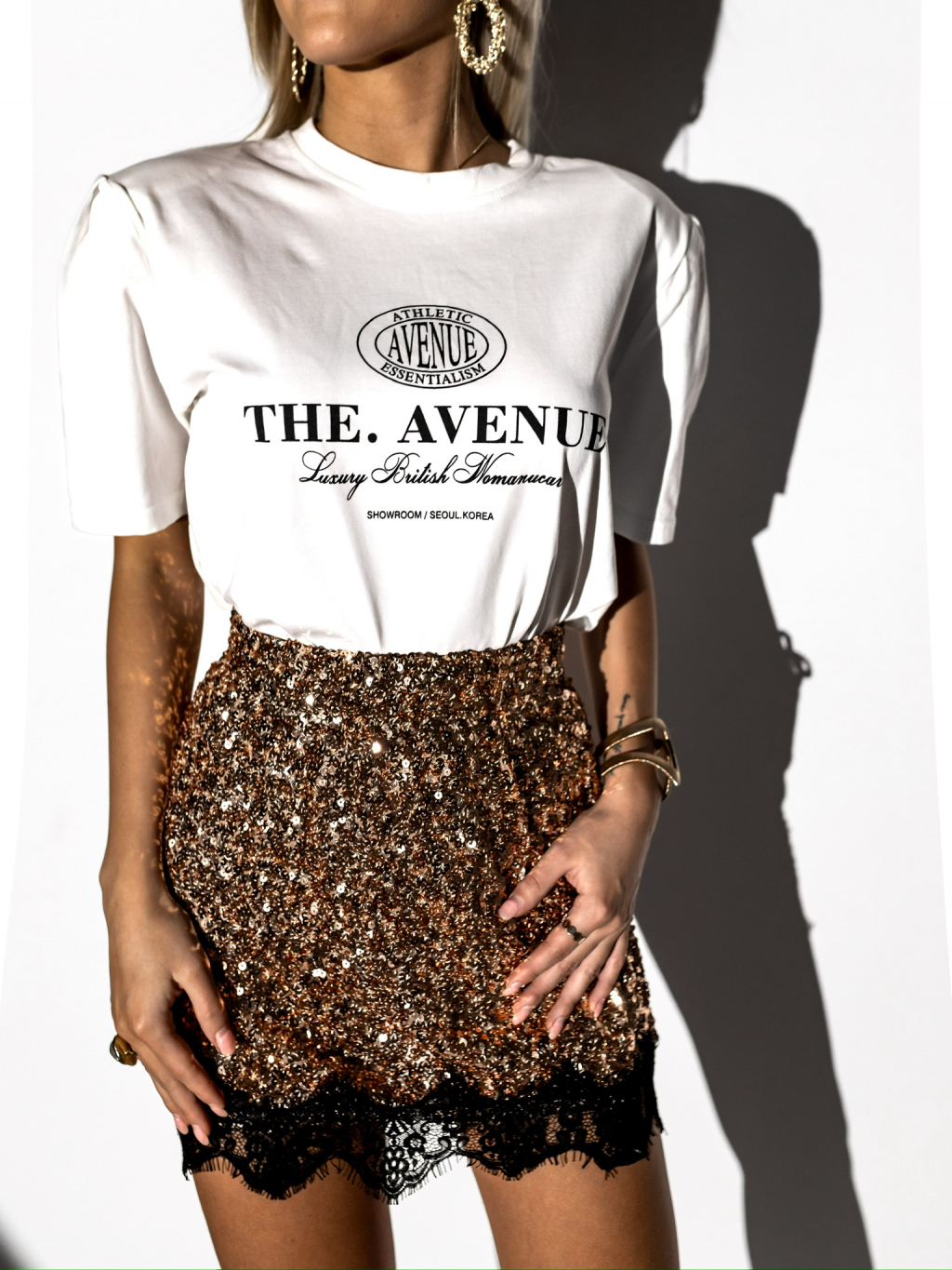 Zlatá minisukňa AMYKOS s flitrami a čipkou