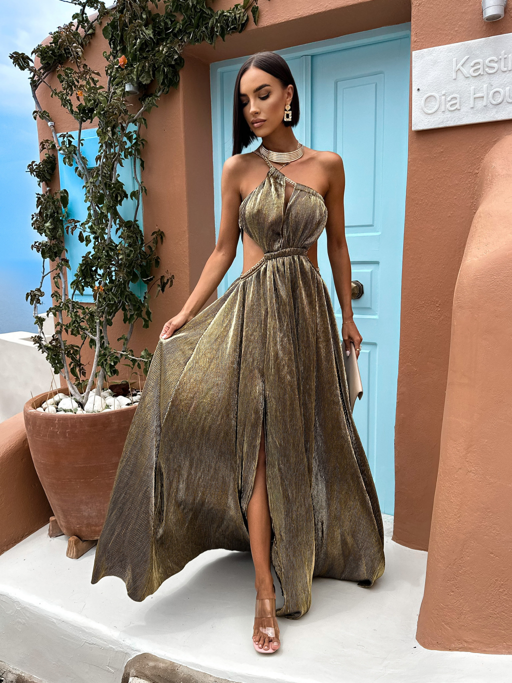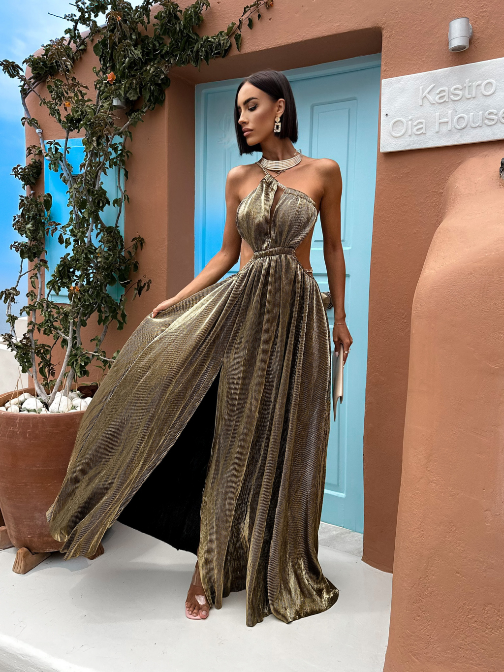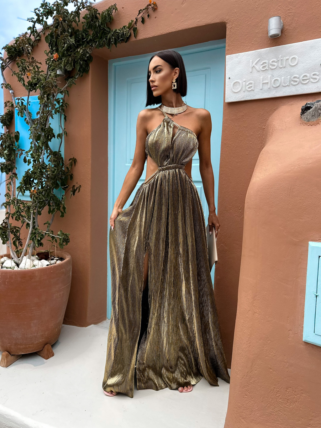 Zlaté lesklé elegantné šaty URINIE so zlatým detailom