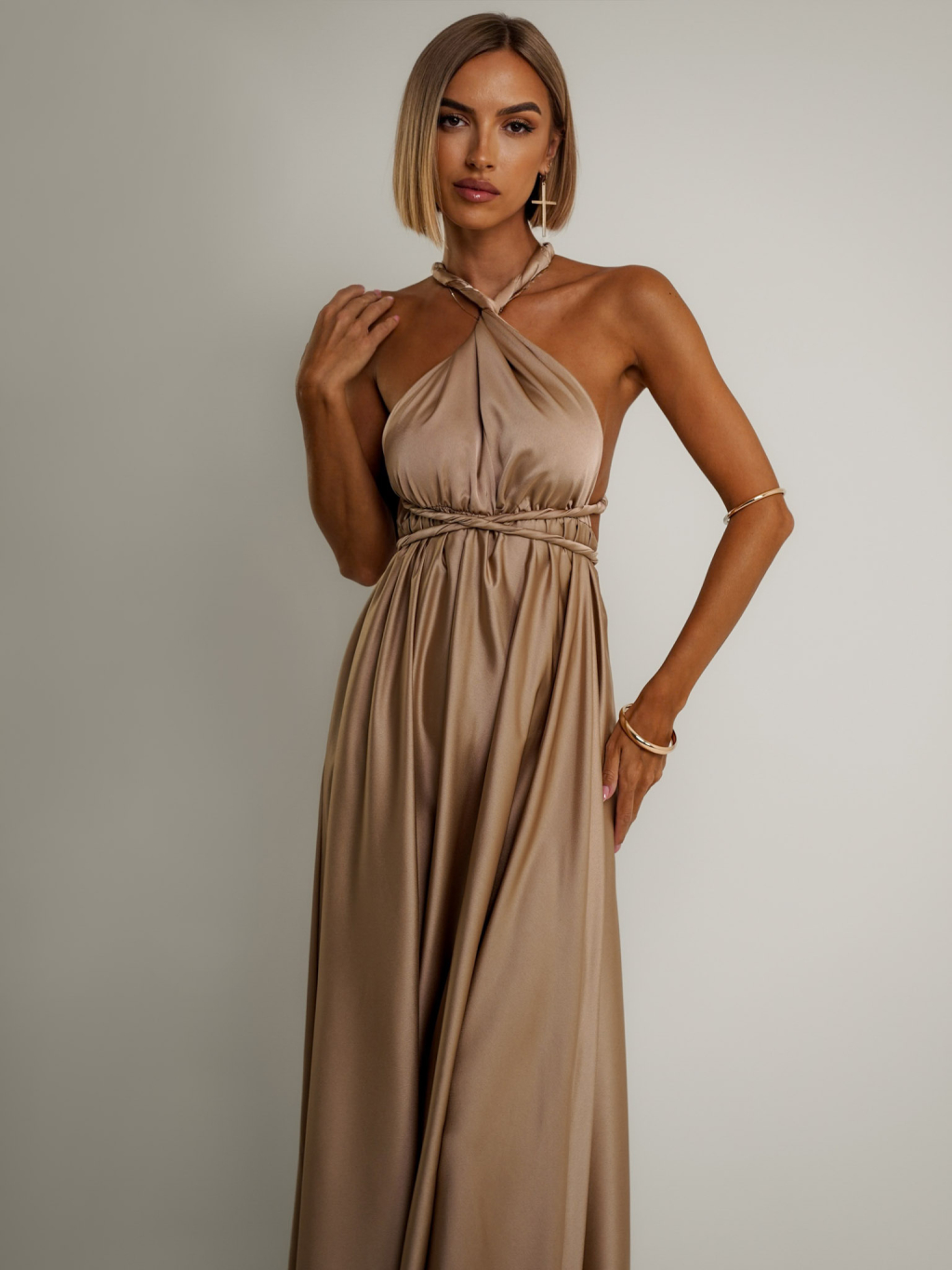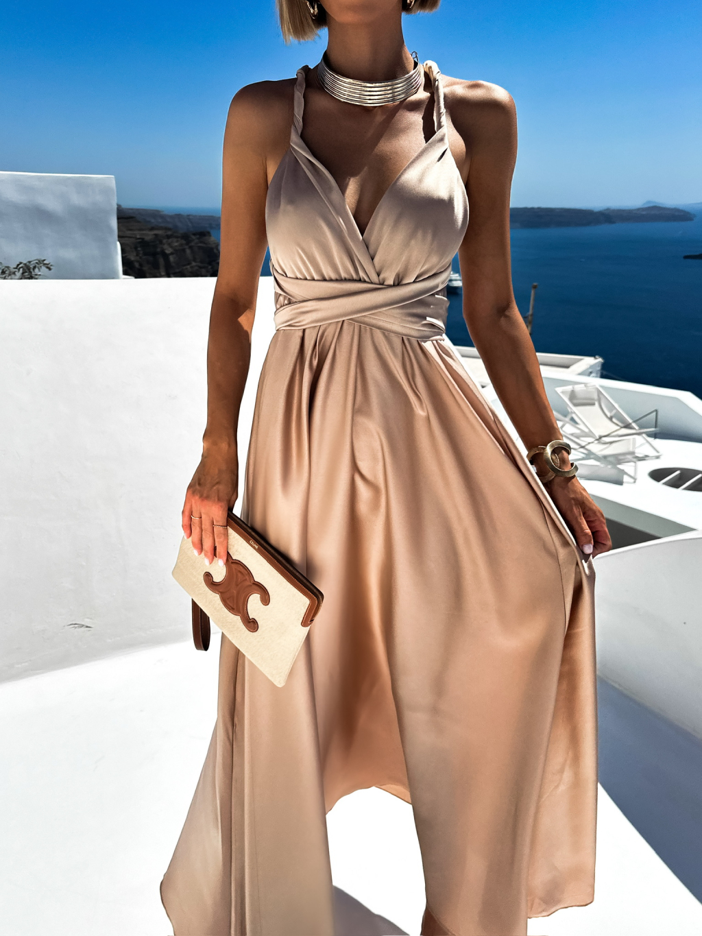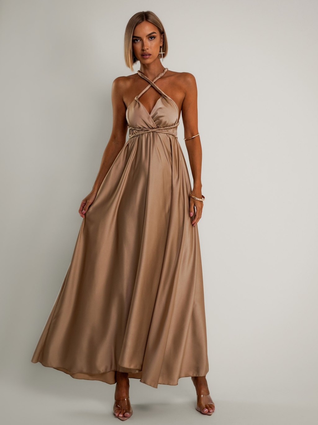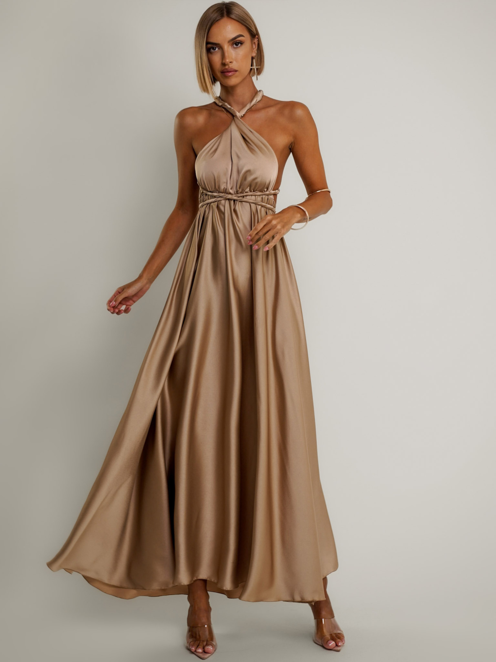 Zlaté lesklé šaty VALERDY s variabilným viazaním / bez rázporku