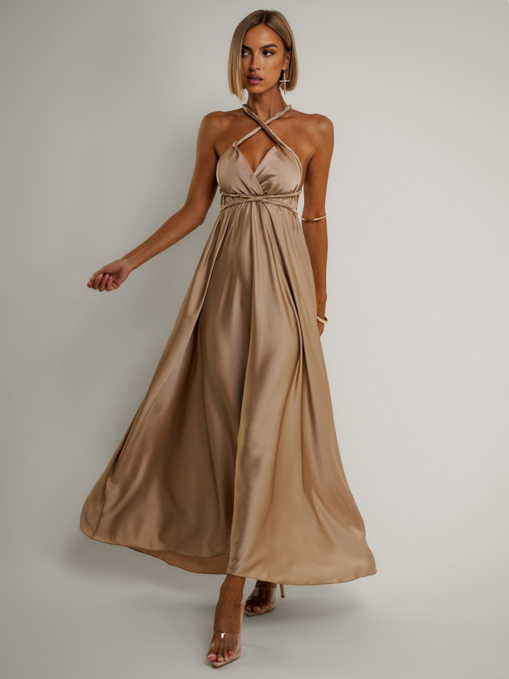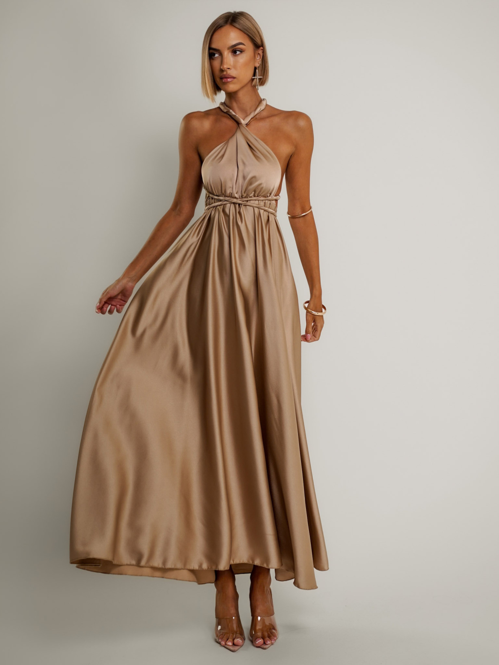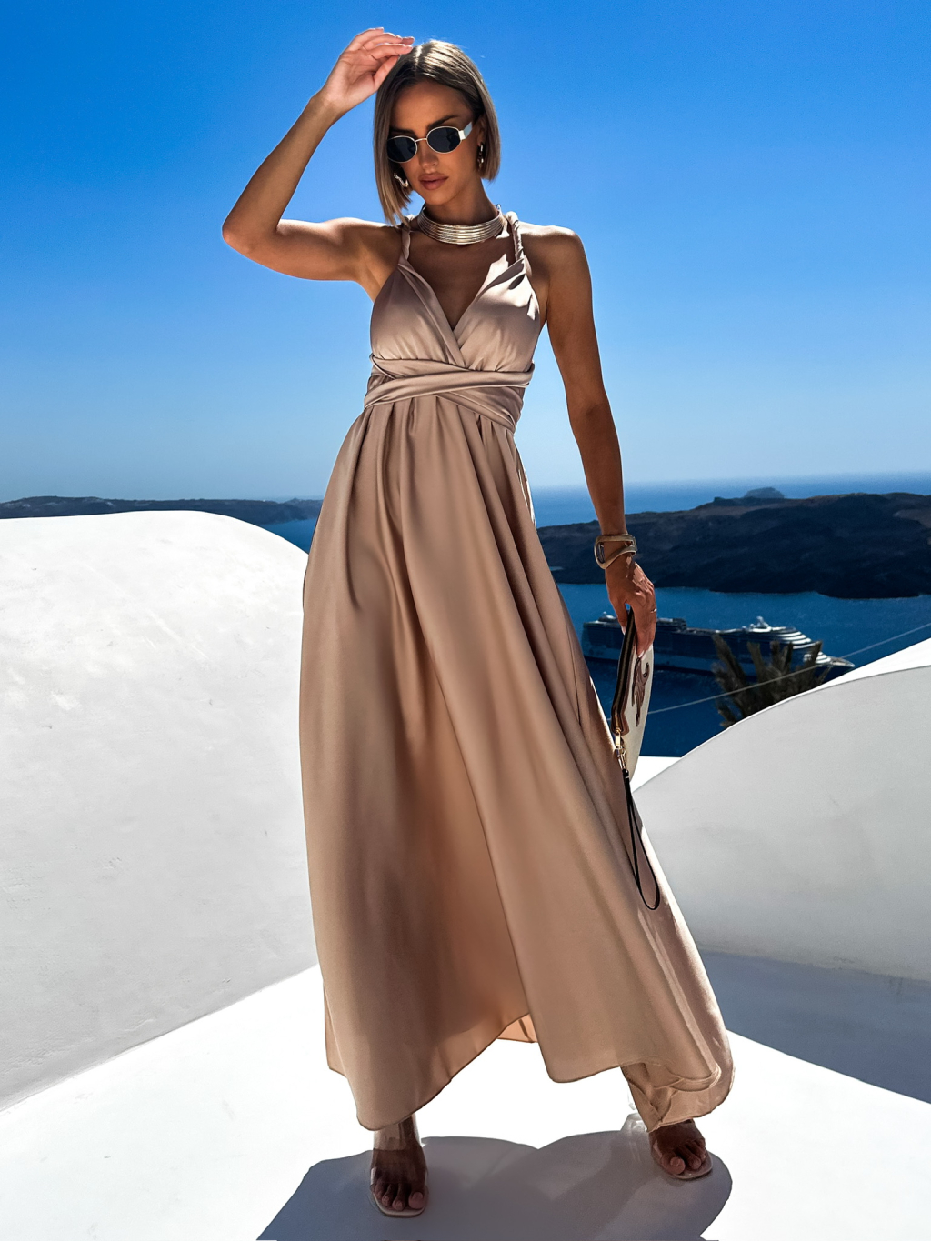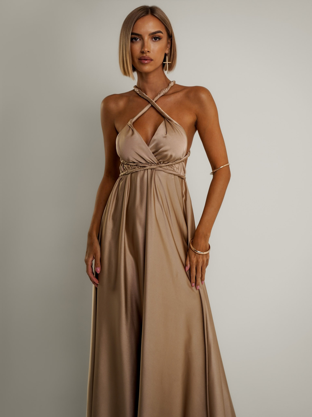 Zlaté lesklé šaty VALERDY s variabilným viazaním / bez rázporku