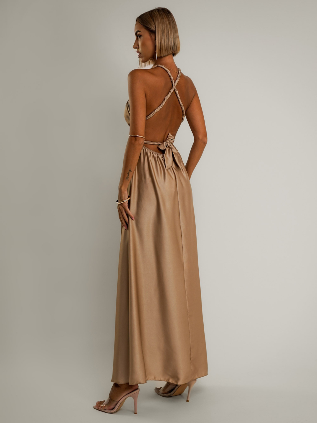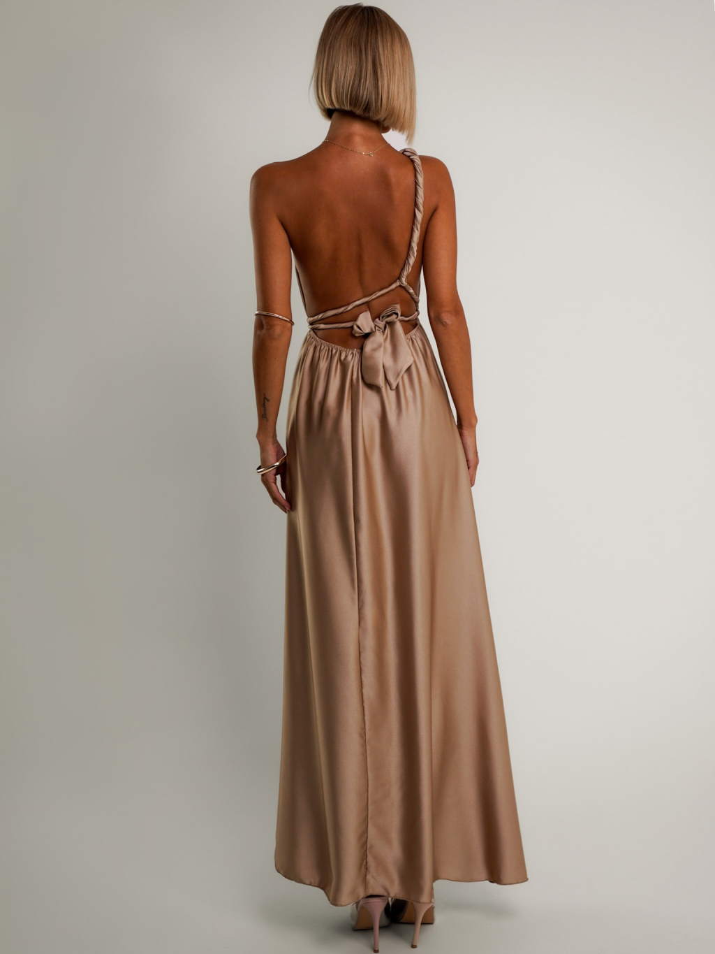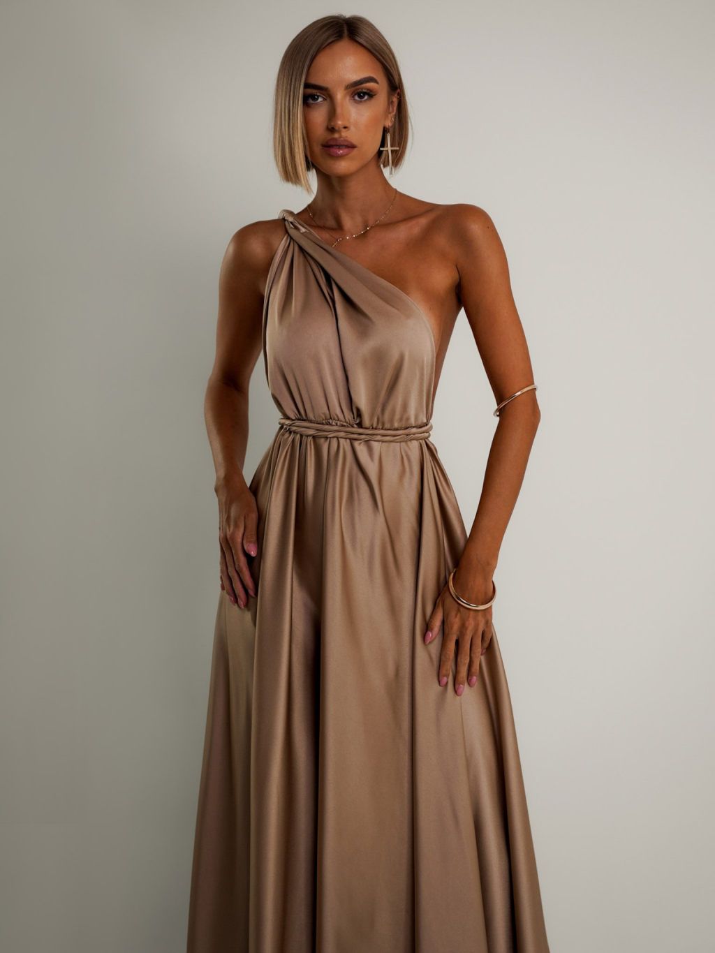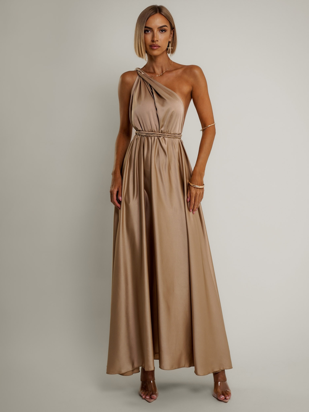 Zlaté lesklé šaty VALERDY s variabilným viazaním / bez rázporku