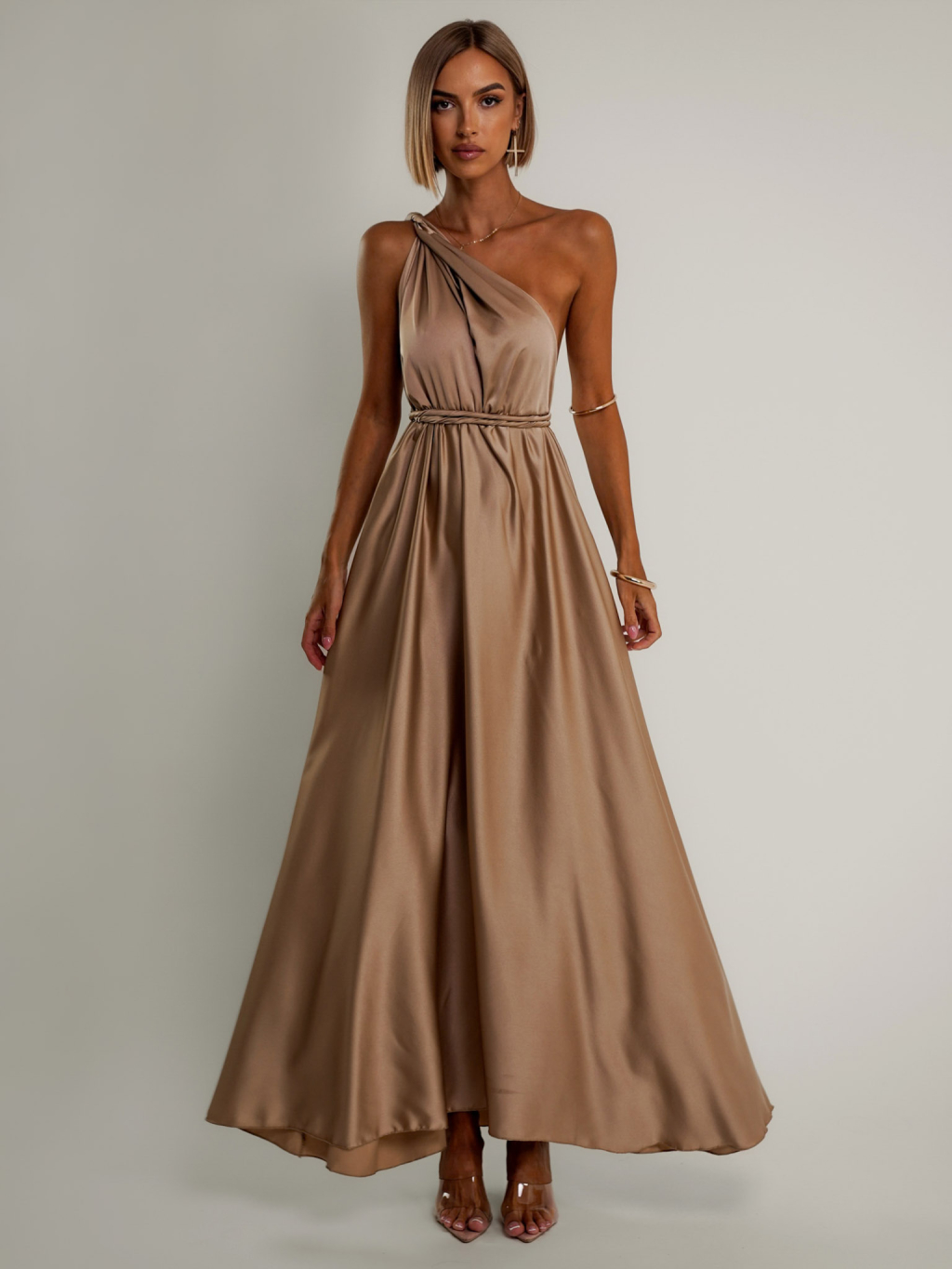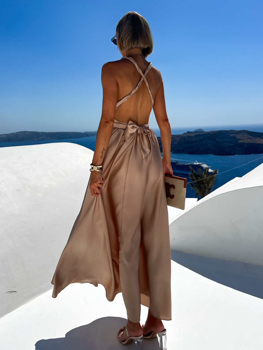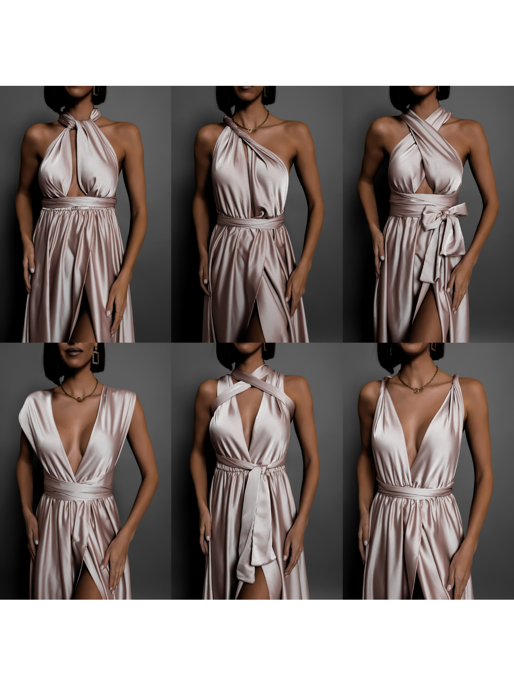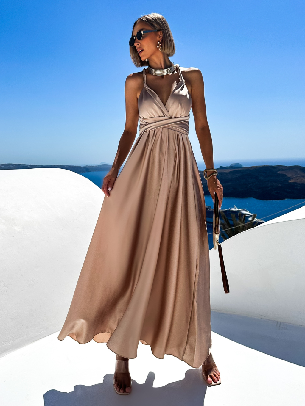Zlaté lesklé šaty VALERDY s variabilným viazaním / bez rázporku
