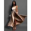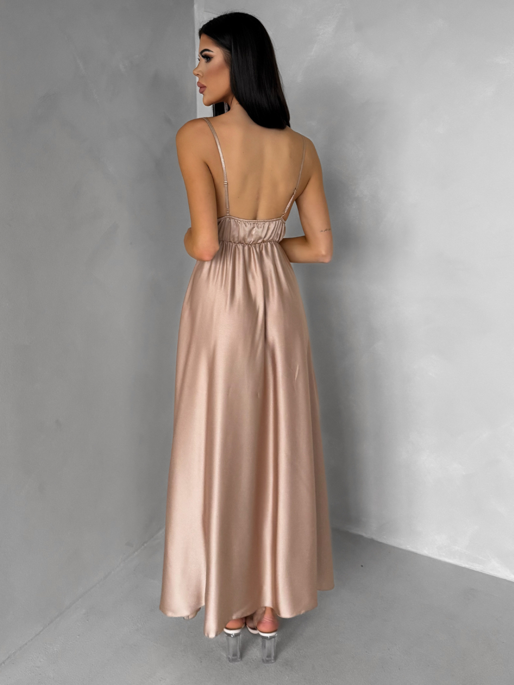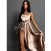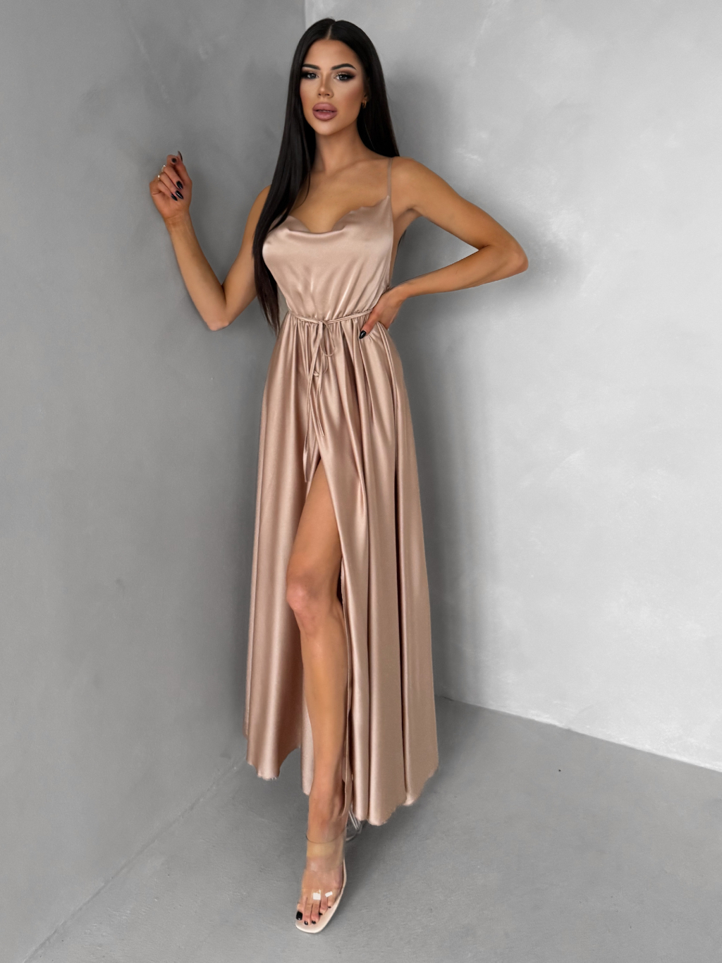 Zlaté saténové elegantné šaty YASMINE s rázporkom