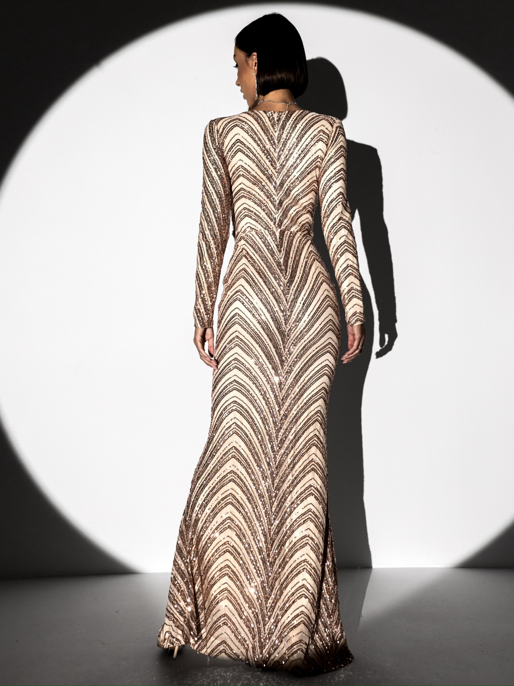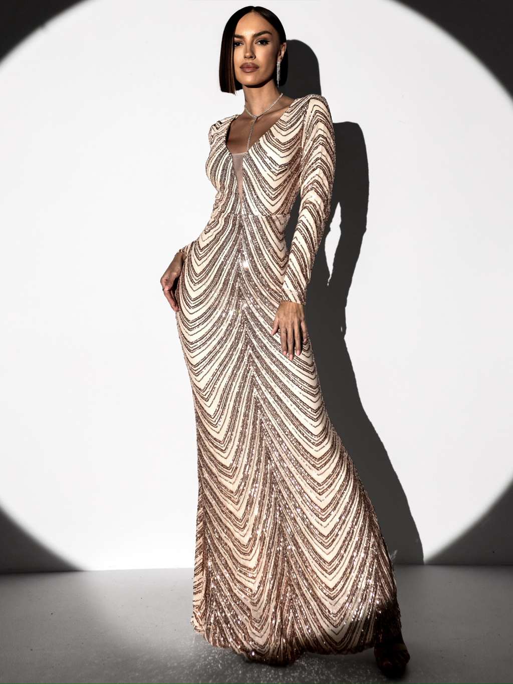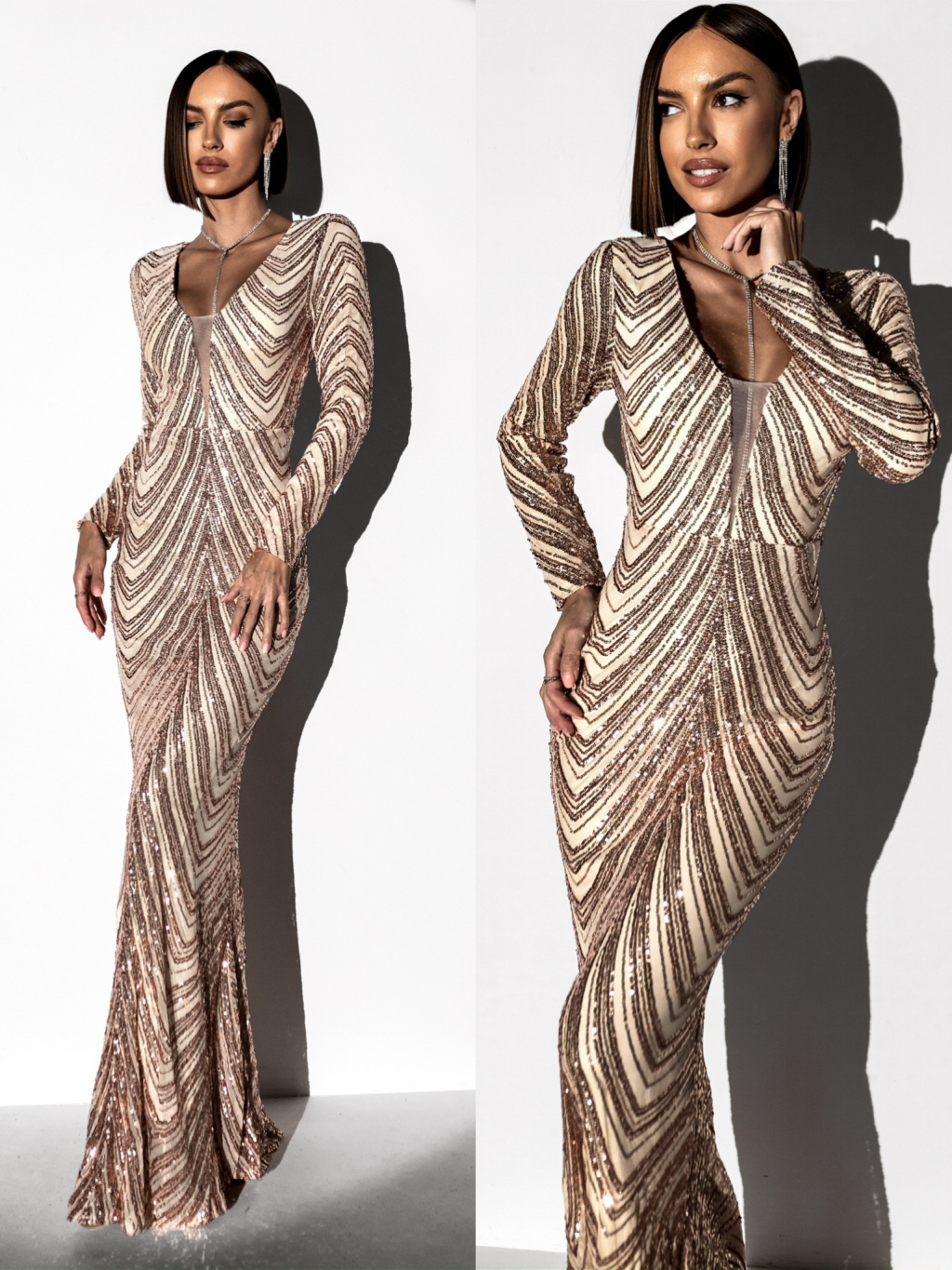 Zlaté spoločenské šaty NARKISSOS s flitrami