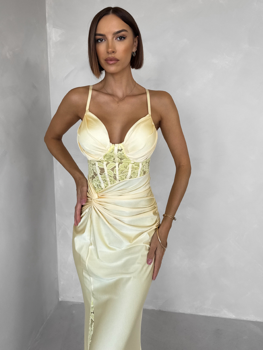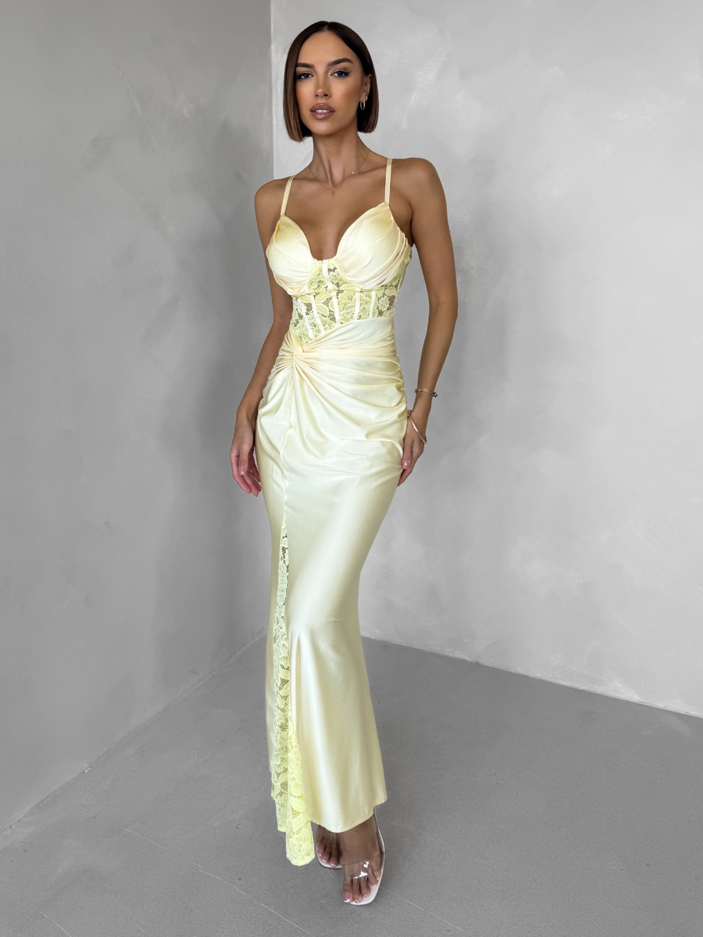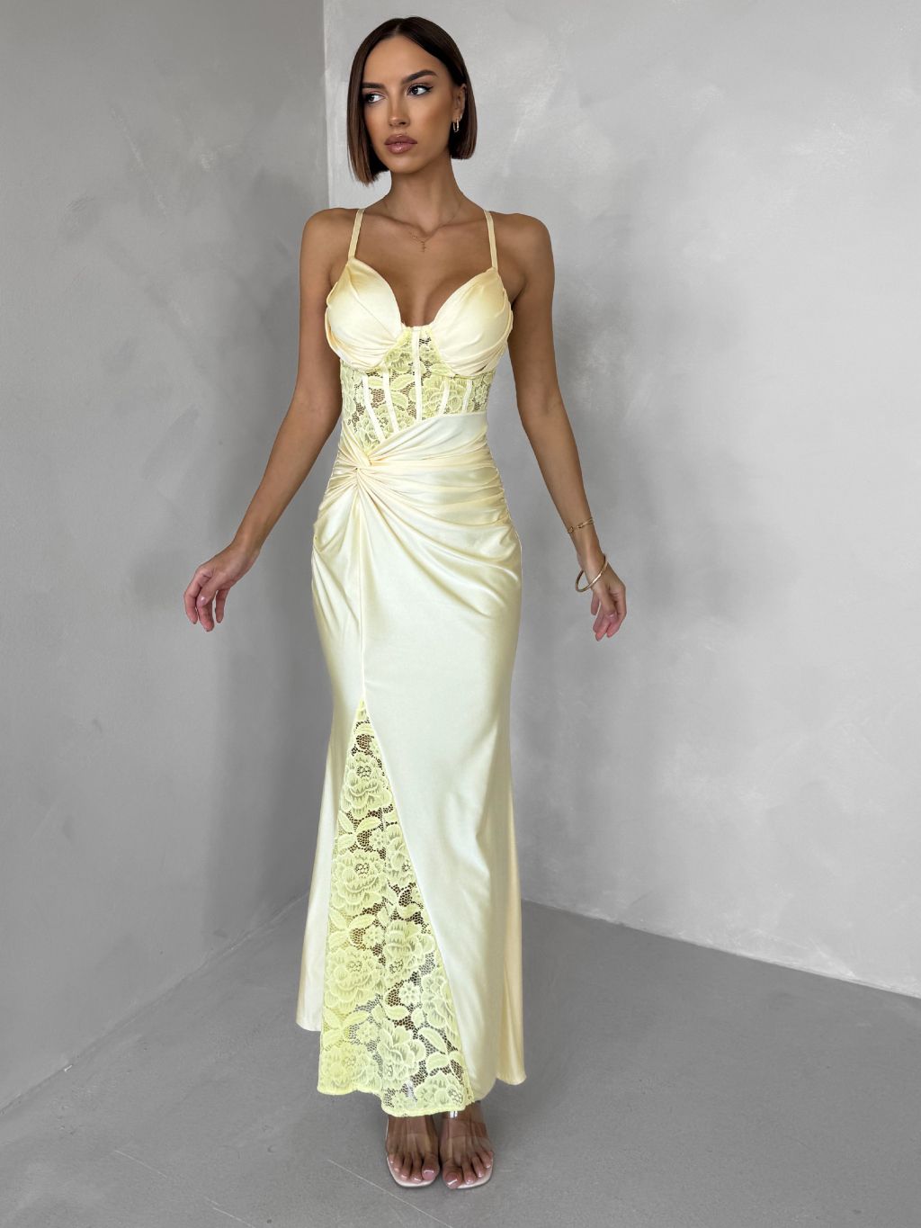 Žlté spoločenské dlhé šaty ARLISE s čipkou