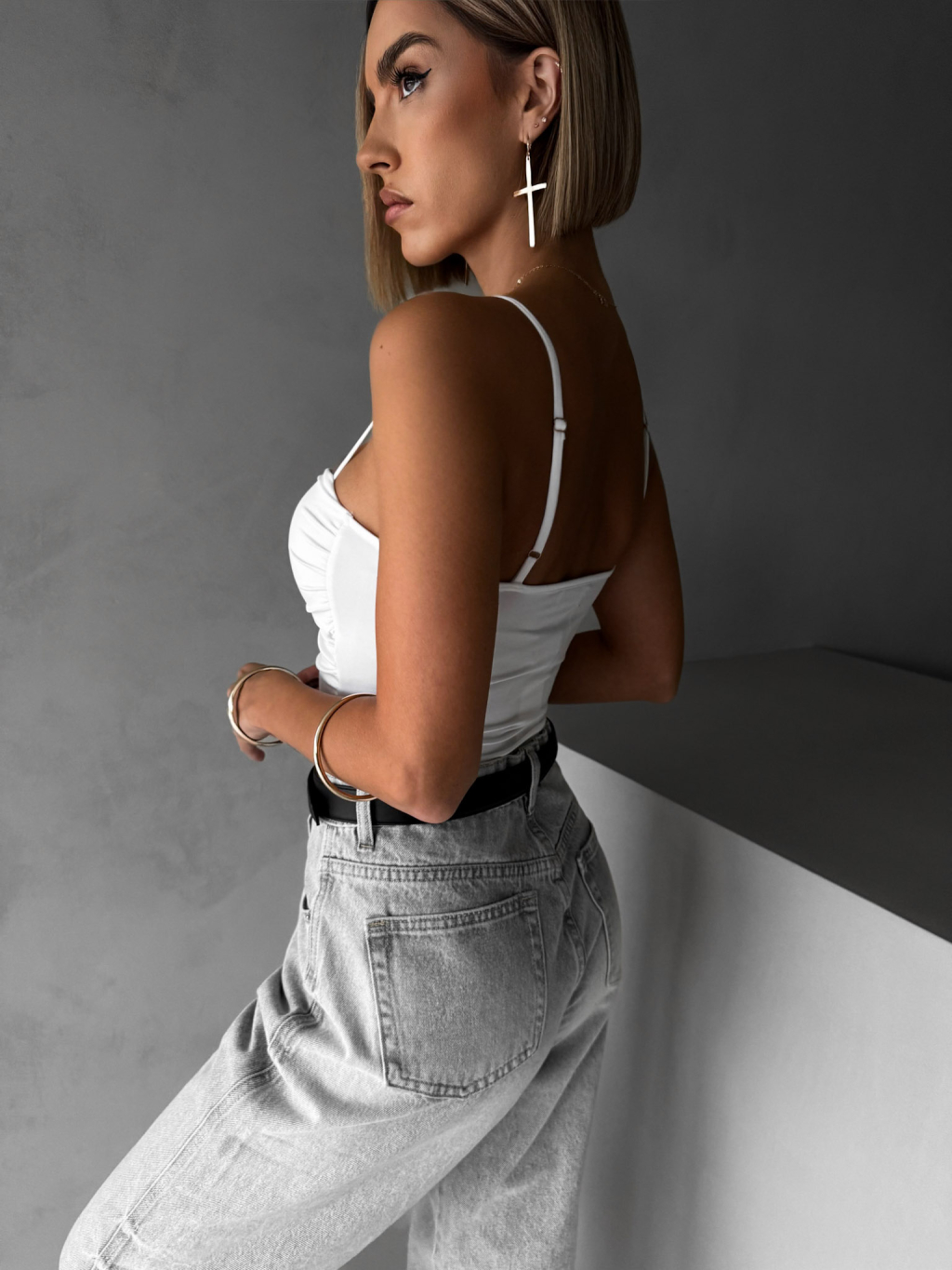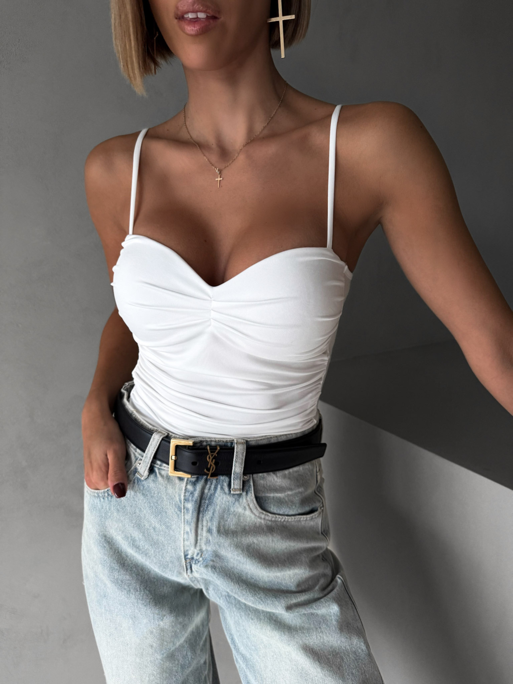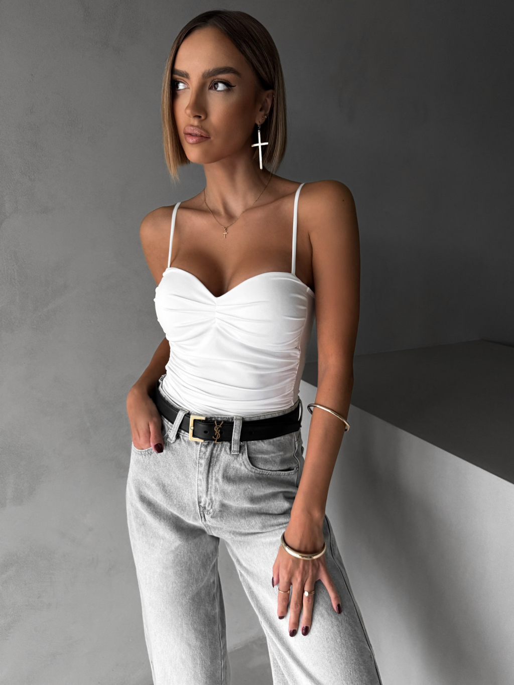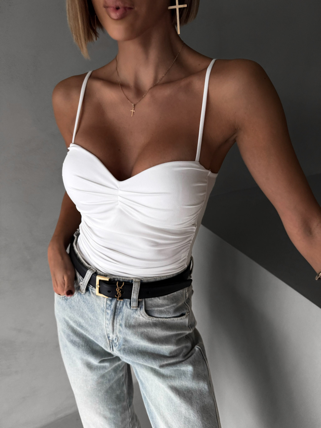 Biele elegantné body korzet AMIRLAN