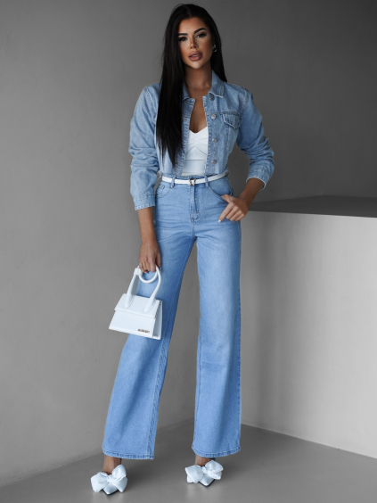 Modré široké wide leg džínsy HELAR s vysokým pásom