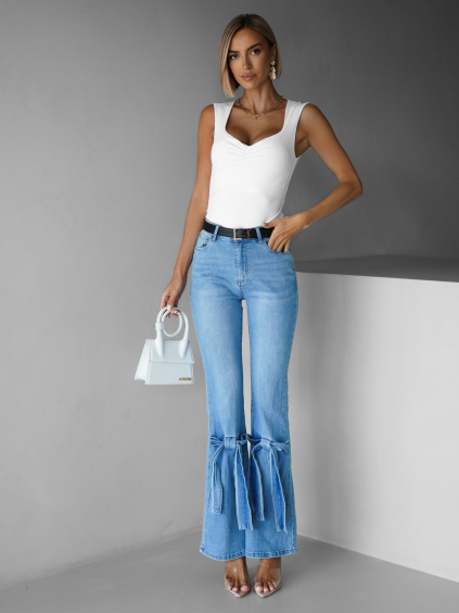 Modré zvonové štýlové džínsy CORRIDO s mašľami