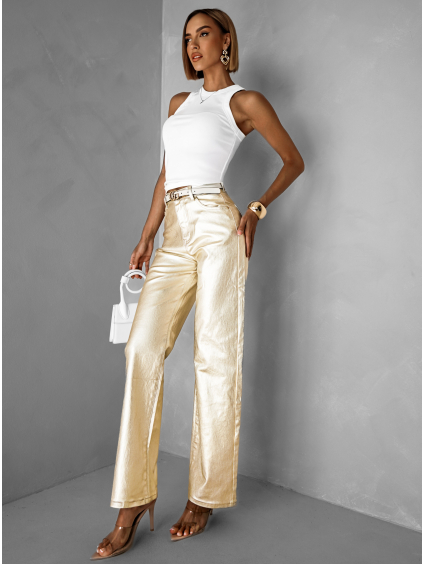 Modré wide leg džínsy CHARYTIN s cvokmi