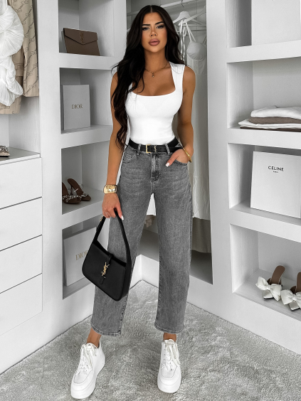 Biele štýlové mom džínsy RAVEN s vysokým pásom