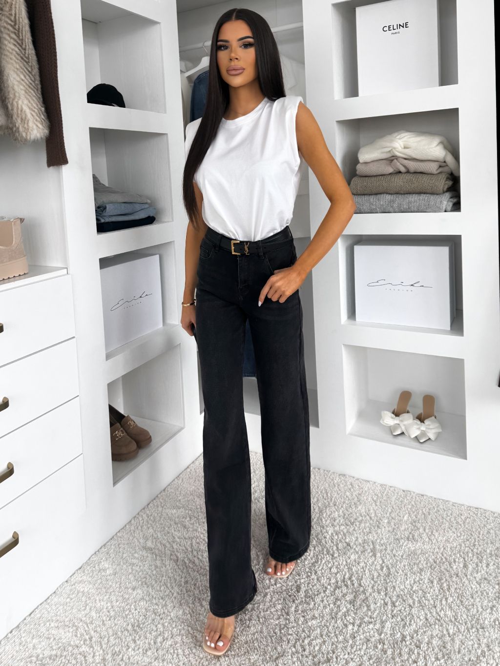 Čierne straight široké džínsy KAVORY