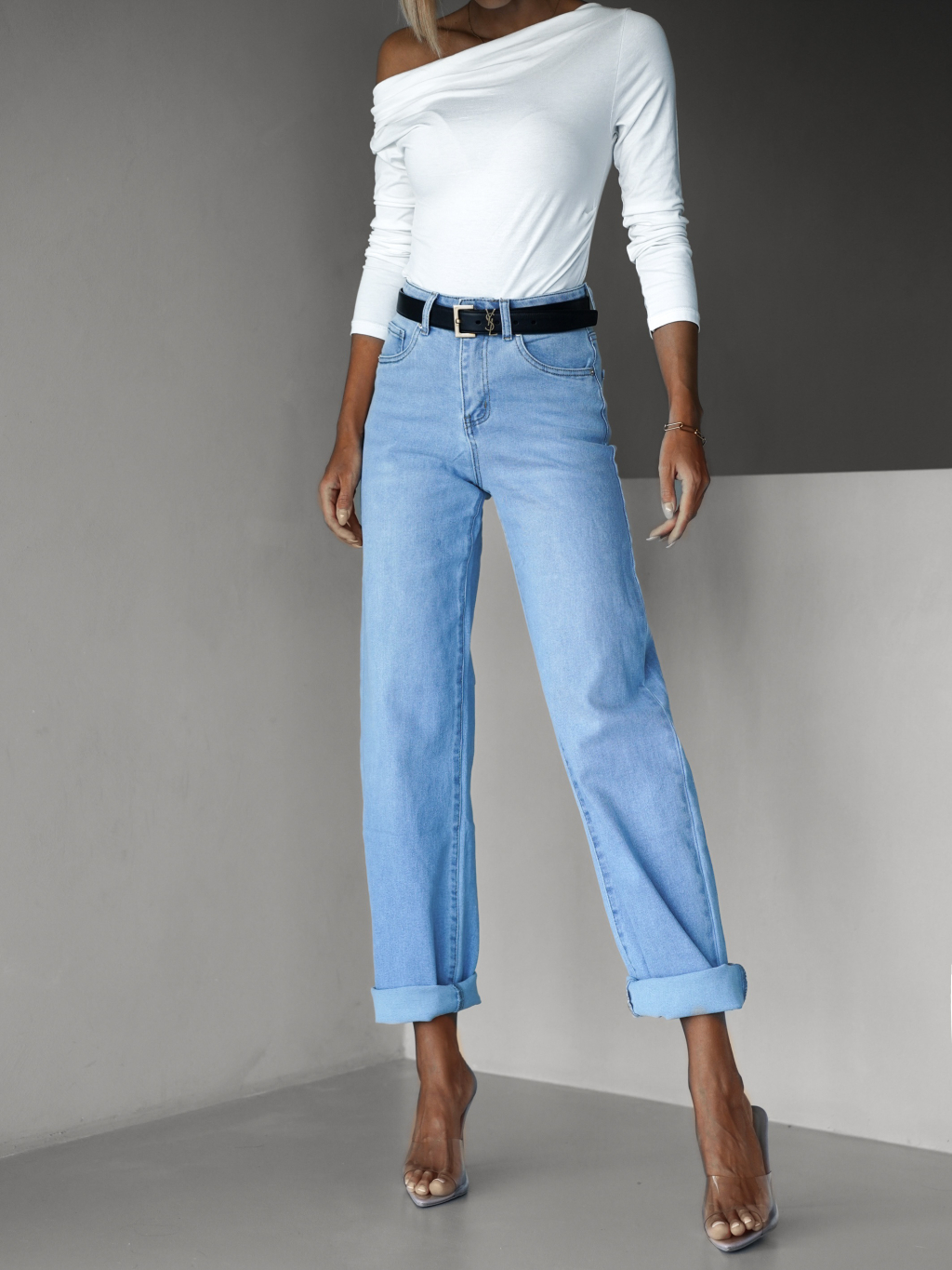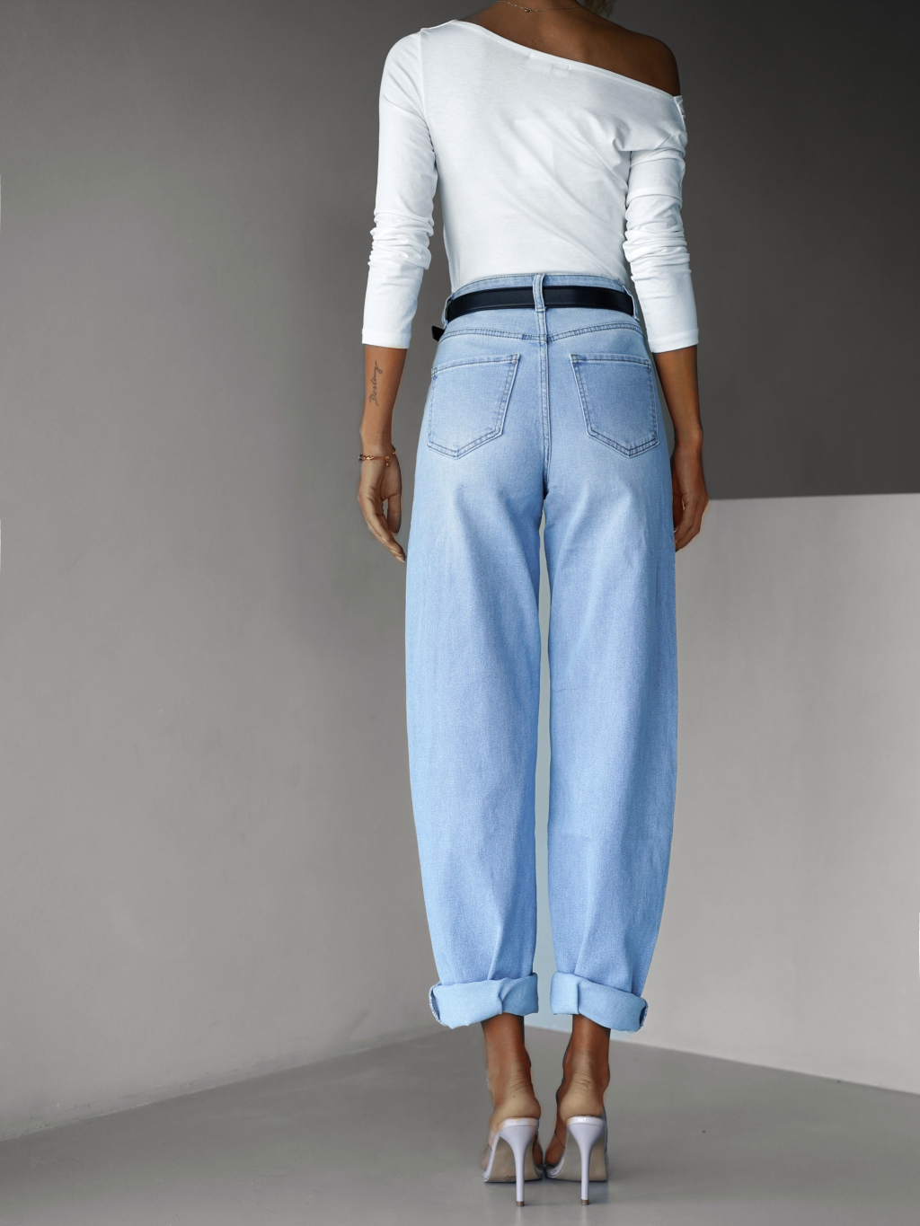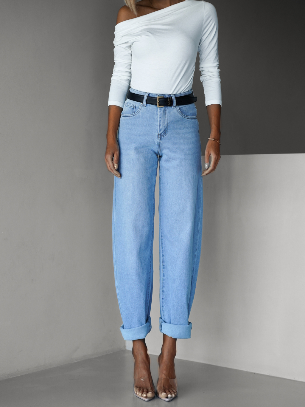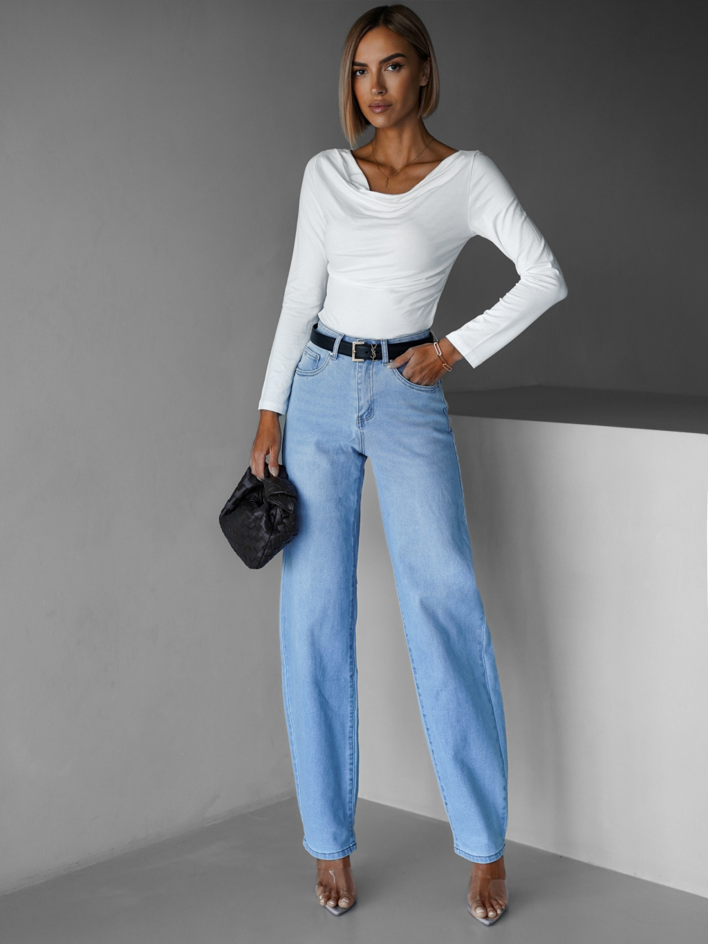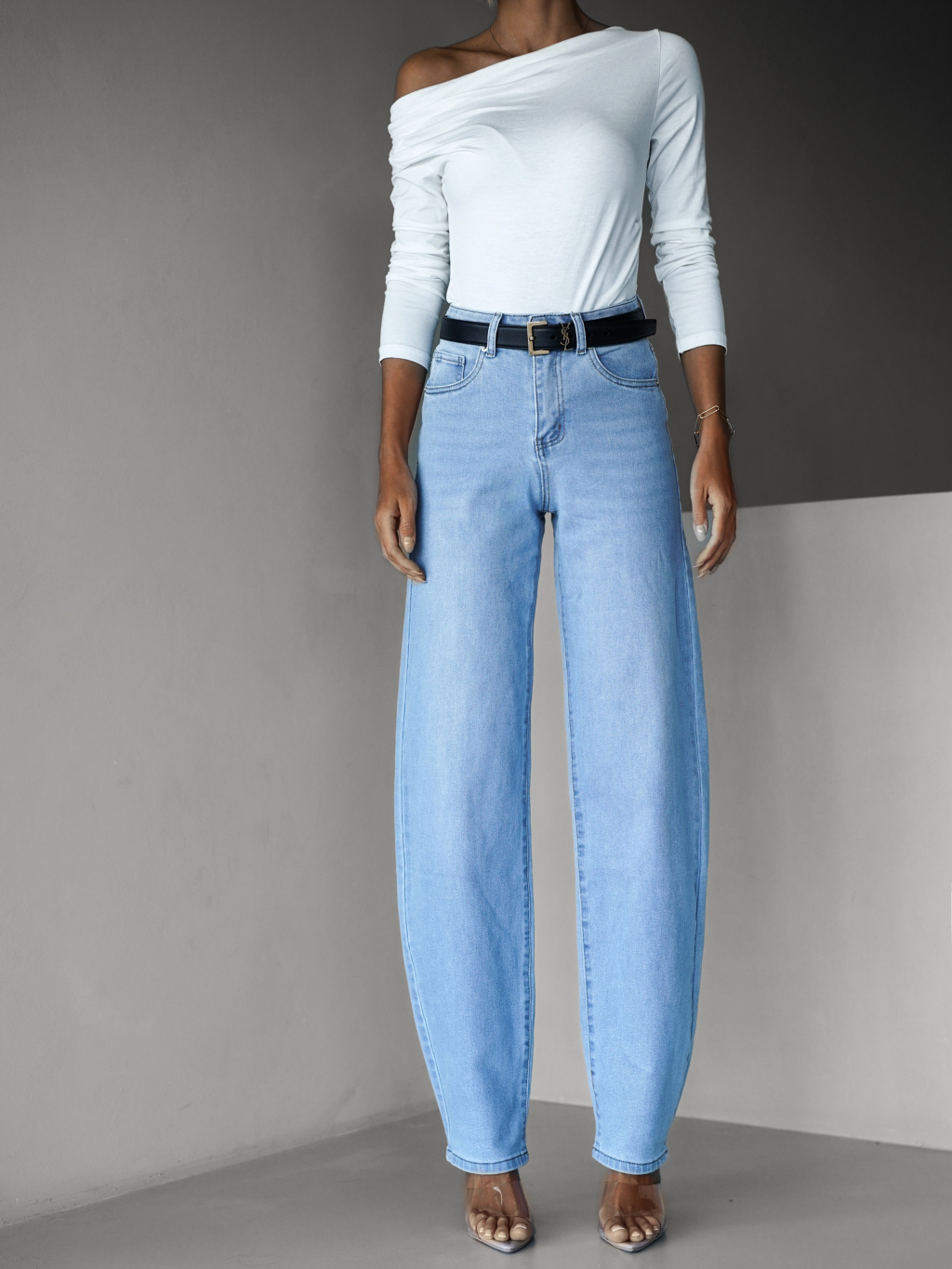 Modré široké mom džínsy AGNYTA s vyšším pásom