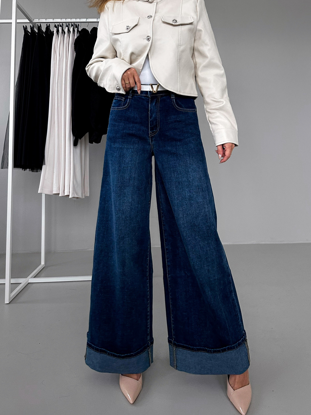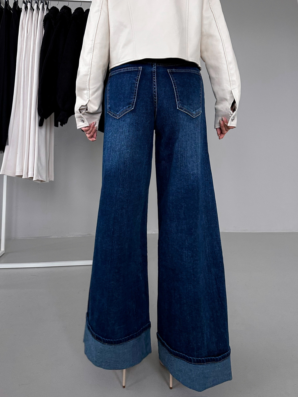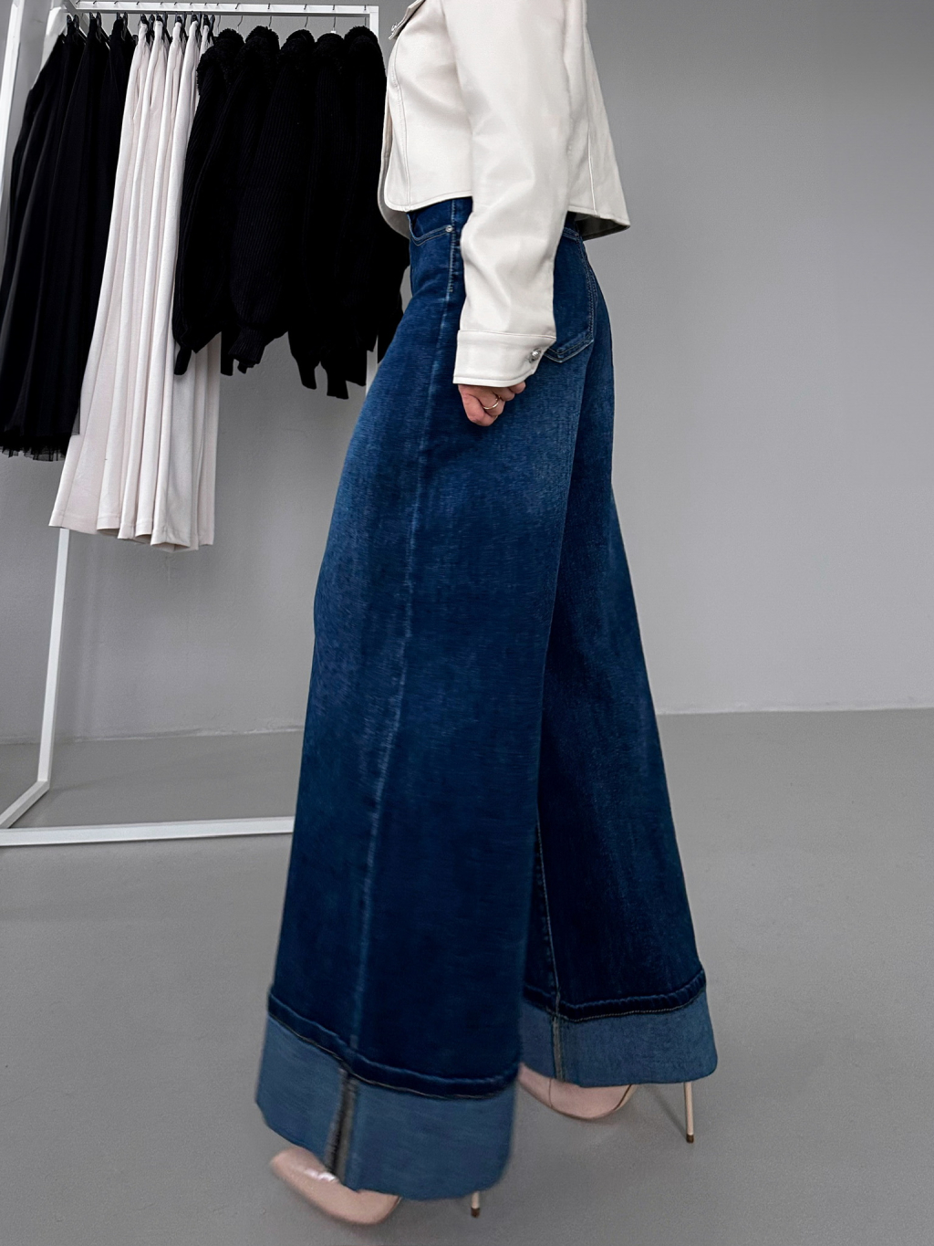 Modré široké wide leg džínsy EVALOTTA s prehybom