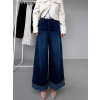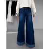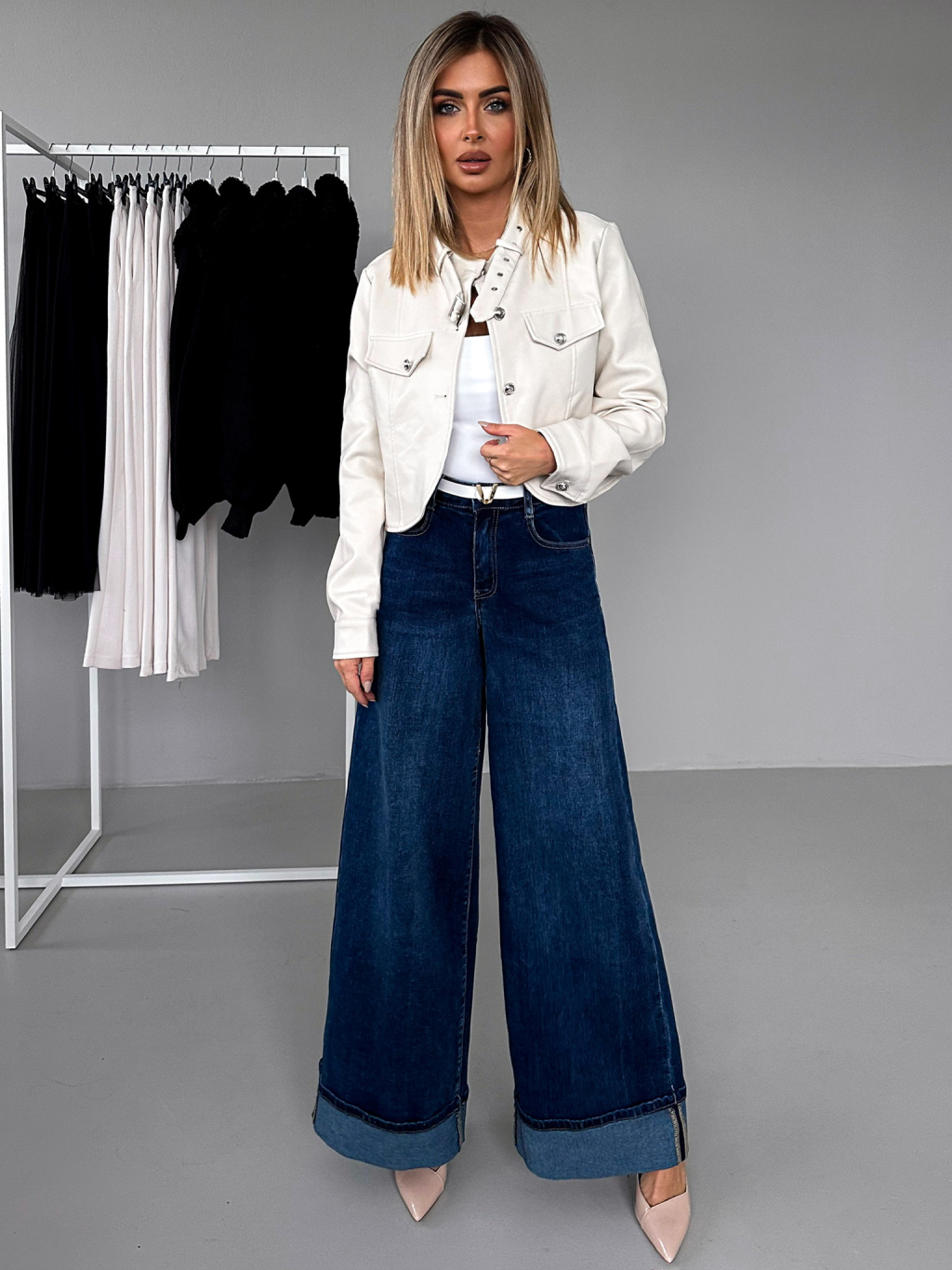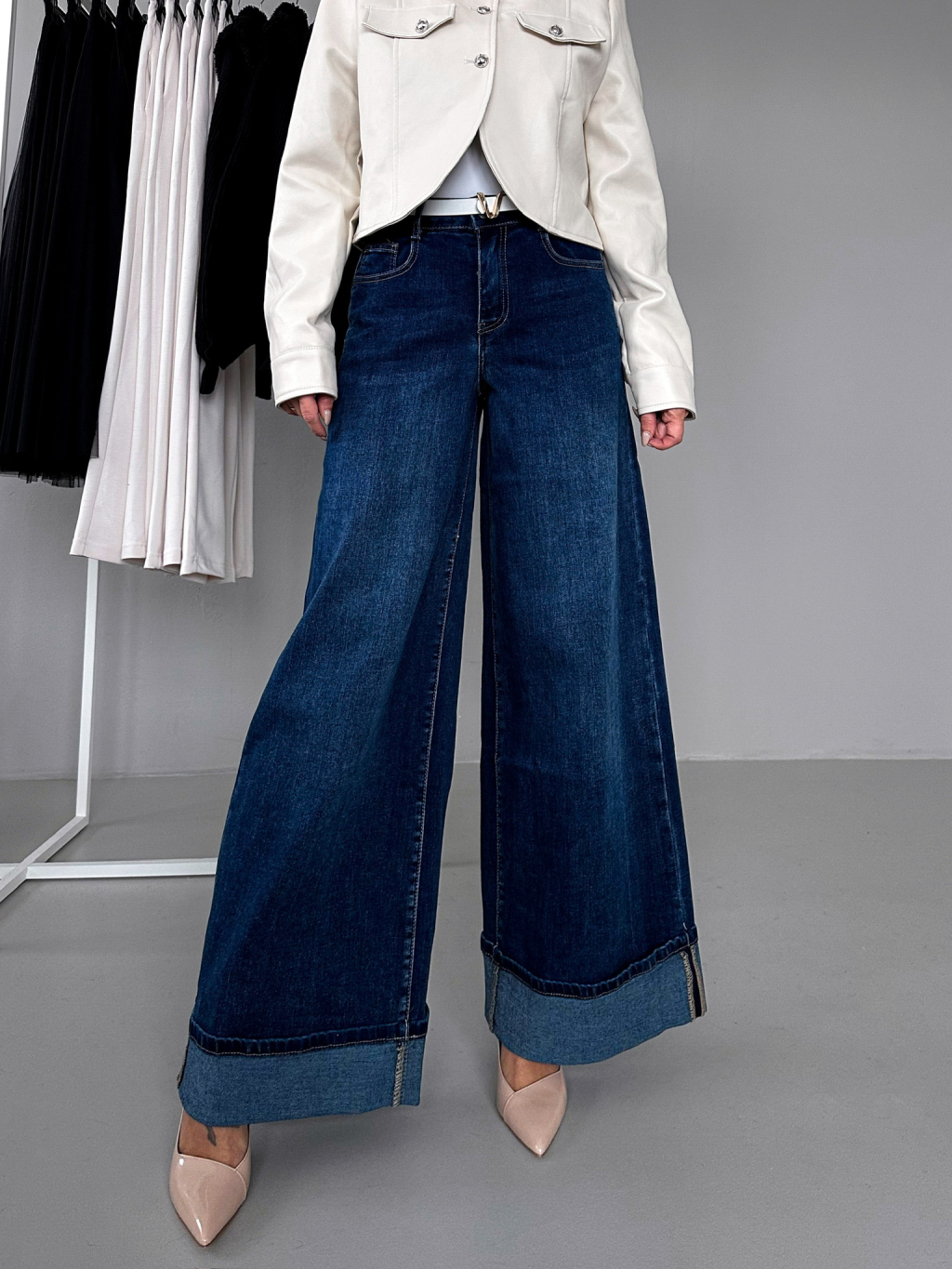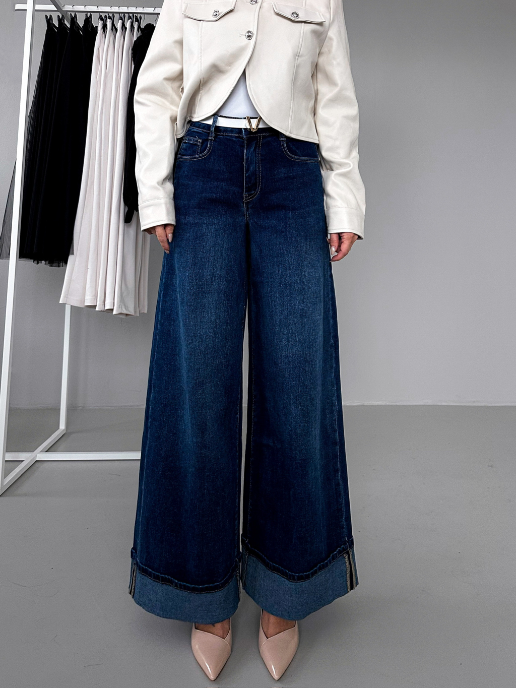 Modré široké wide leg džínsy EVALOTTA s prehybom