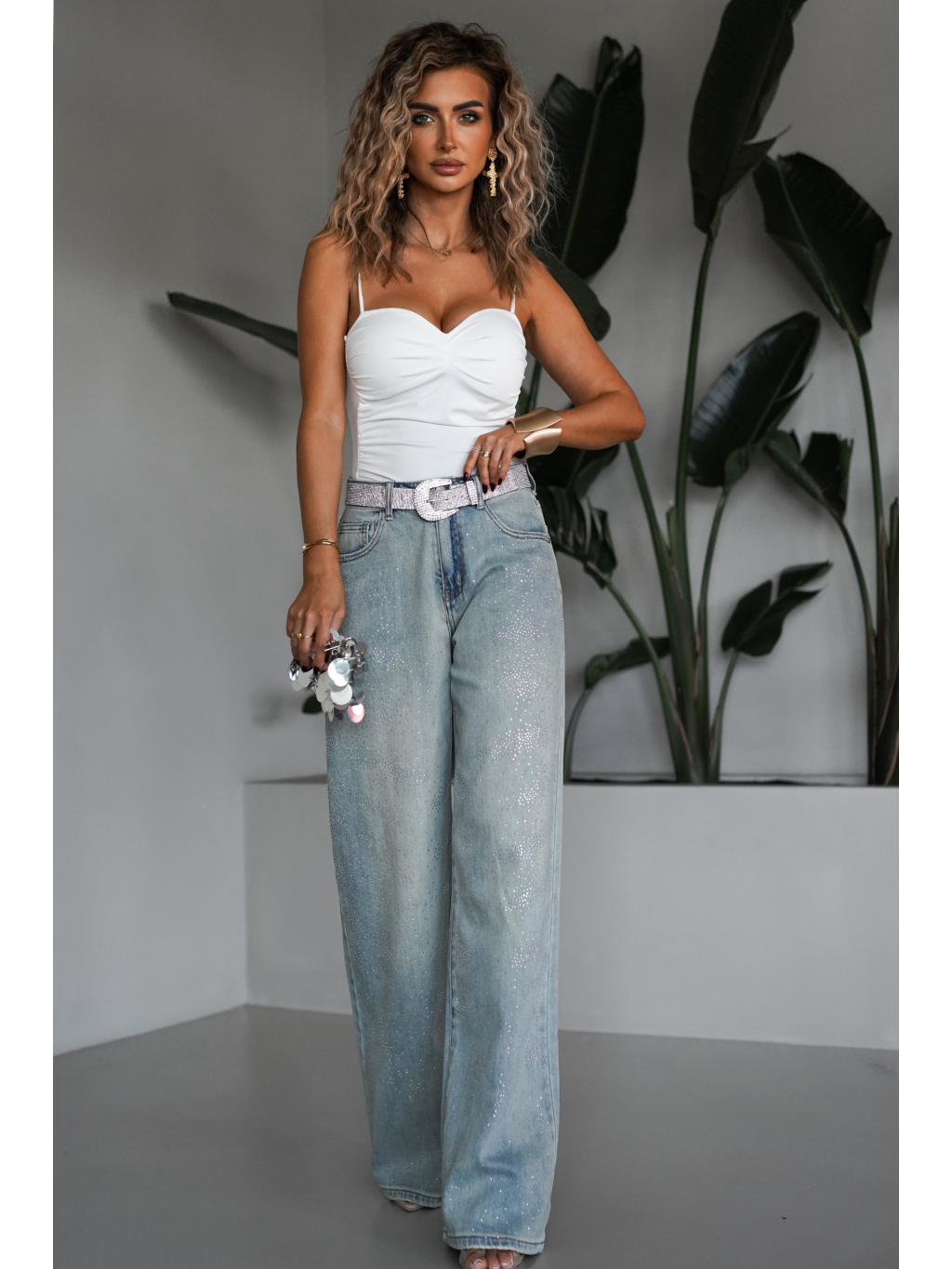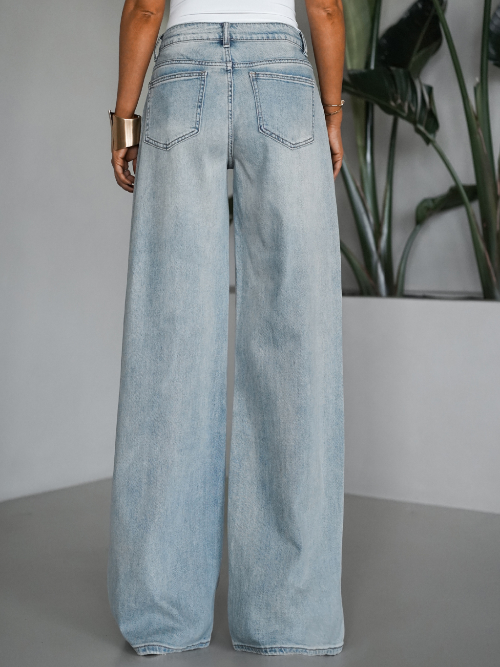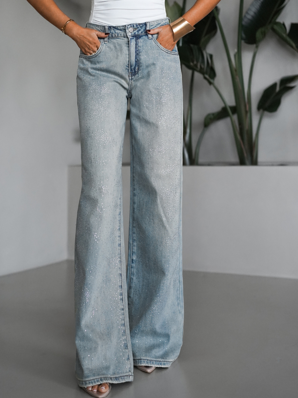 Modré široké wide leg džínsy PLEMEN s kamienkami