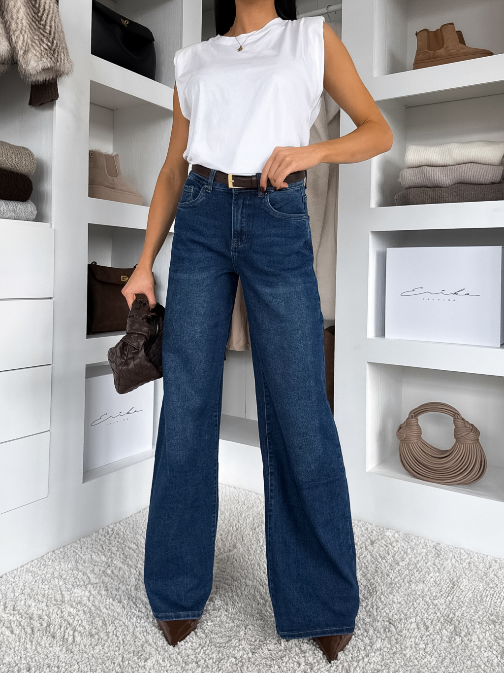 Modré tmavé široké wide leg džínsy ZALVIAN