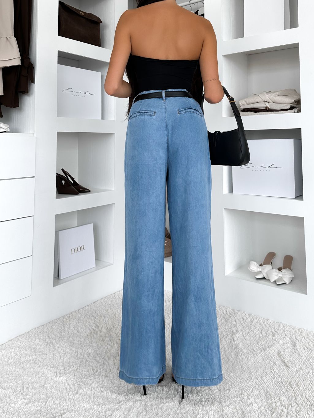 Modré wide leg široké džínsy AILPIN