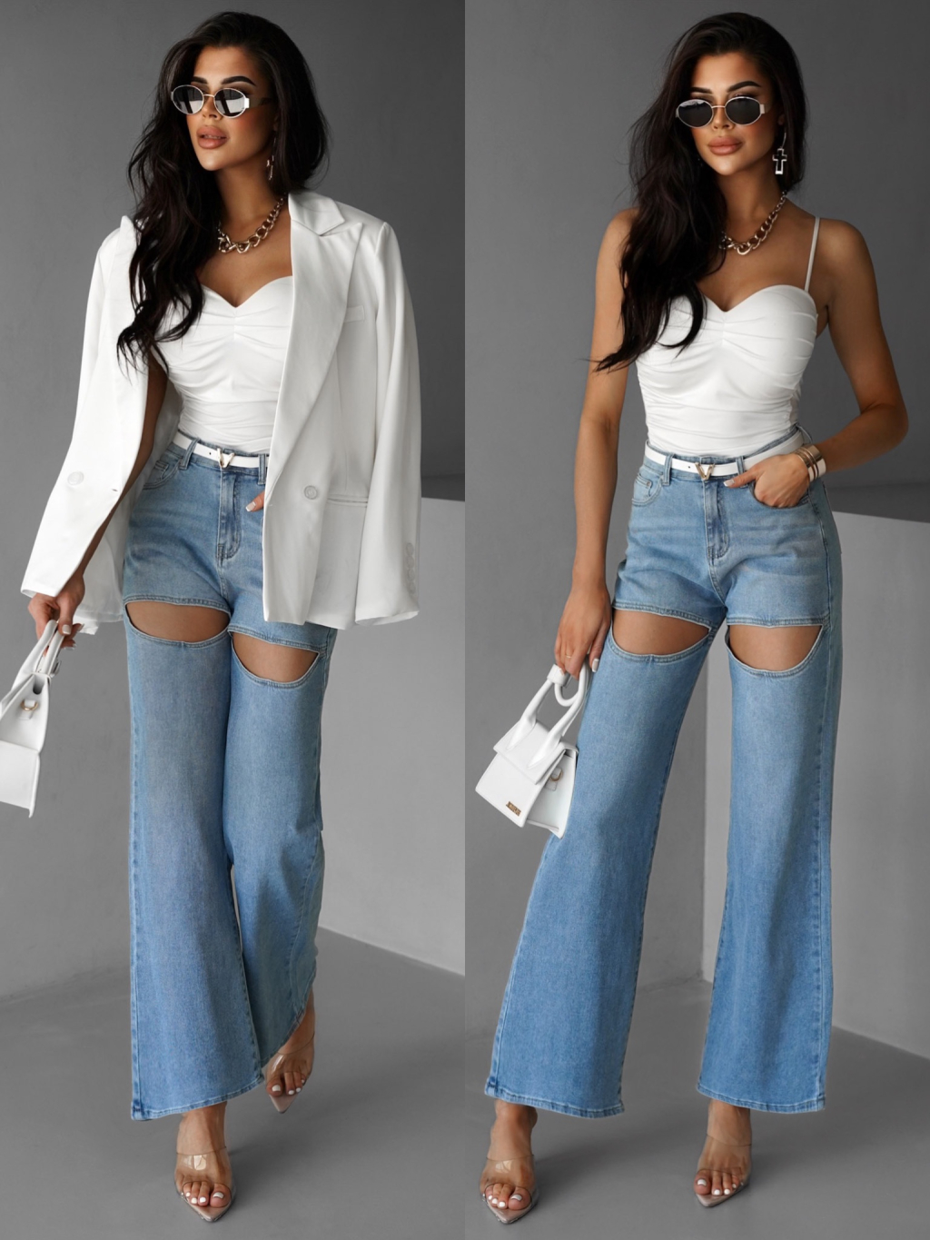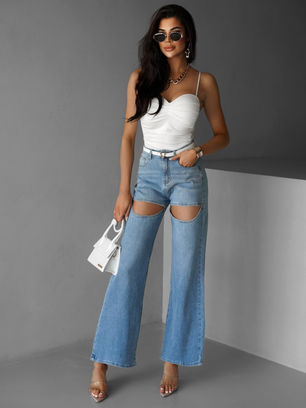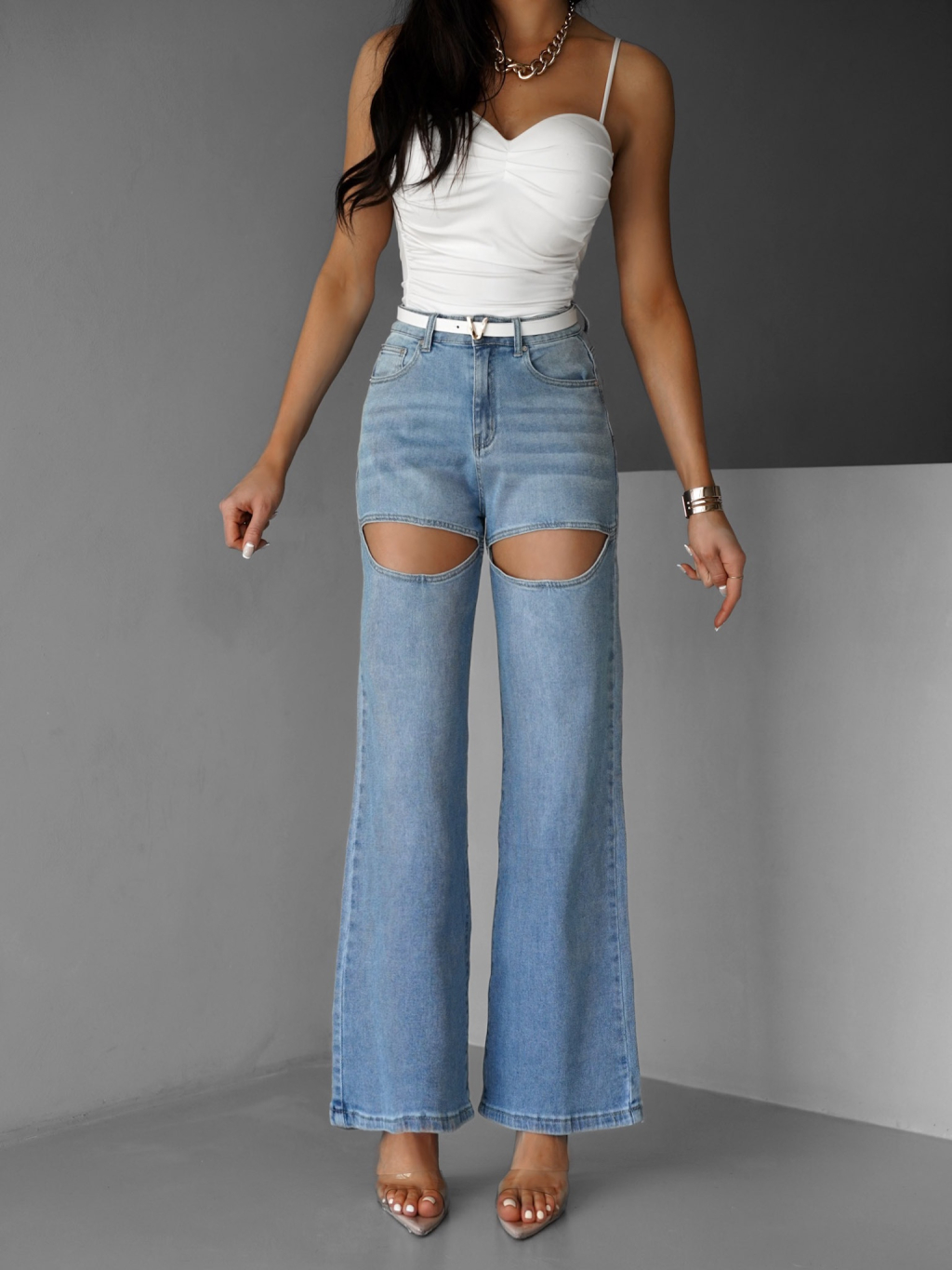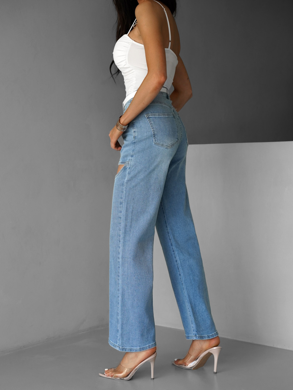 Modré wide leg široké džínsy CHIMALLI s dierami