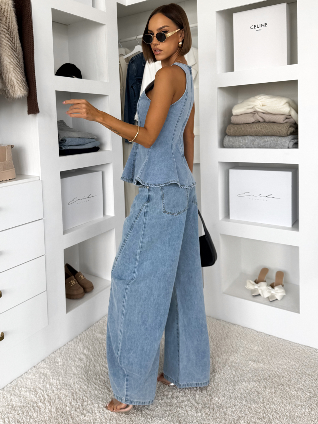 Modrý elegantný tvarujúci džínsový komplet XENON