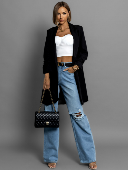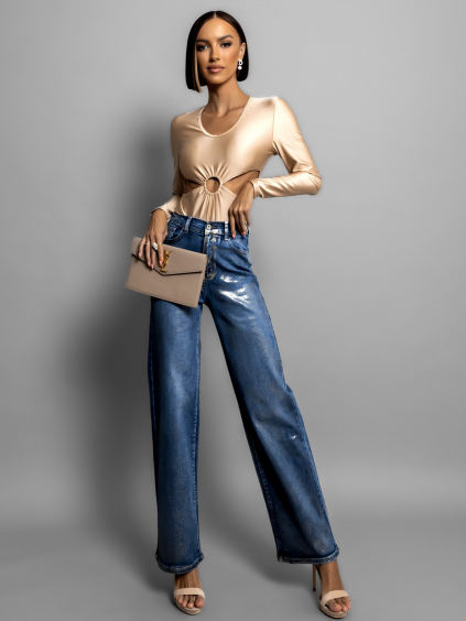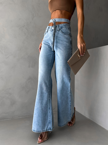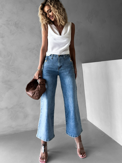 Modré wide leg džínsy BEYONCE so zlatými gombíkmi